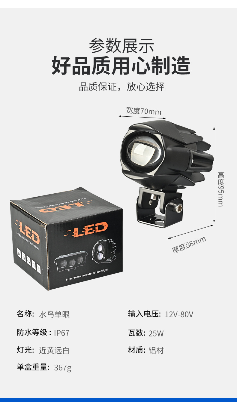 Трансграничная мотоциклетная фара Waterbird, прожектор для электромобиля с одним глазом и суперярким светодиодным прожектором для дальнего и ближнего света