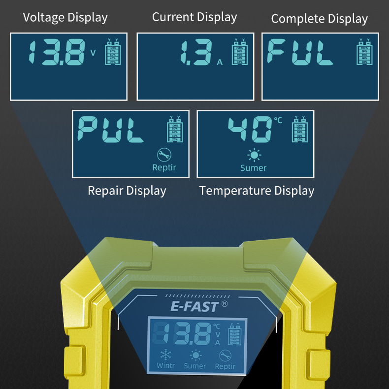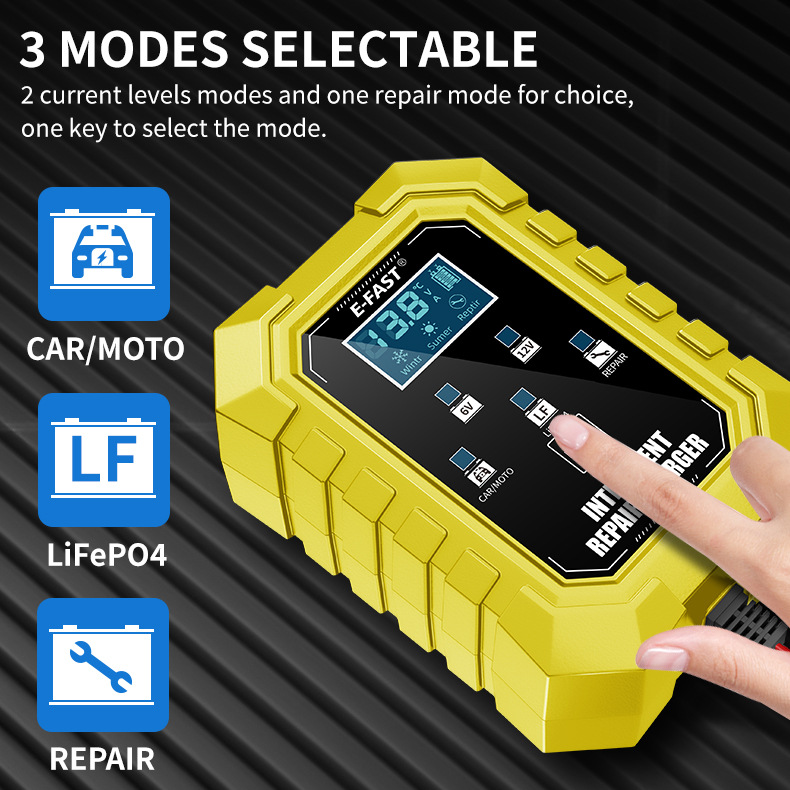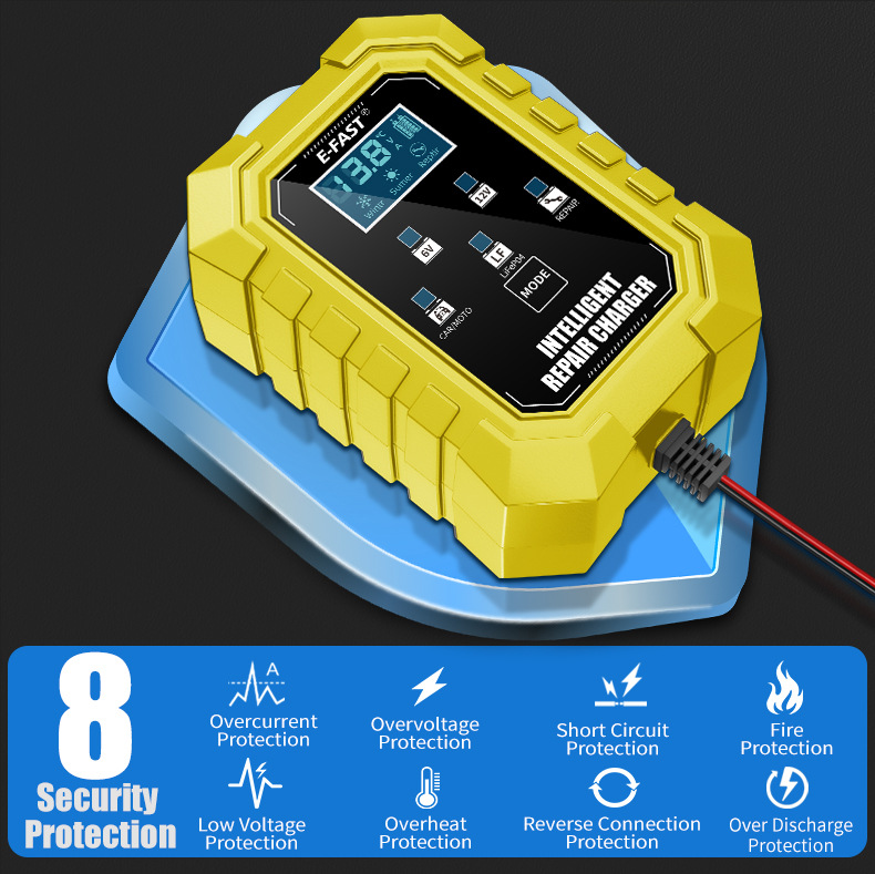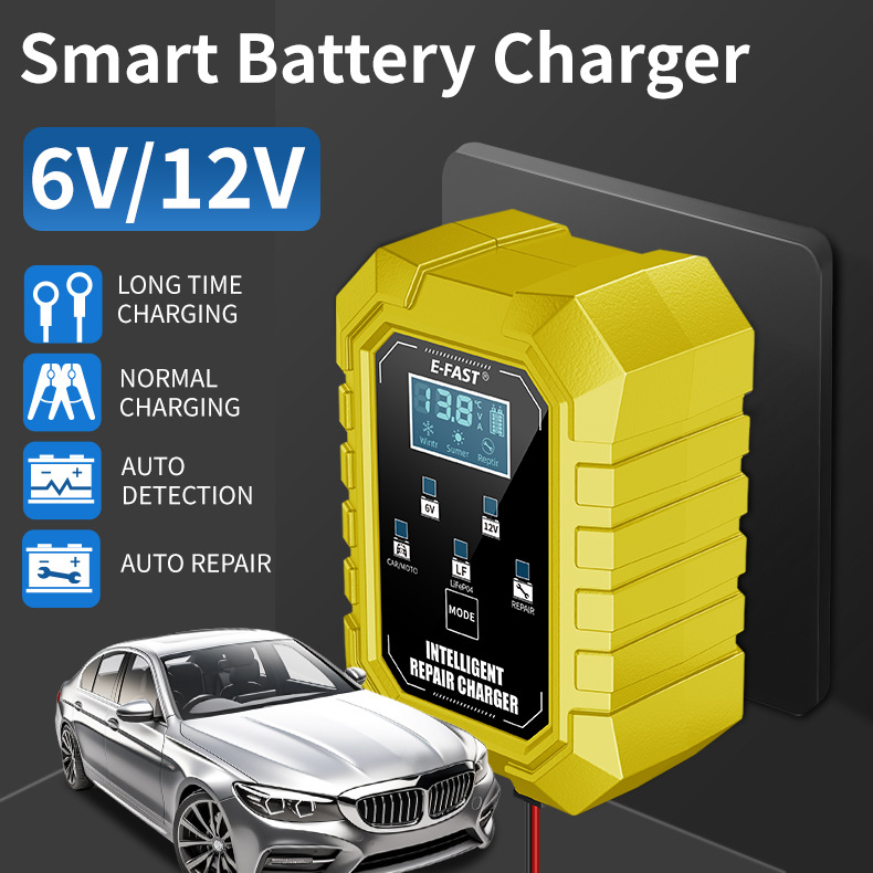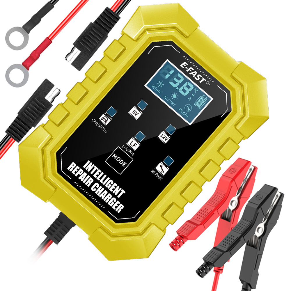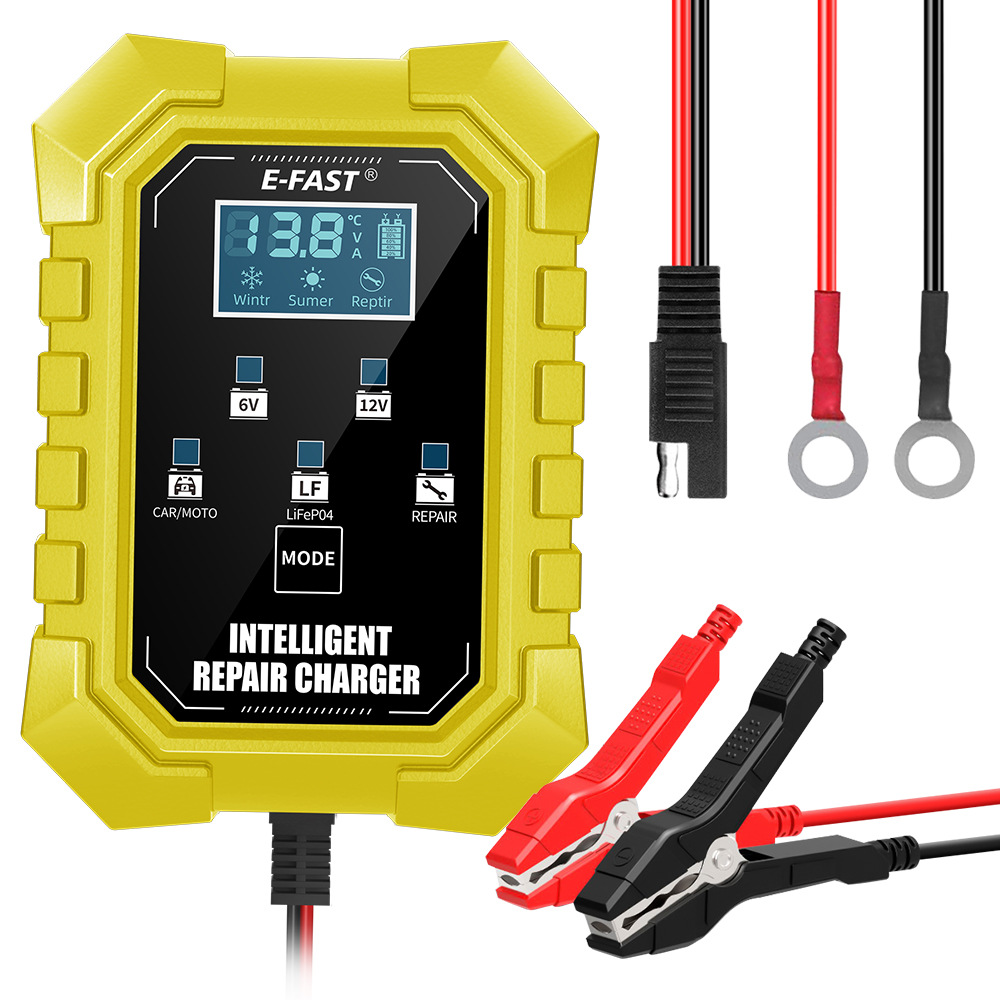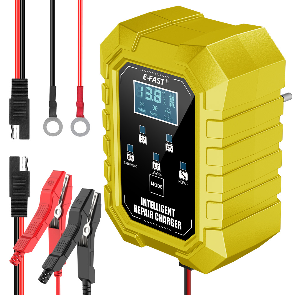 E-FAST интеллектуальное зарядное устройство 6V12V импульсный ремонт зарядное устройство 1.5A для свинцово-железо-литиевой батареи