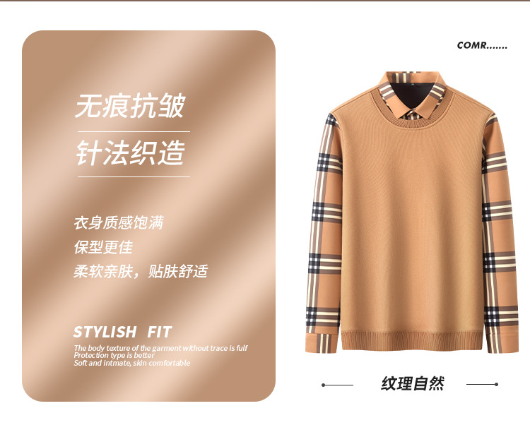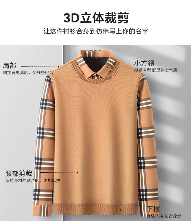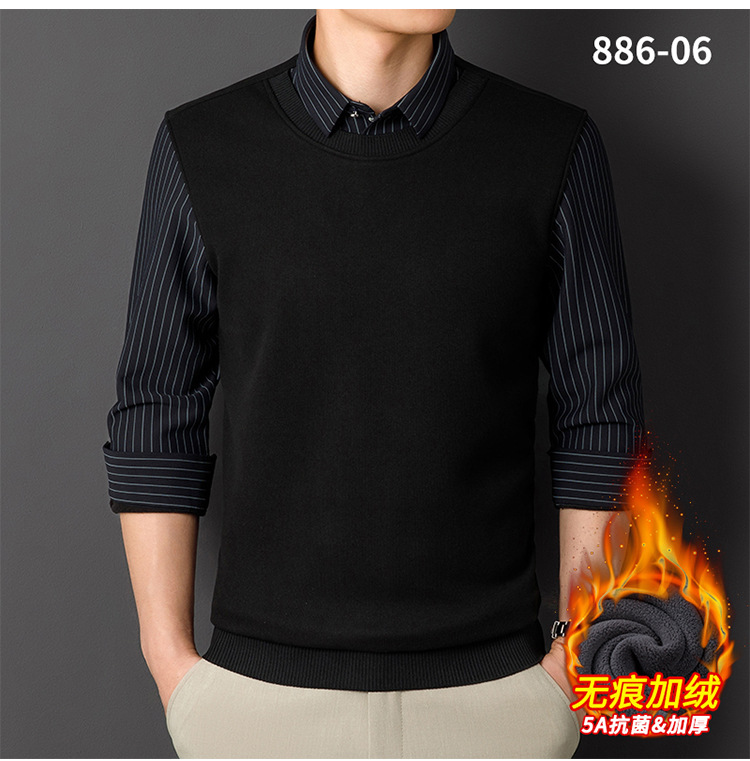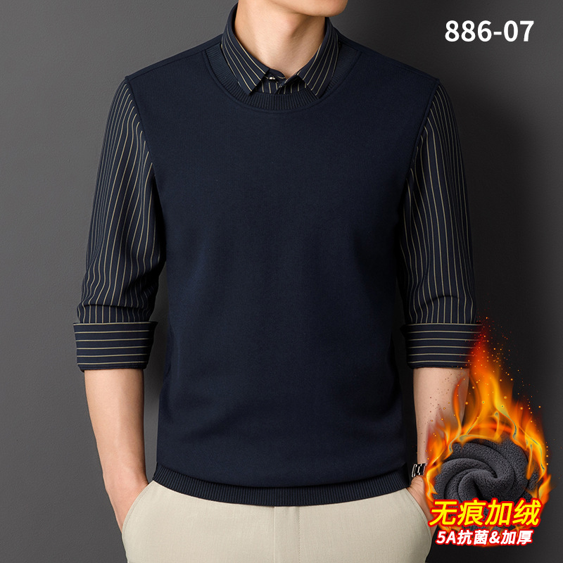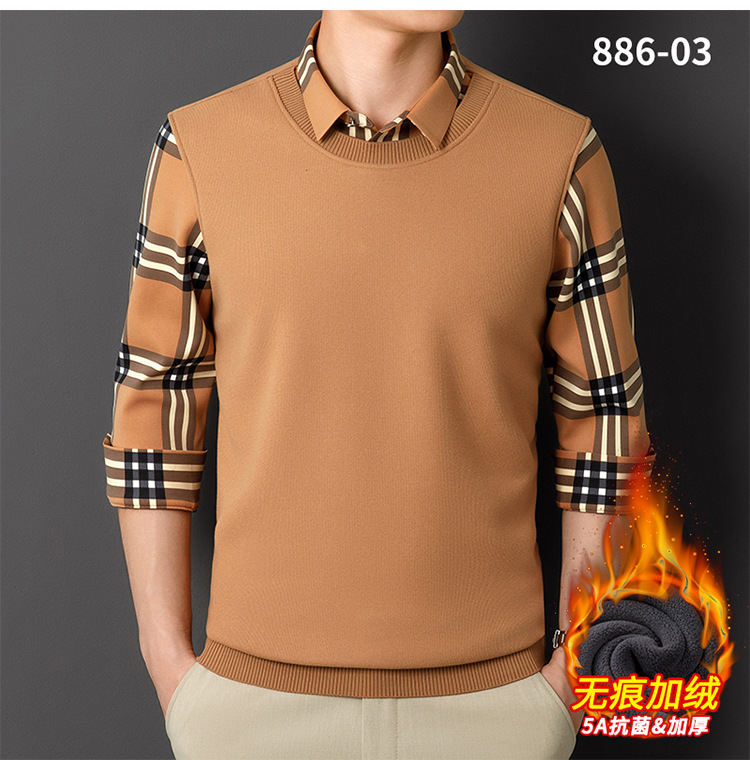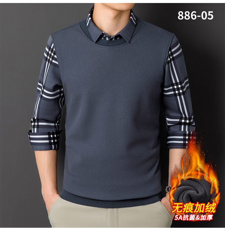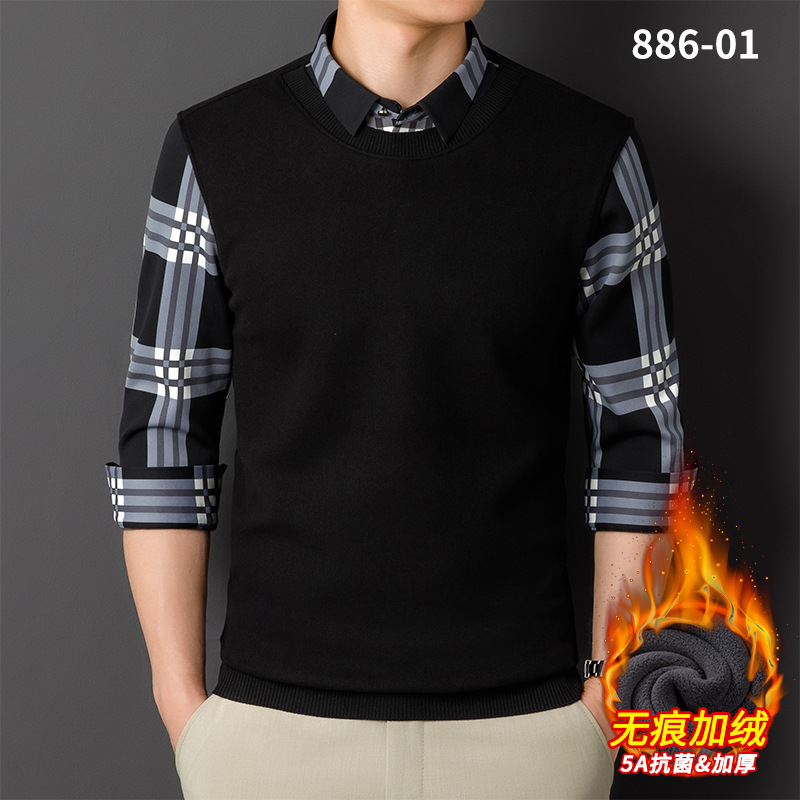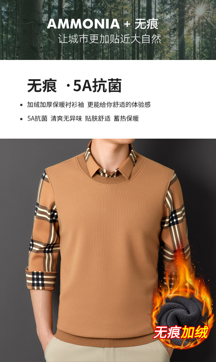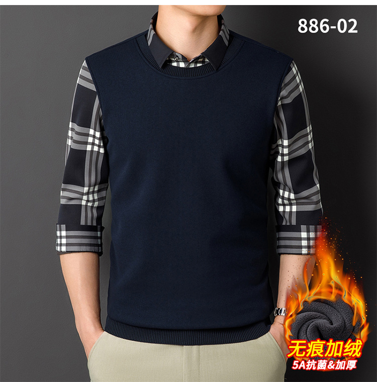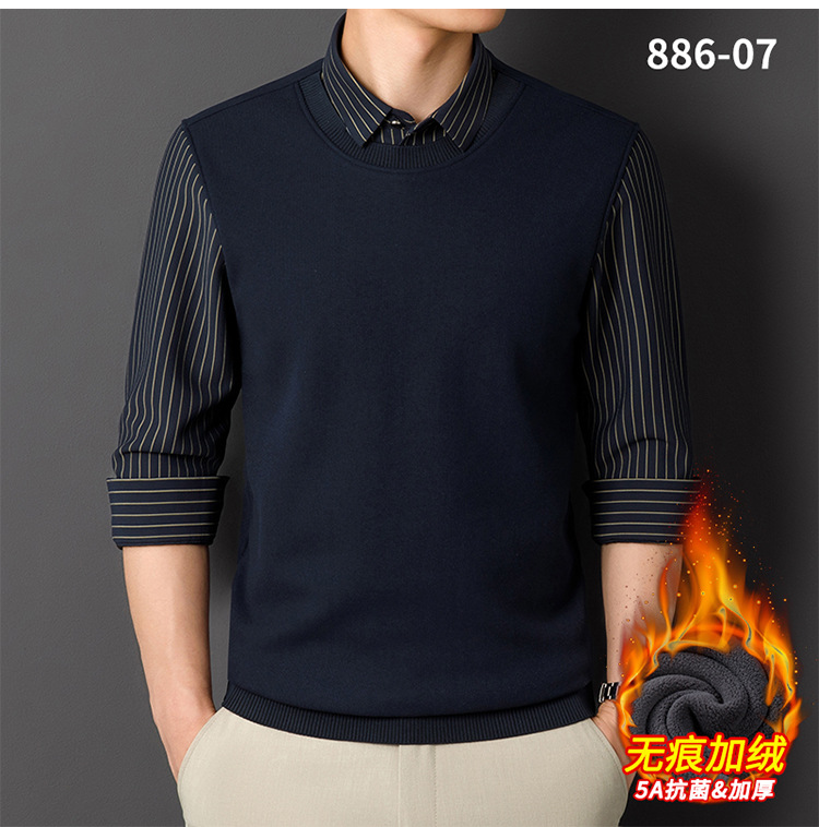 Мужская теплая рубашка-свитер 2025 года, имитация двухслойного пуловера, на флисовой подкладке, утолщенная, деловой повседневный стиль, бесшовная.