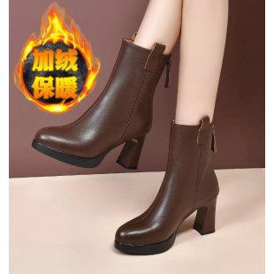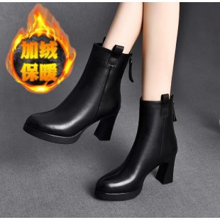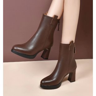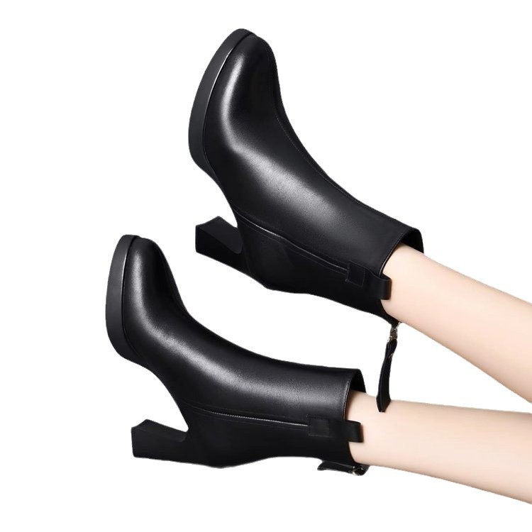 Трансграничные женские туфли 2024 осень-зима новый британский ретро задняя застежка-молния толстые сапоги на каблуках Мартин сапоги тощие сапоги женские сапоги