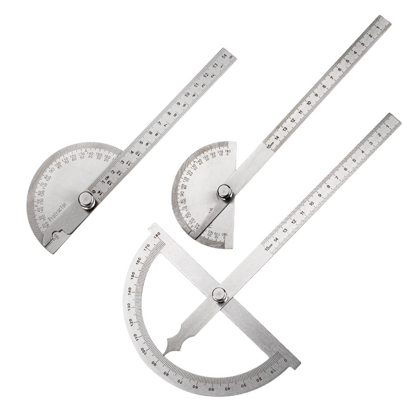 Твердый транспортир с двойным рычагом 300 мм.; Твердый транспортир с двойным рычагом 100 мм.; Прямой нож сплошной транспортир 140 мм.; Прямой нож сплошной транспортир 100 мм.; Сековый твердый транспортир 150 мм.; Сековый твердый транспортир 100 мм.; Большой полый транспортир 150 мм.