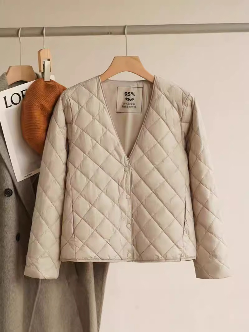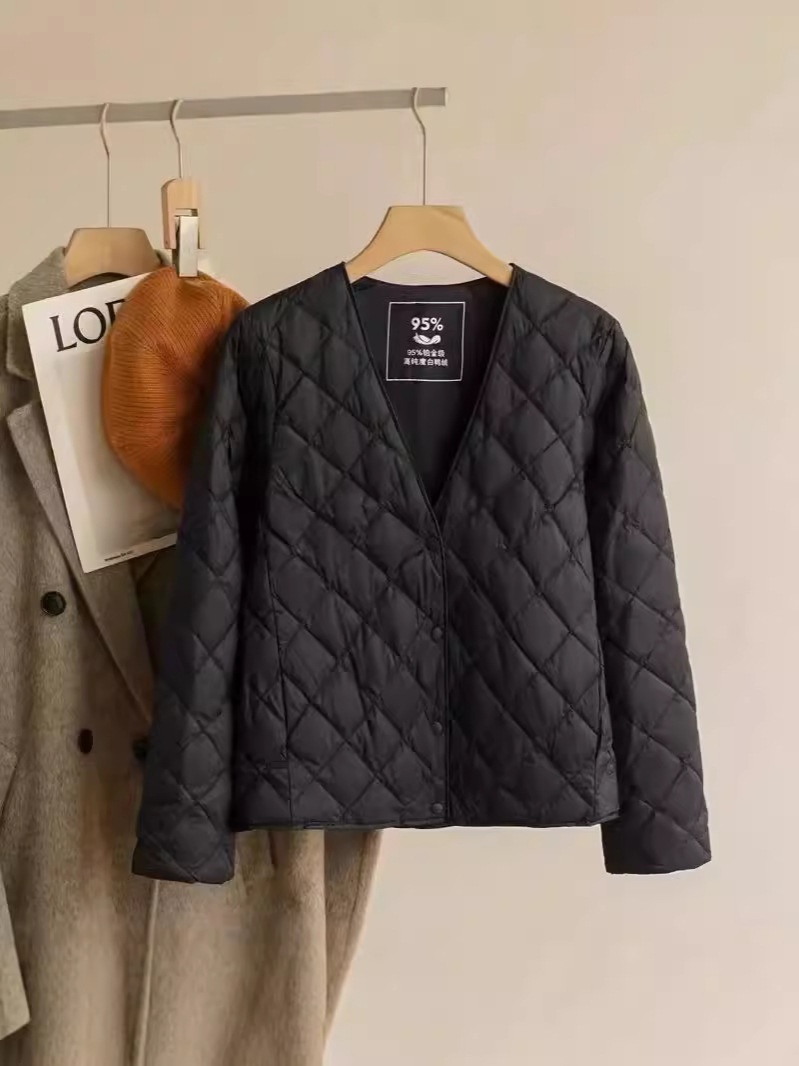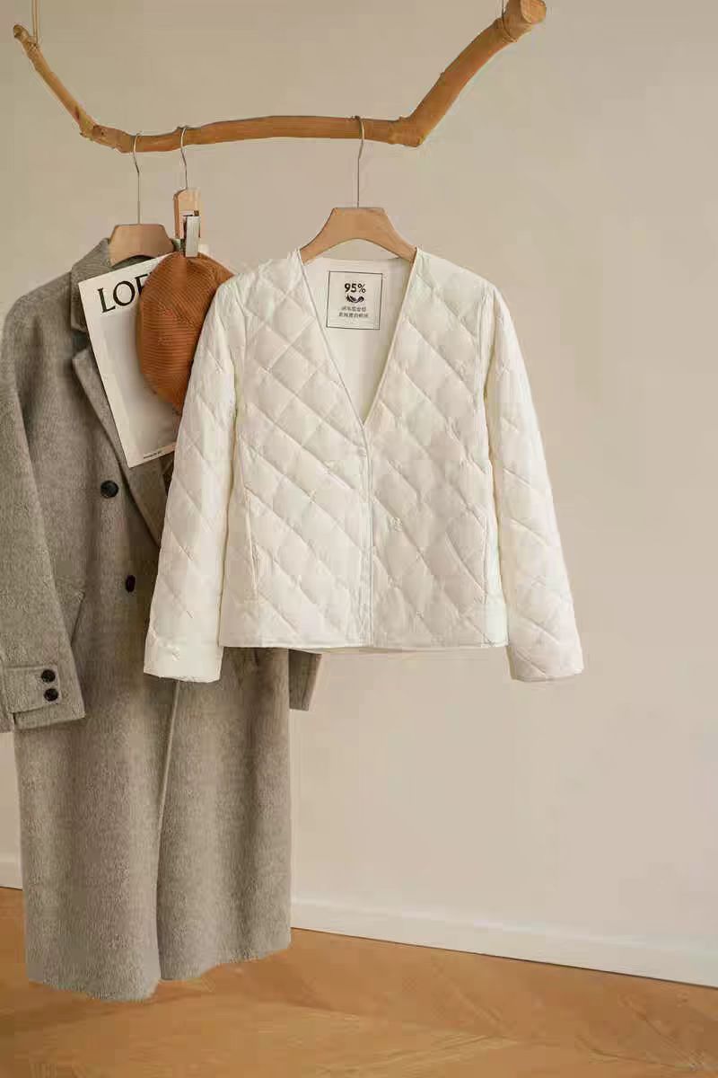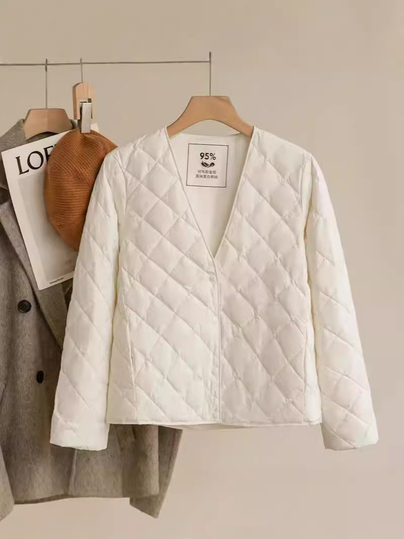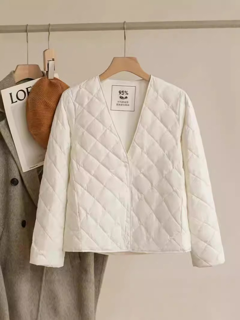 2024 новый большой V-образный воротник тонкий и теплый 95%