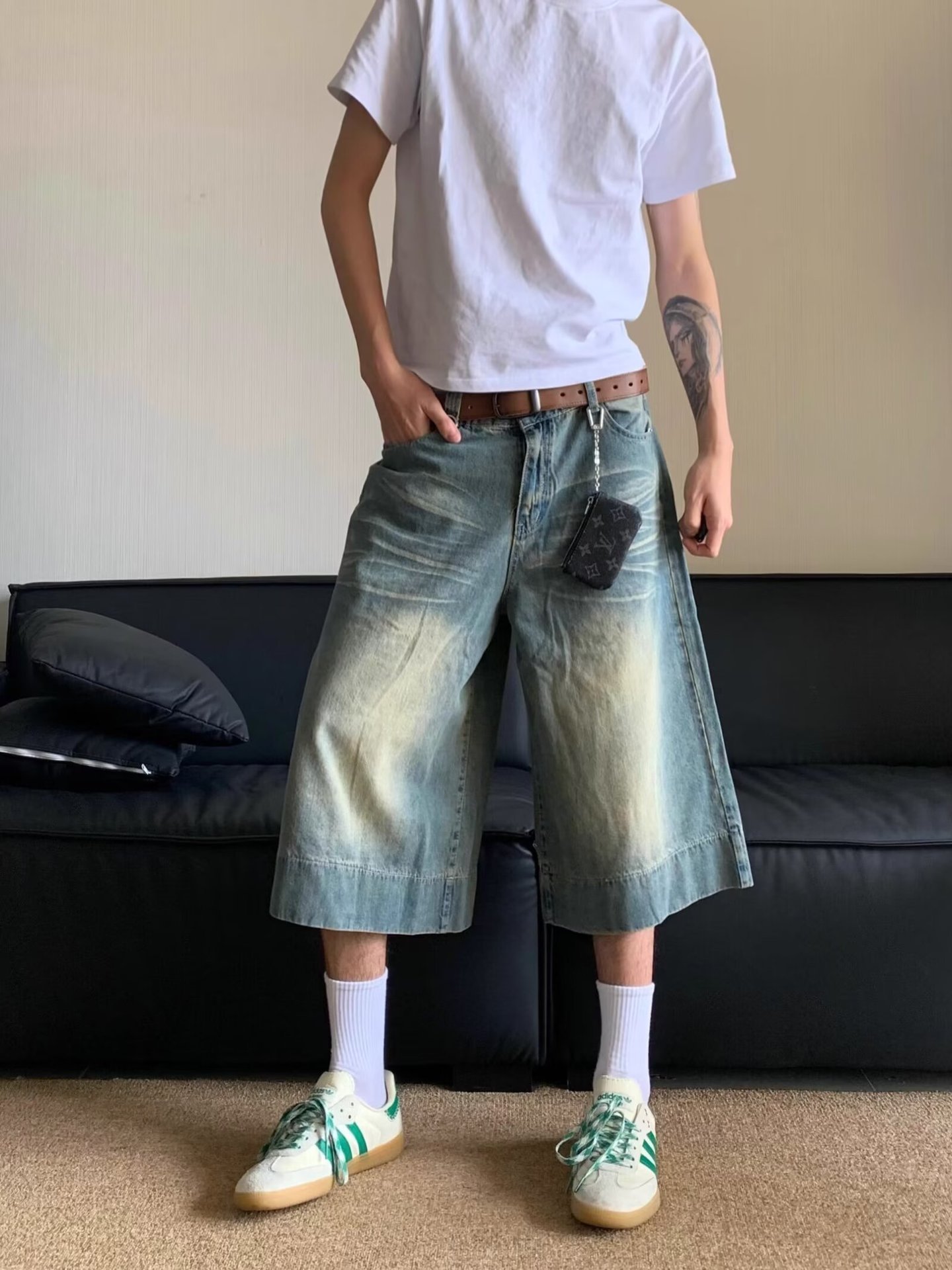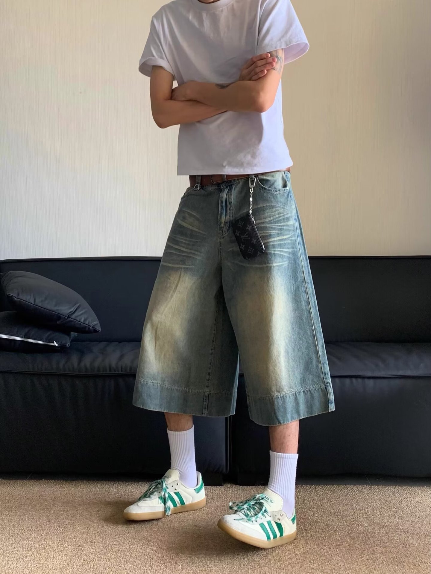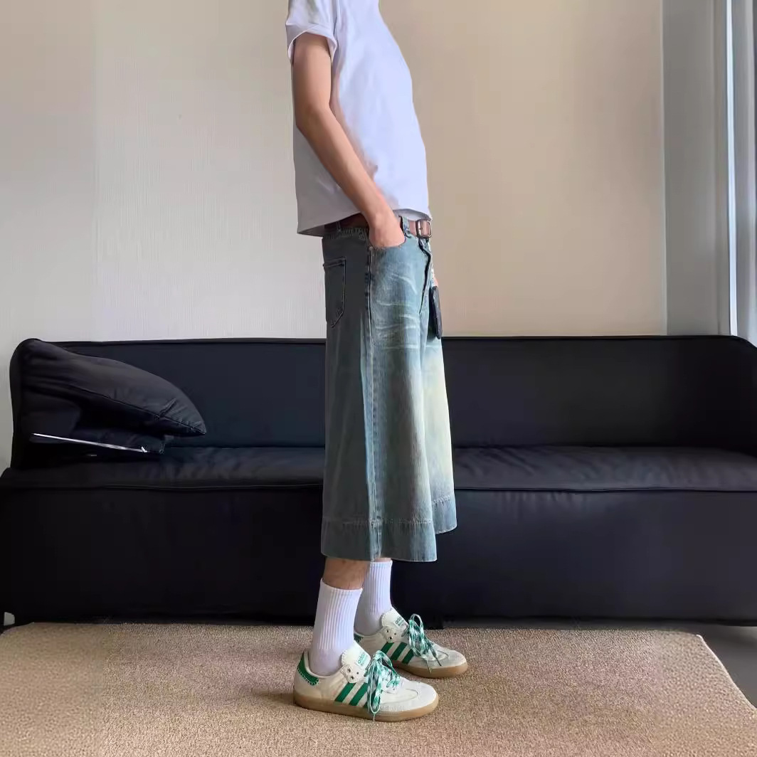 Внешняя торговля 2024 американский ретро широкие ножки 7 очков джинсы летние ретро стирки прямые джинсовые брюки мужские шорты