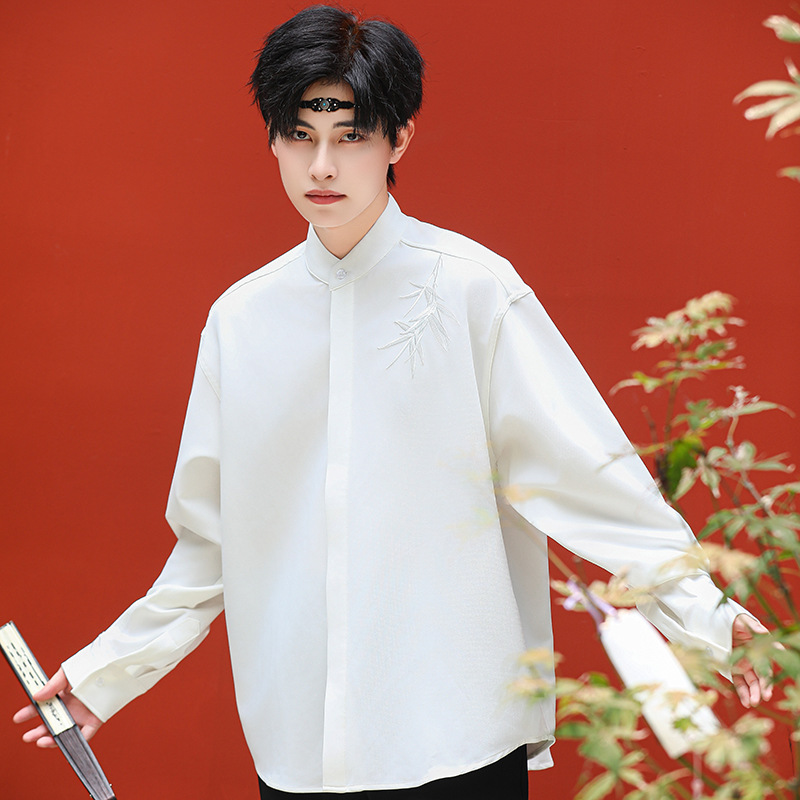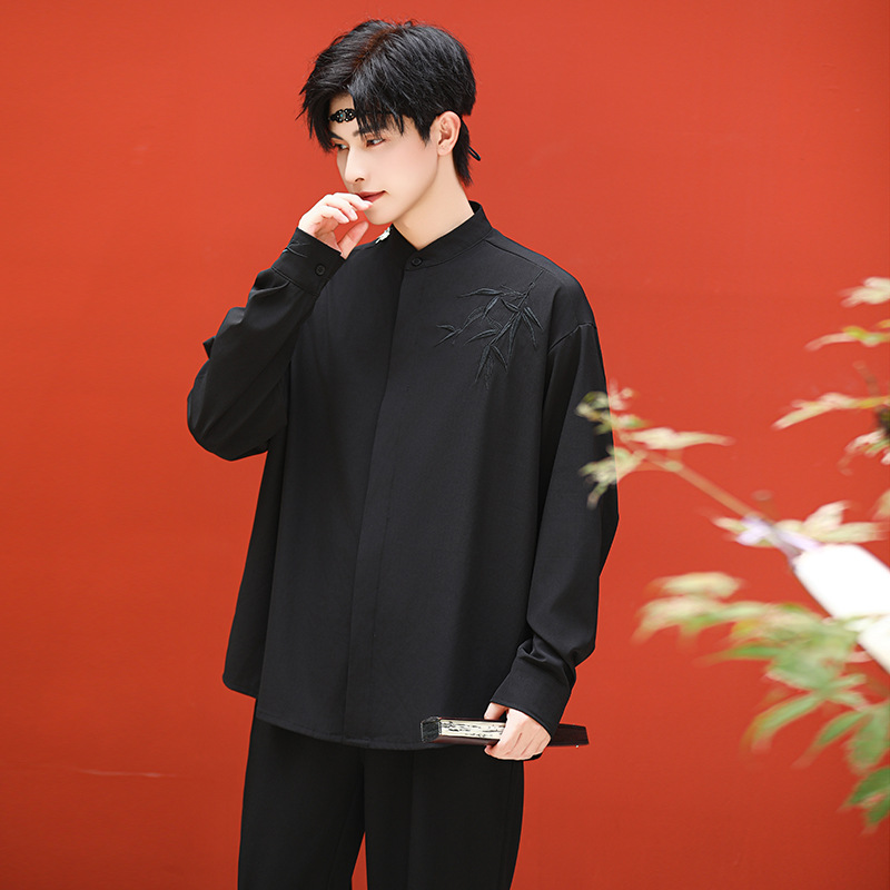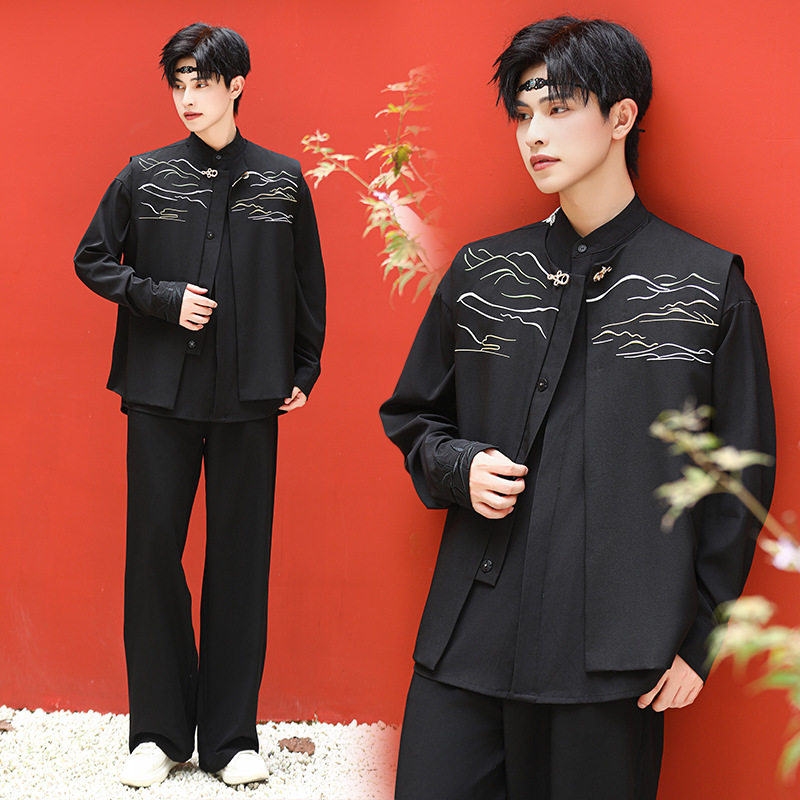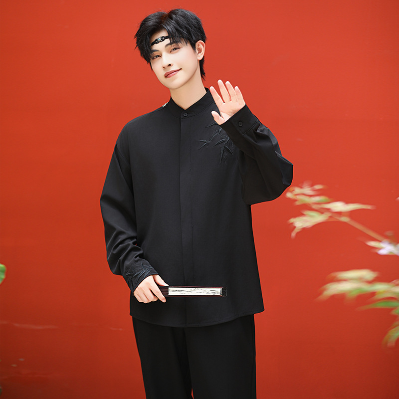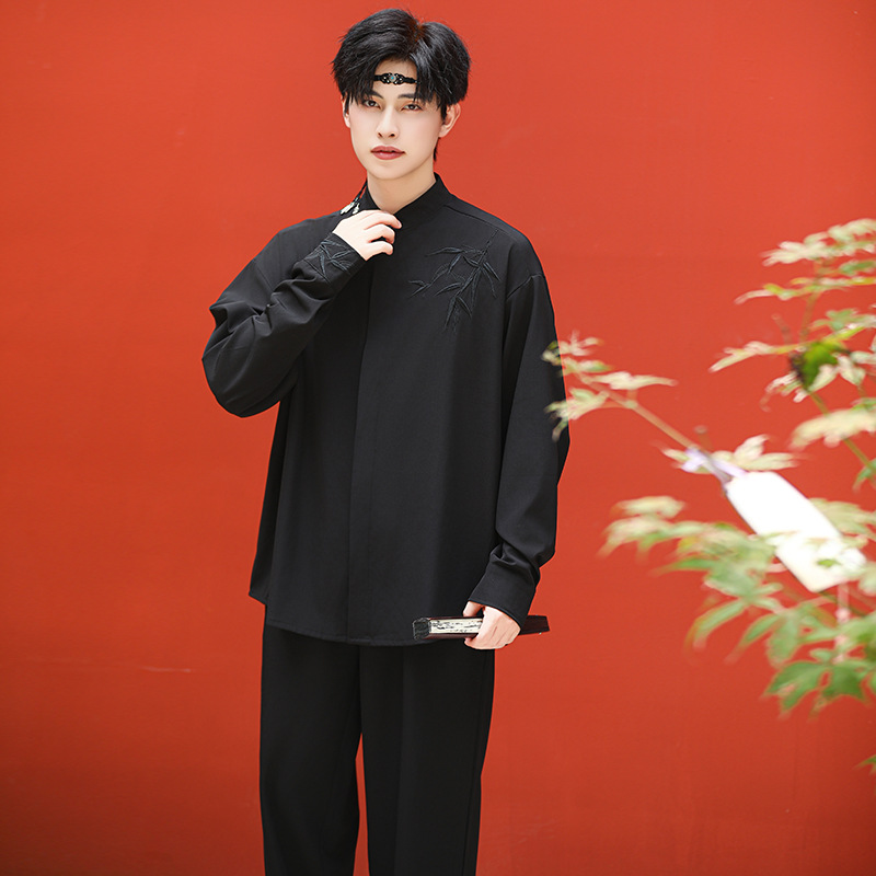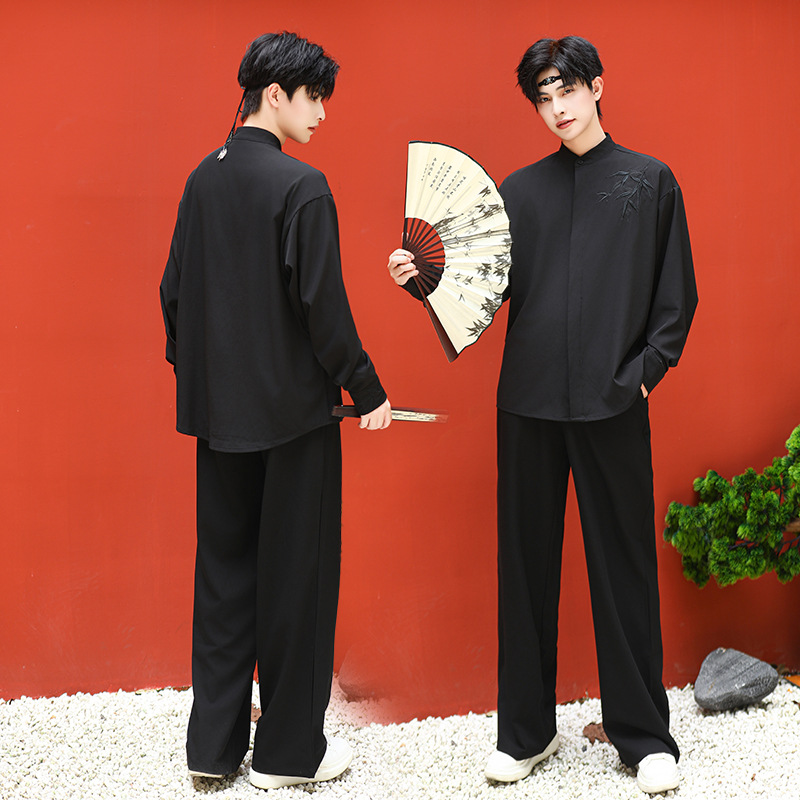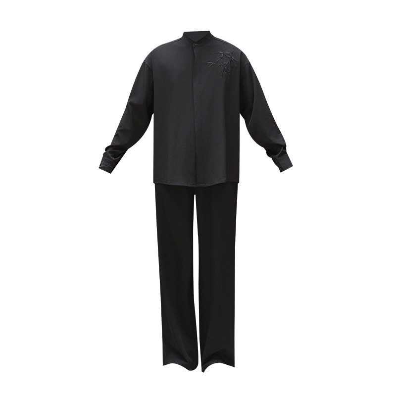 Настоящий выстрел в стиле ретро вышитый топ с длинными рукавами, эластичный черный брюки, мужской костюм 5802