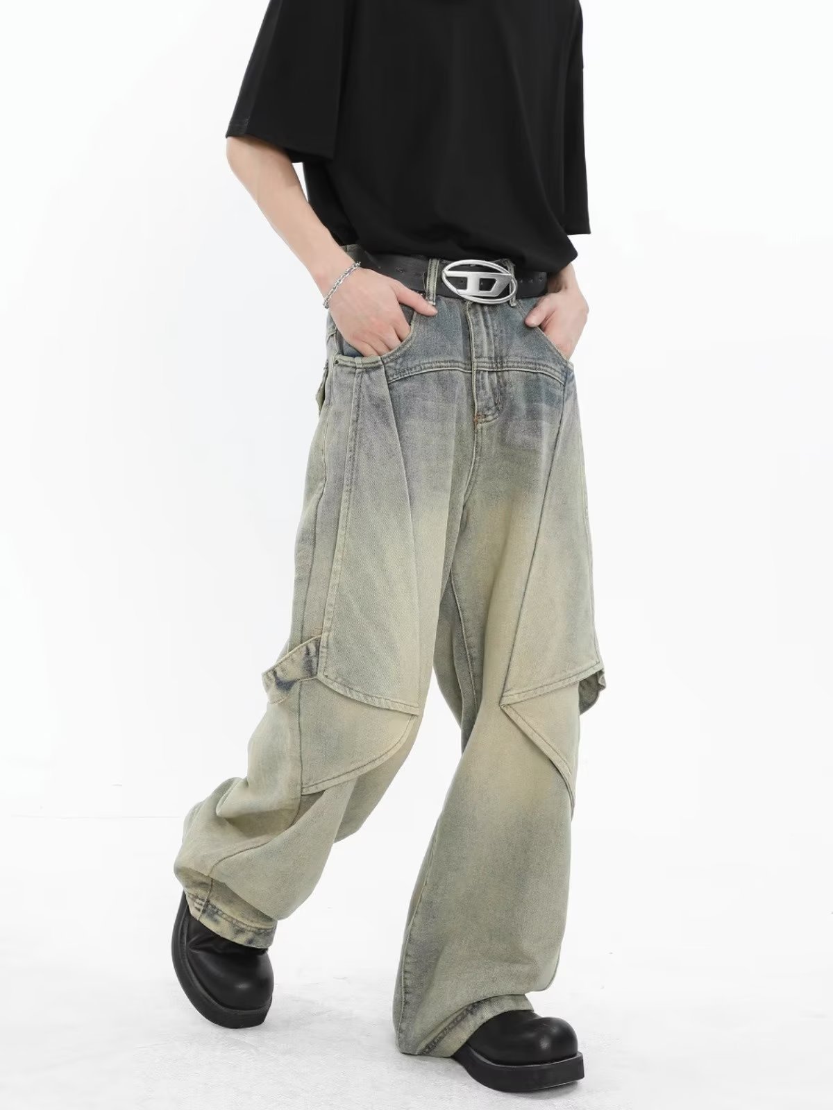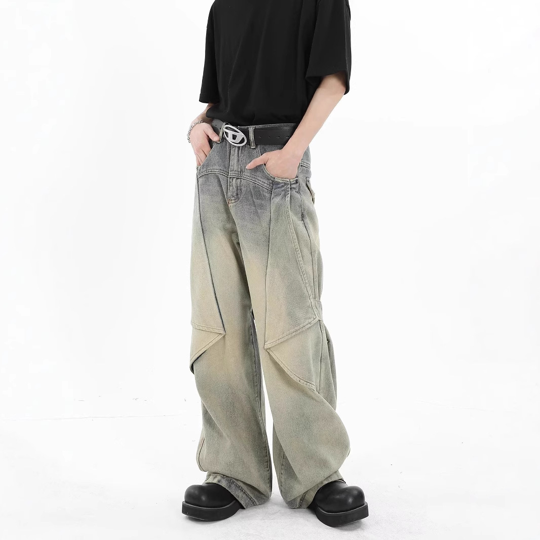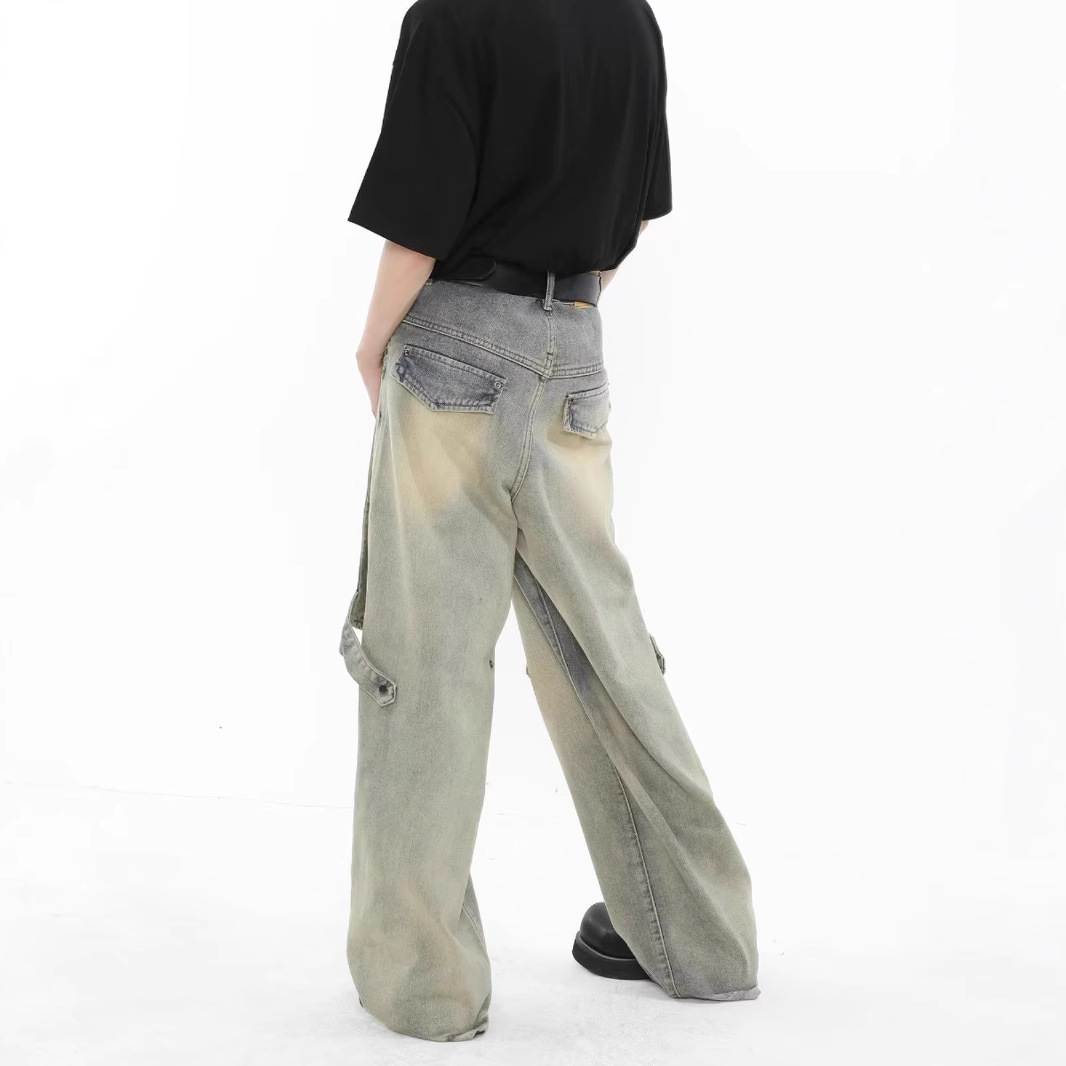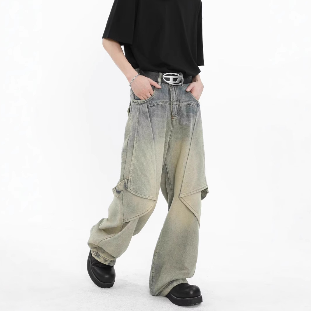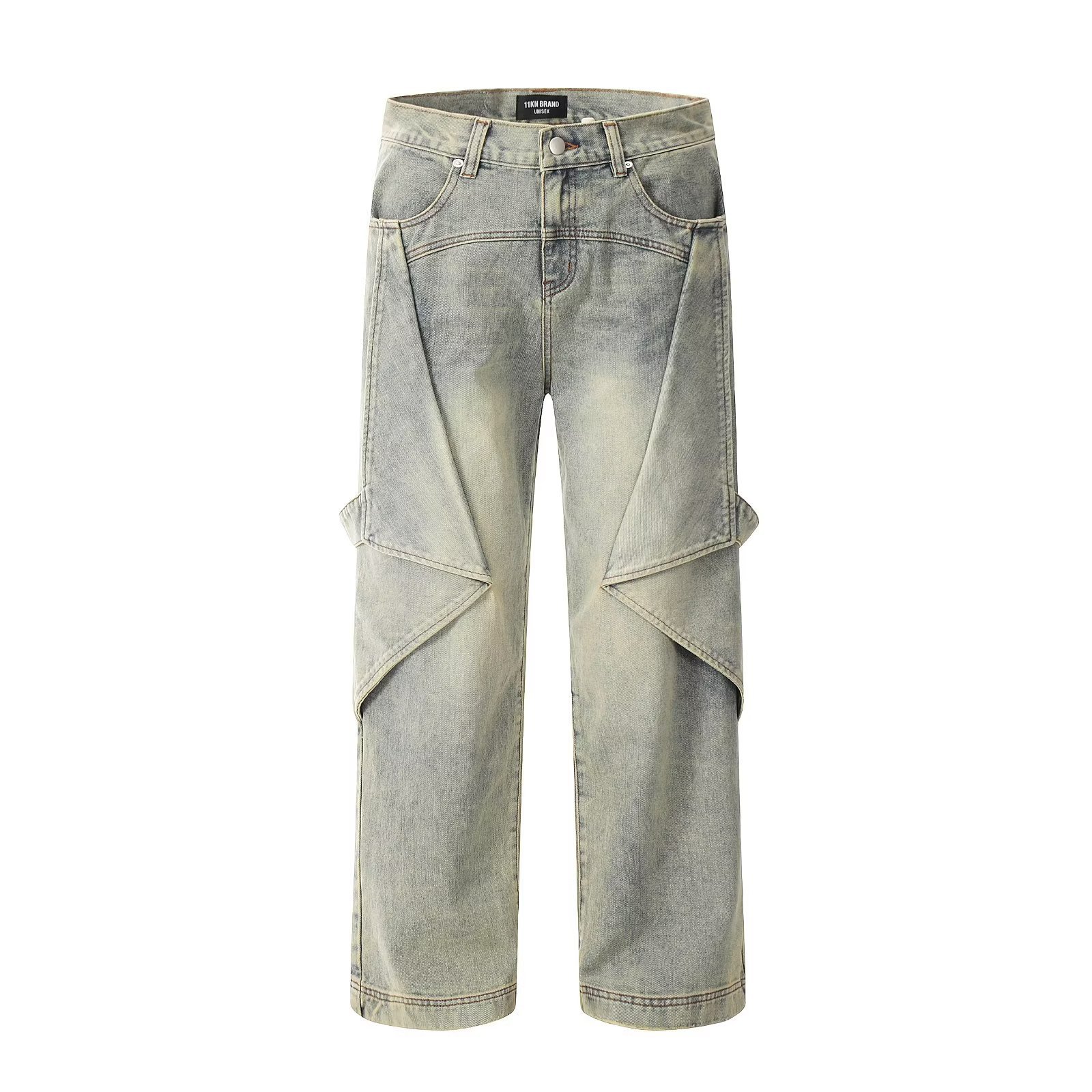 Американский ретро стирает старые грязевые джинсы cleanfit свободные прямые брюки с широкими ногами