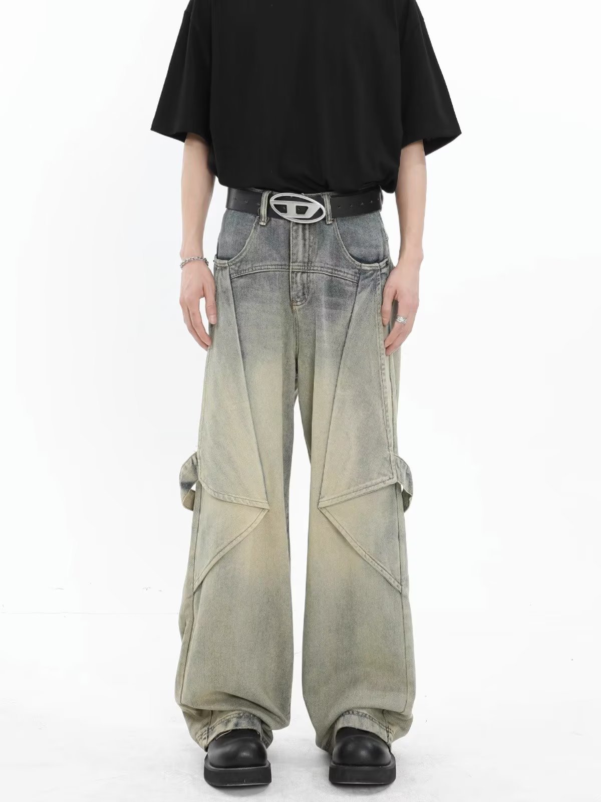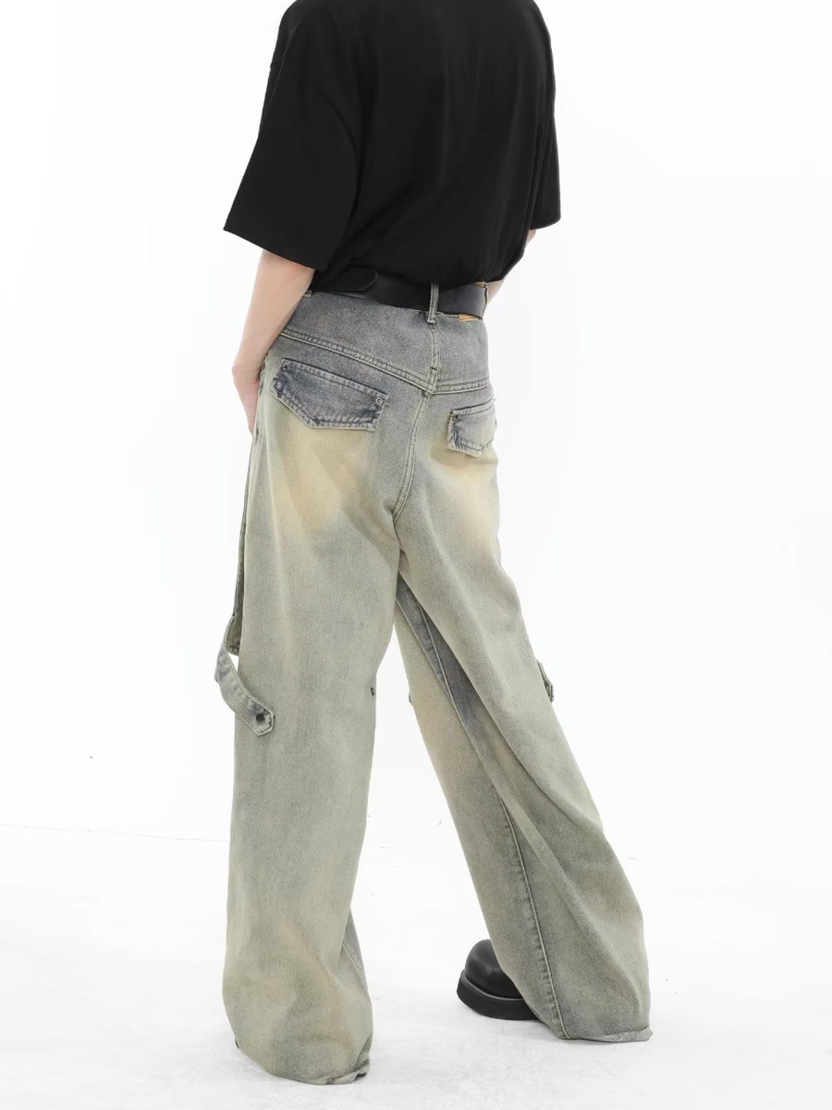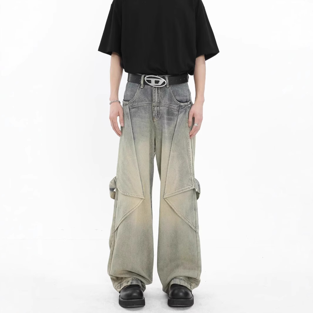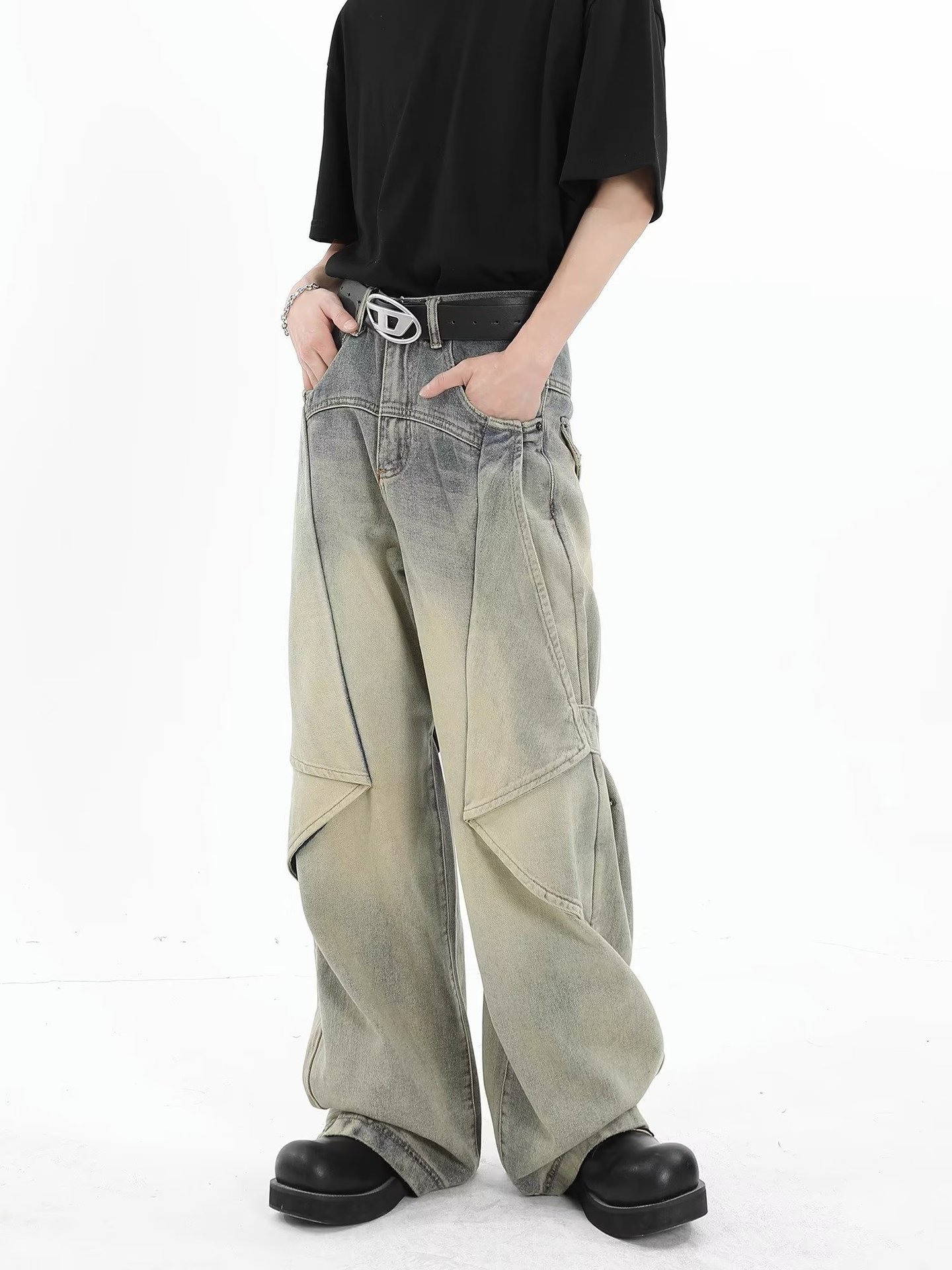 Американский ретро стирает старые грязевые джинсы cleanfit свободные прямые брюки с широкими ногами