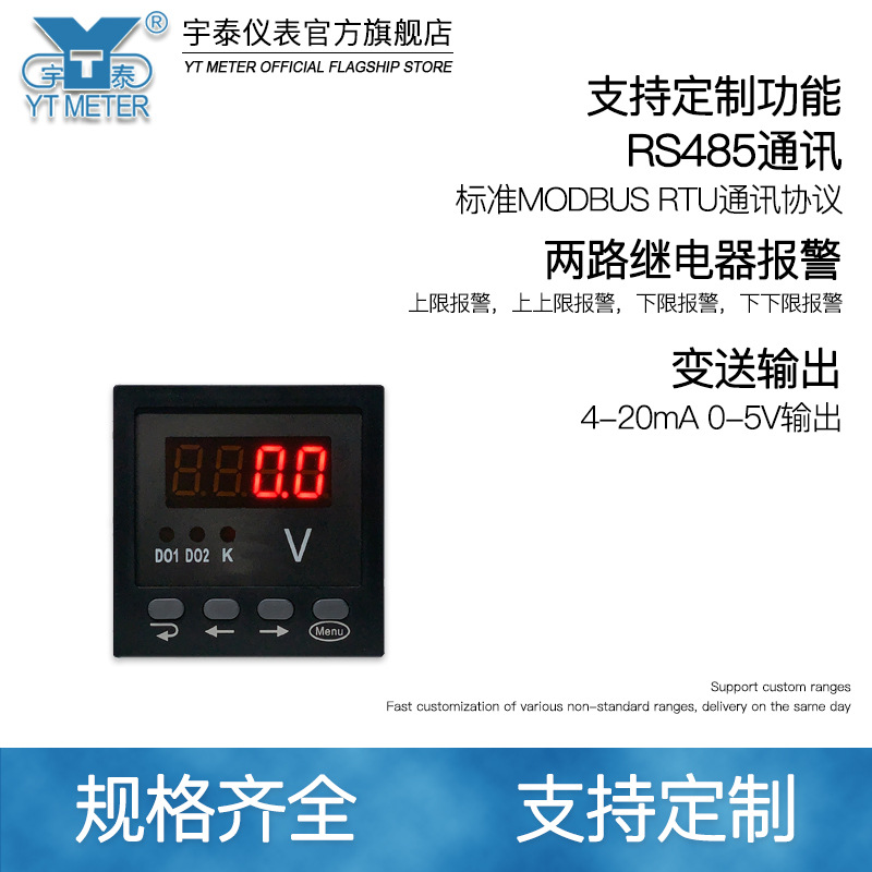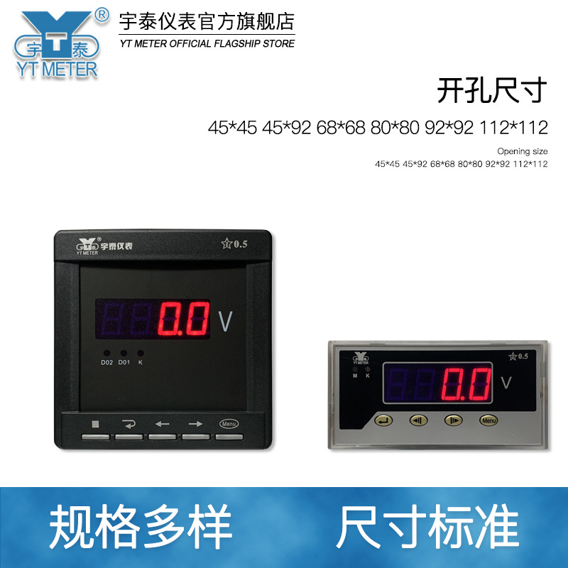 48*48 мм постоянного тока 5 В (рабочий источник питания 220 В переменного тока); 48*48 мм постоянного тока 50 В (рабочий источник питания 220 В переменного тока); 48*48 мм постоянного тока 600 В с связью RS485 (рабочий источник питания 85~265 В); 48*96 мм постоянного тока 10 В (рабочий источник питания 220 В переменного тока); 48*96 мм переменного тока 500 В с двумя выходами сигнализации (рабочий источник питания 85 ~ 265 В); 48*96 мм переменного тока 500 В с выходом 4–20 мА (рабочий источник питания переменного тока 220 В); 48*96 мм переменного тока 500 В с связью RS485 с двусторонней сигнализацией (рабочий источник питания AC220V); 48*96 мм переменного тока, 500 В, с двумя выходами сигнализации