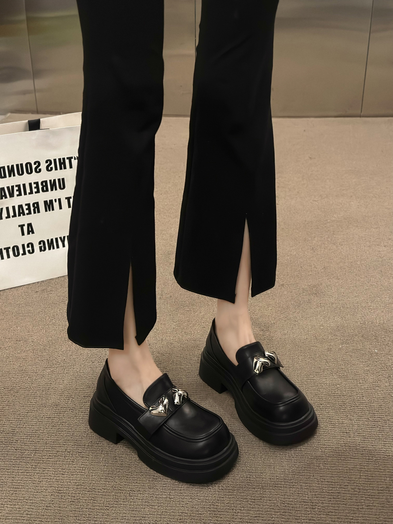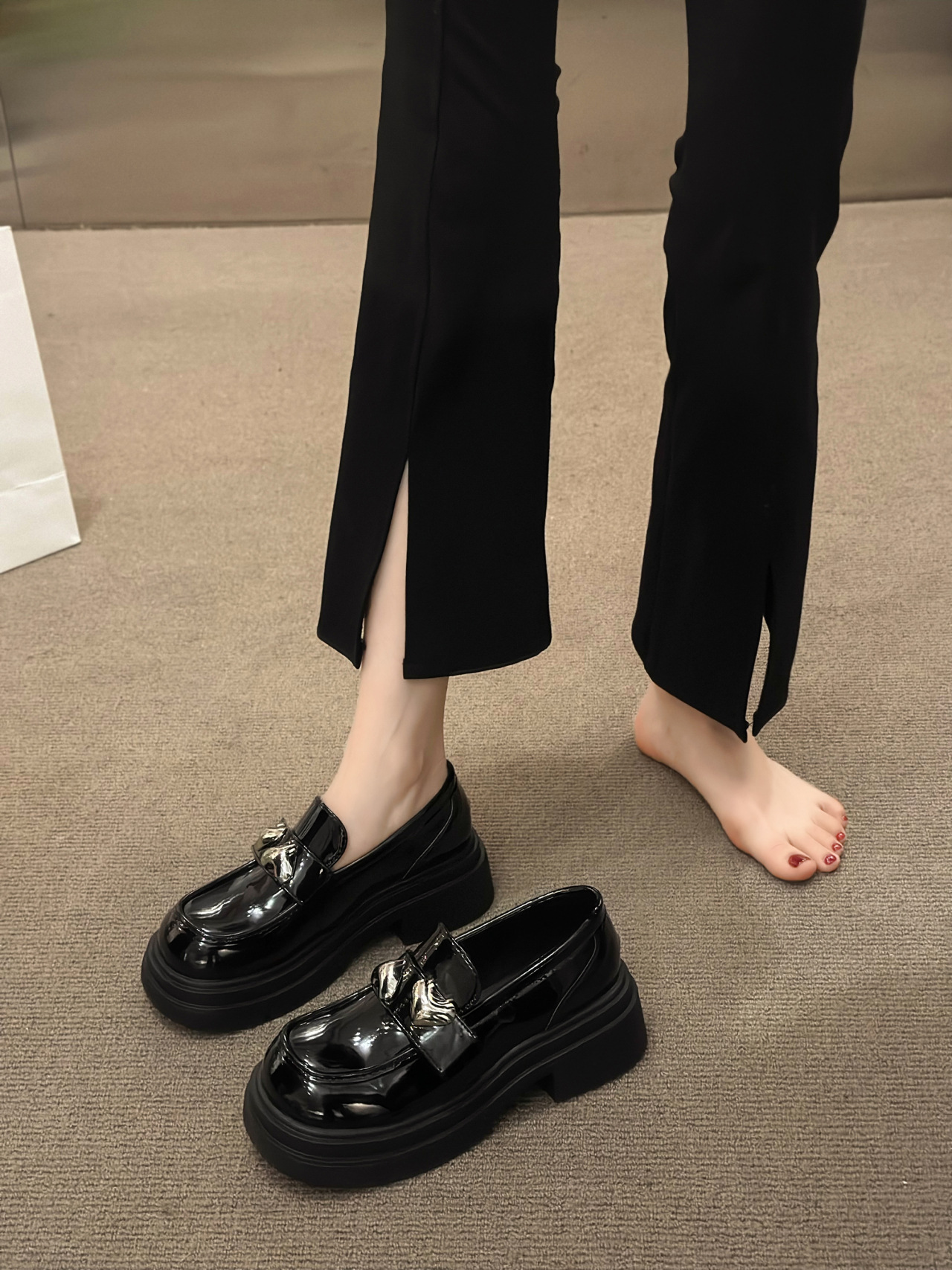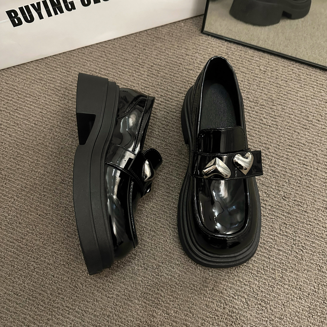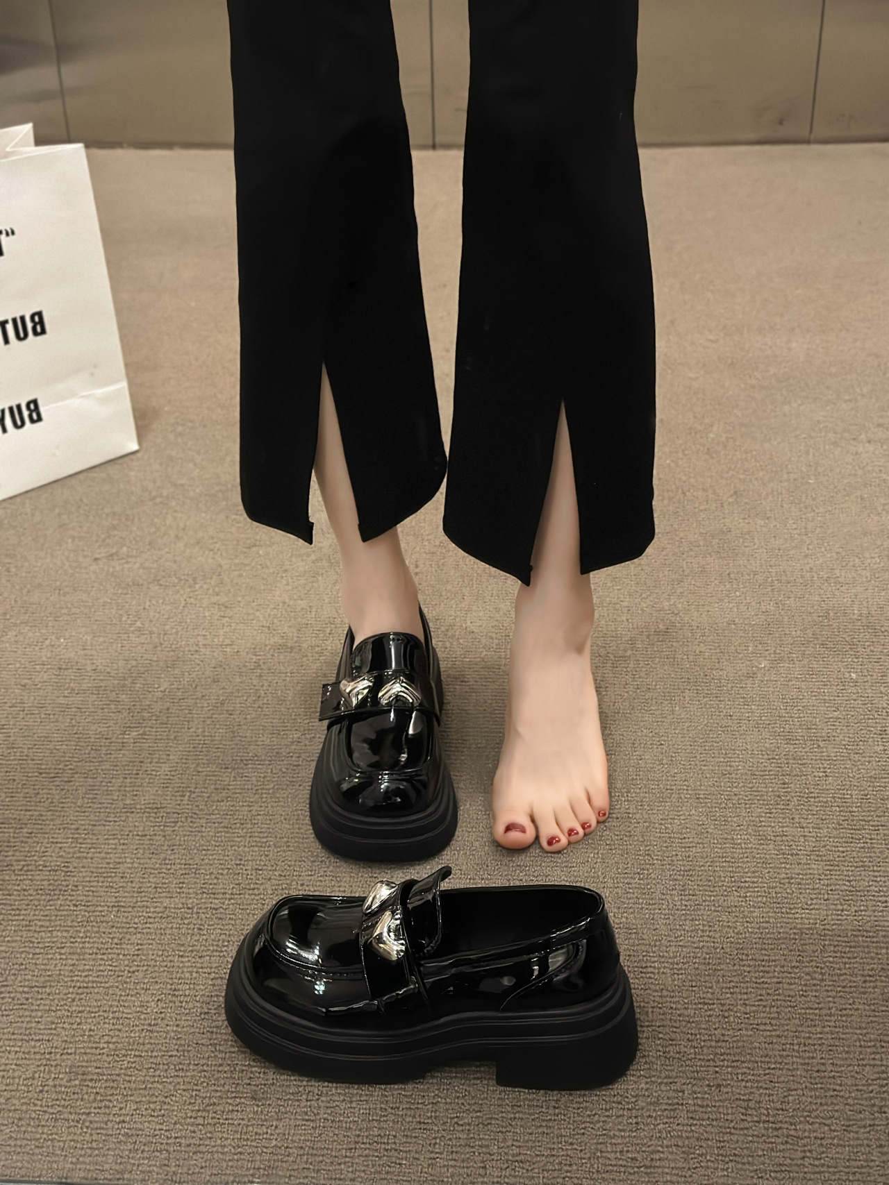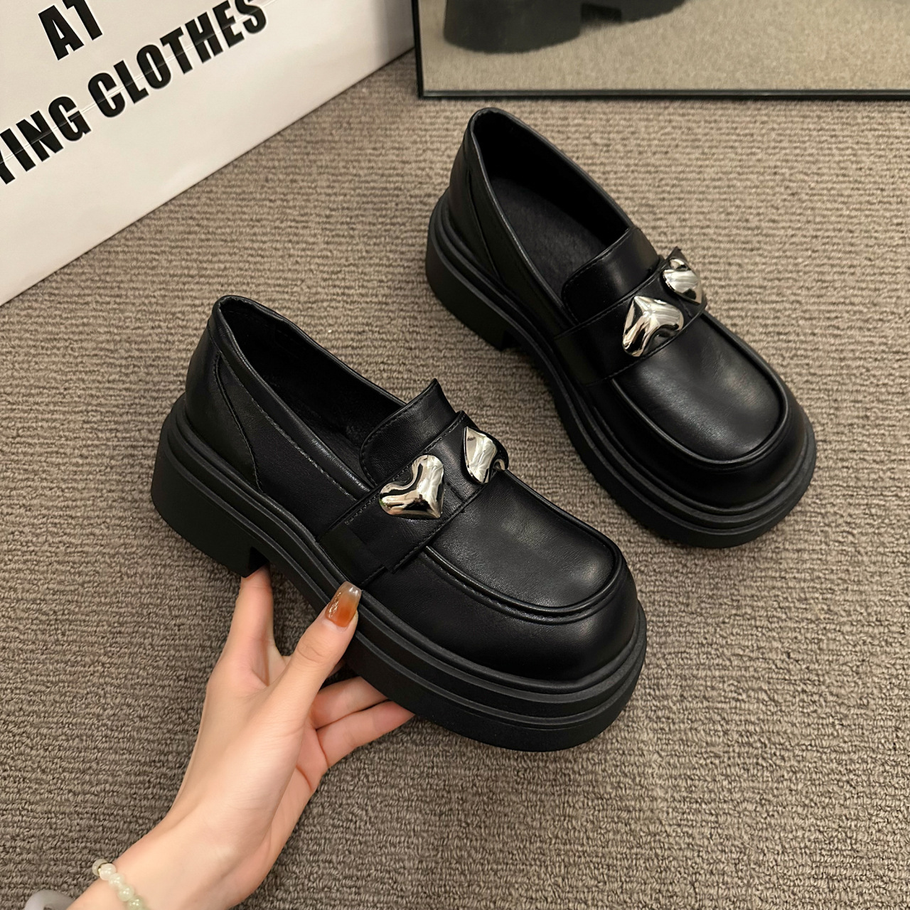 Толстая подошва увеличивает любовь Lefu обувь женская весна 2024 новый ретро-дикий английский стиль маленькая кожаная обувь