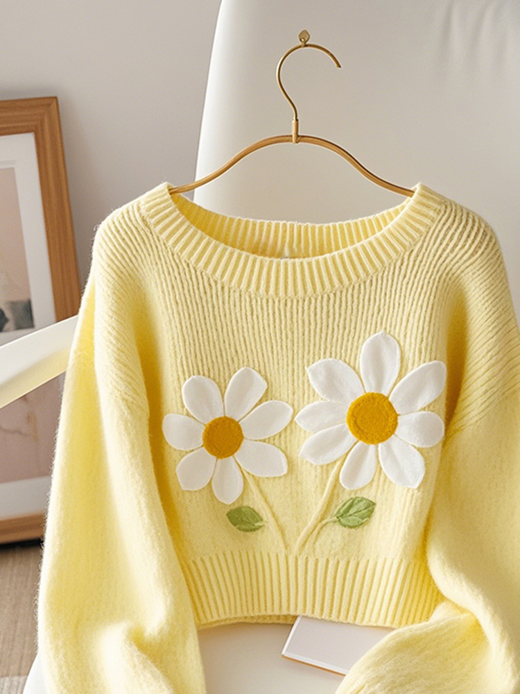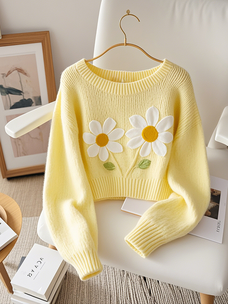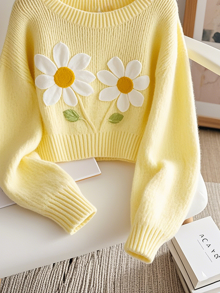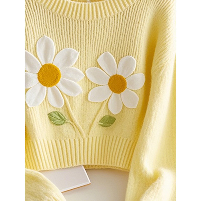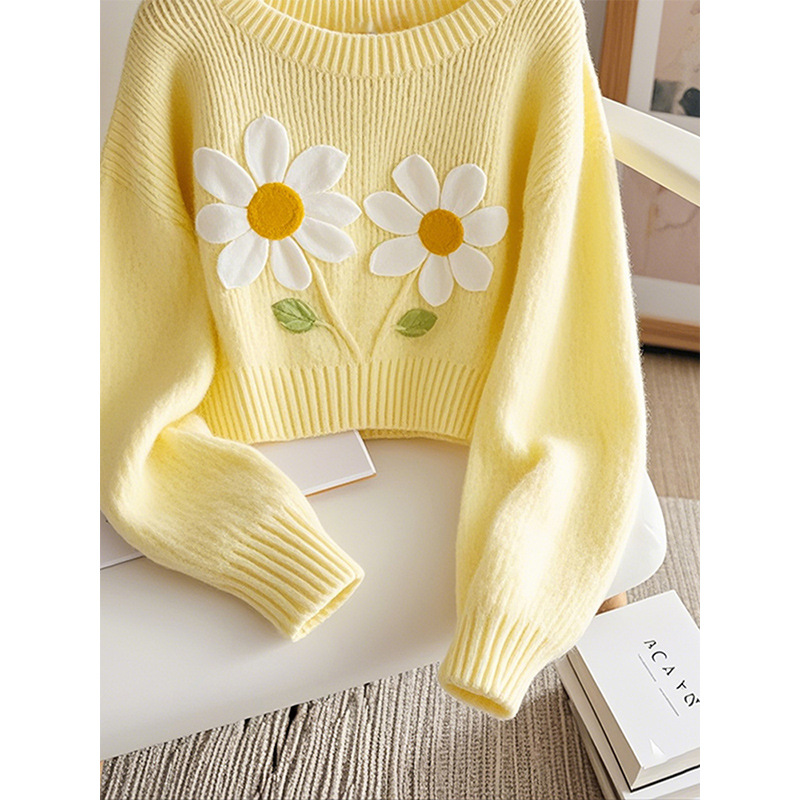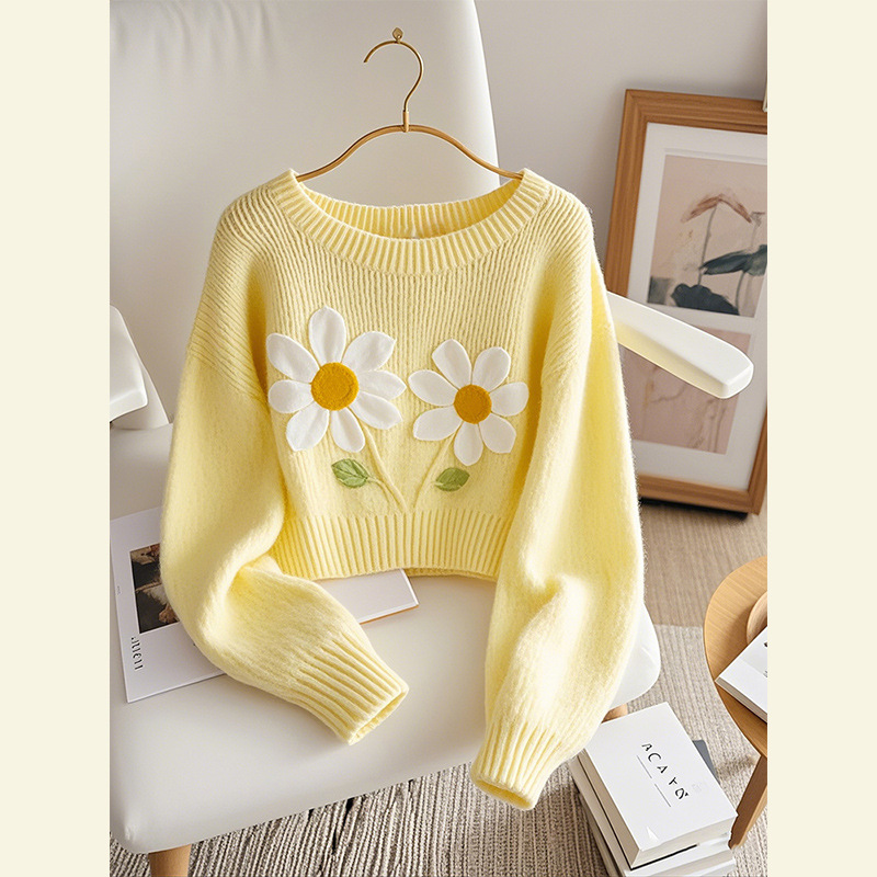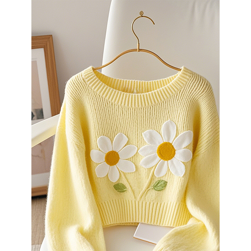 Корейский допамин модный иностранный минус возраст вязаный свитер мягкий клейкий молоко fufu красивый желтый принт пуловер свитер осень