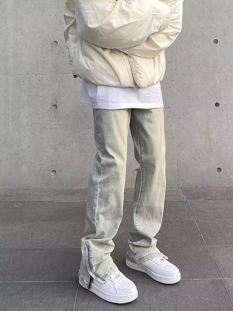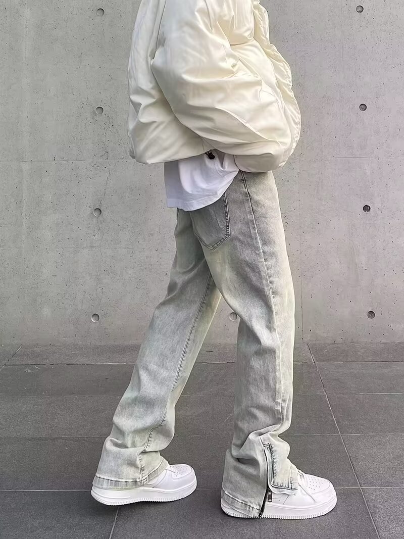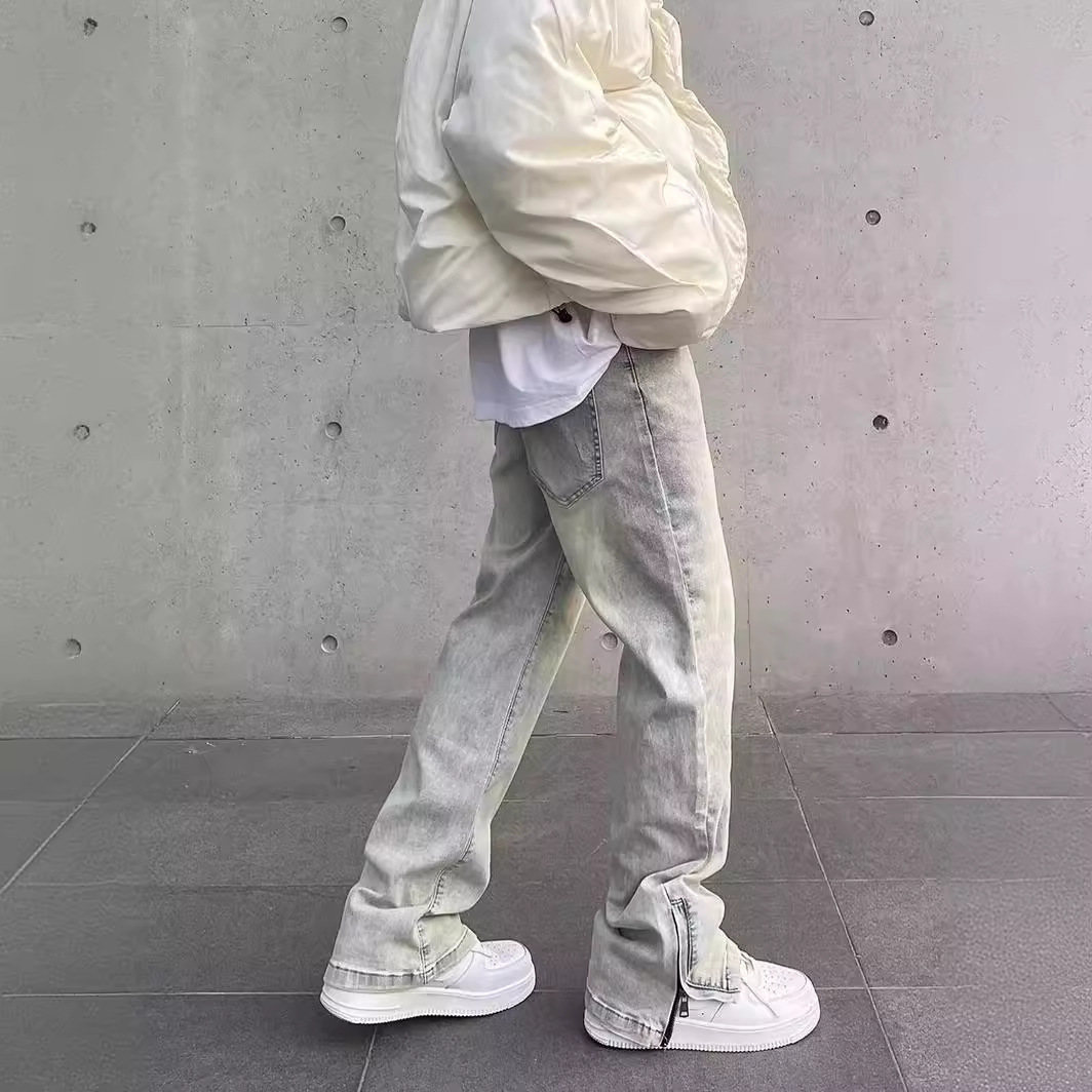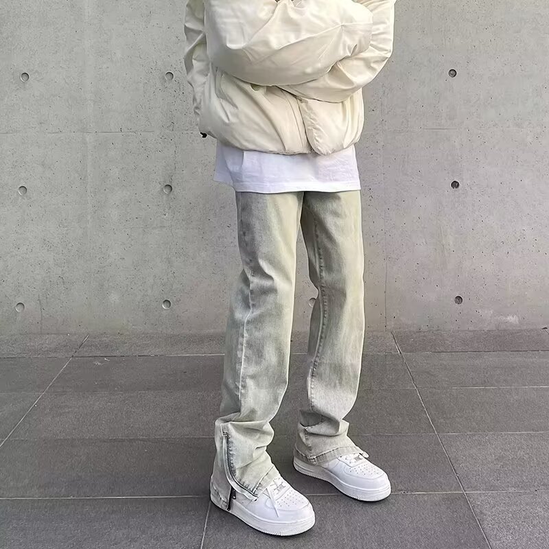 Внешняя торговля США High Street vibe Ретро вымытые в старой желтой грязи окрашенные молнией с открытой вилкой джинсы мужские прямые брюки