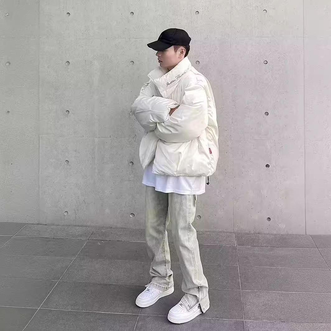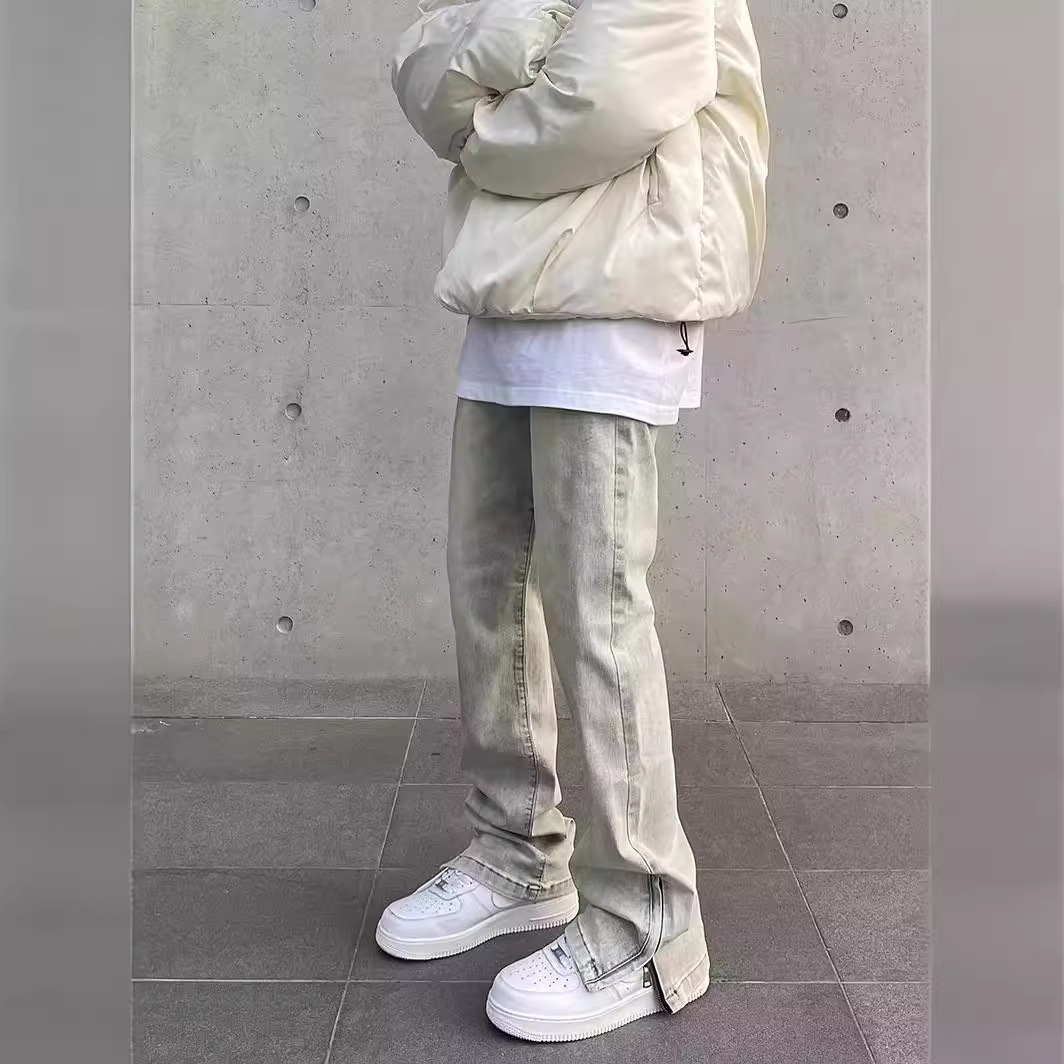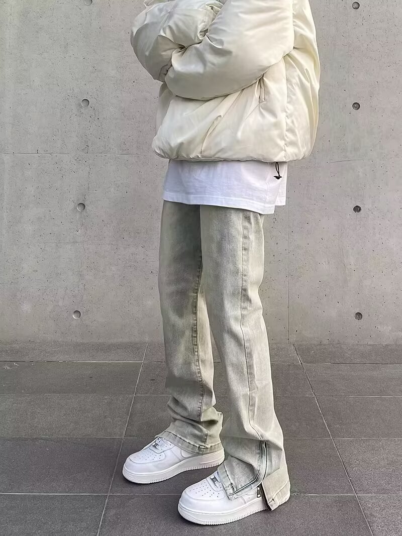 Внешняя торговля США High Street vibe Ретро вымытые в старой желтой грязи окрашенные молнией с открытой вилкой джинсы мужские прямые брюки