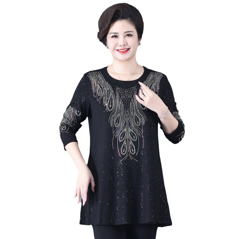 Весенняя и осенняя нижняя рубашка средней и длинной формы большой размер для пожилых женщин с длинными рукавами футболка среднего возраста весна и осень зимняя куртка