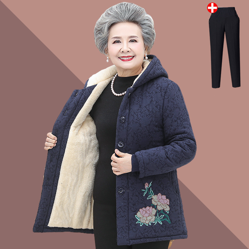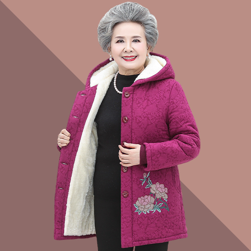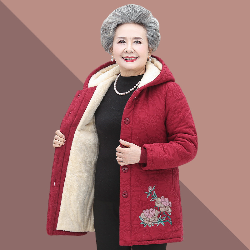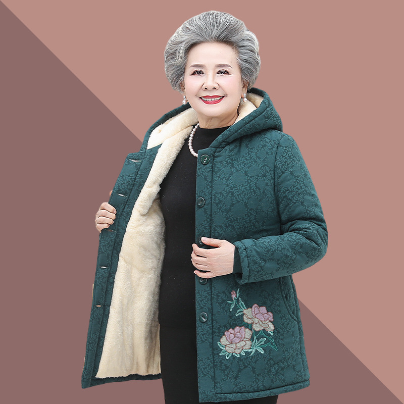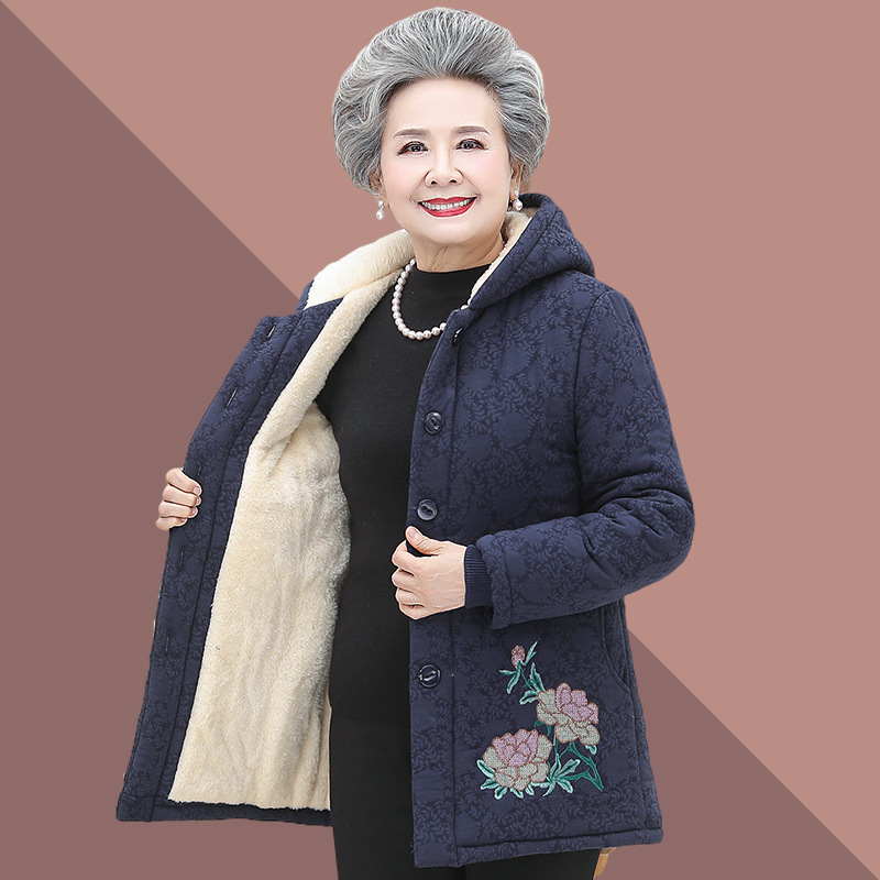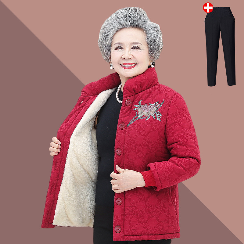 Бабушка зимняя хлопчатобумажная куртка женский средний и пожилой зимний бархат утолщение маленькая мама куртка старушка хлопчатобумажная одежда