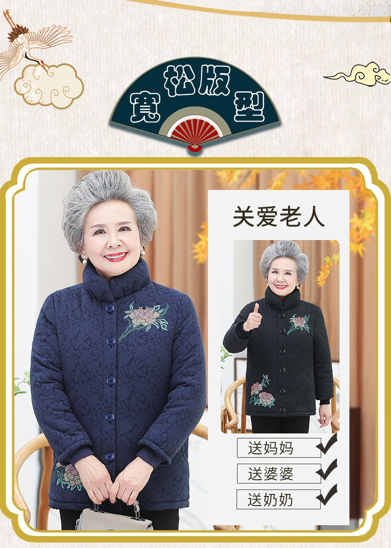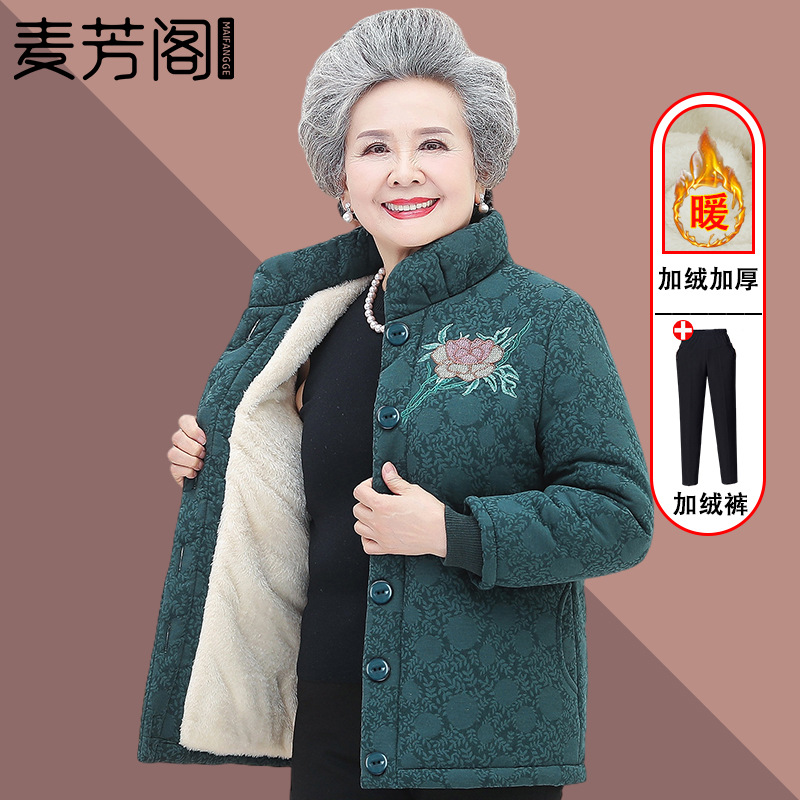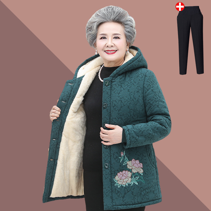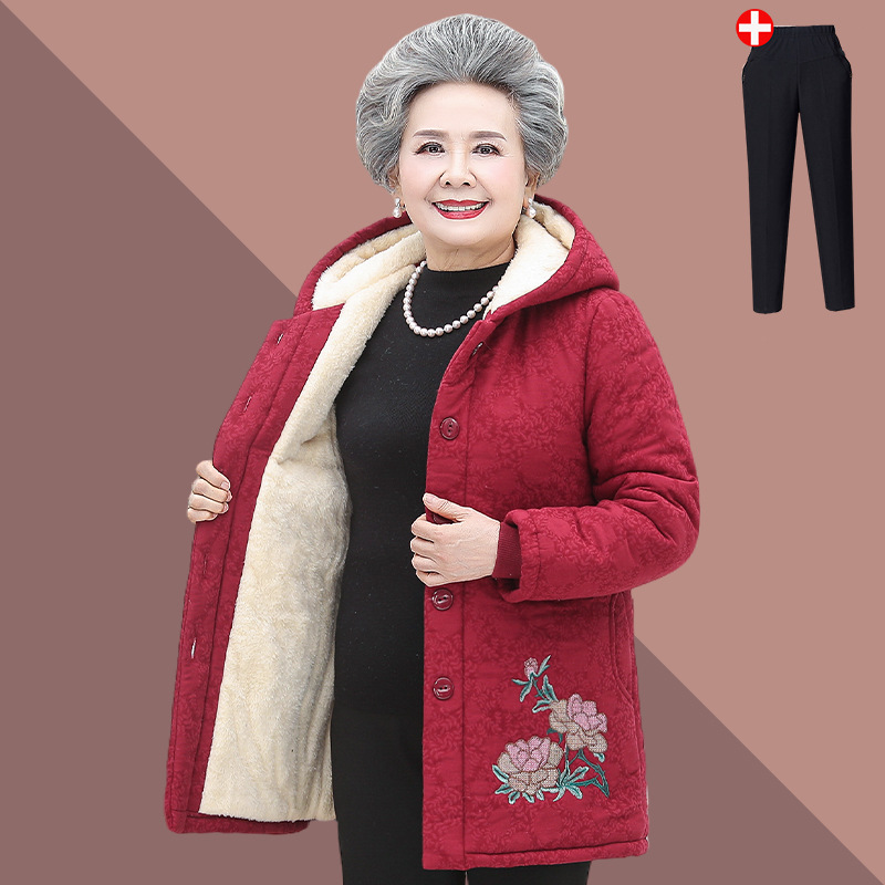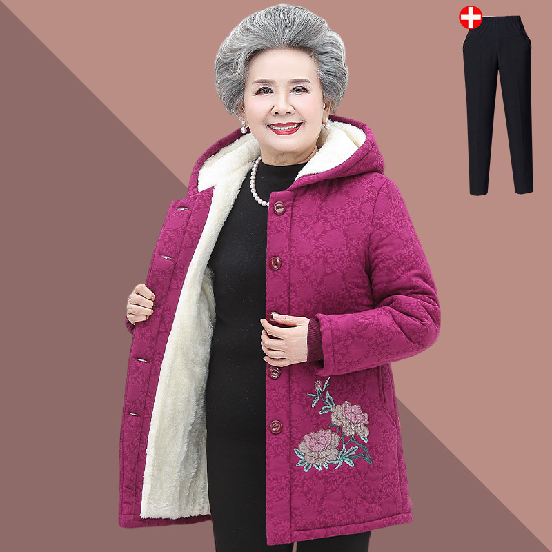 Бабушка зимняя хлопчатобумажная куртка женский средний и пожилой зимний бархат утолщение маленькая мама куртка старушка хлопчатобумажная одежда