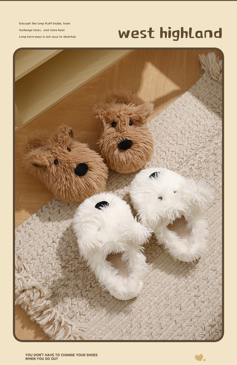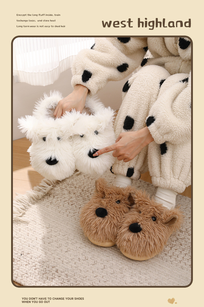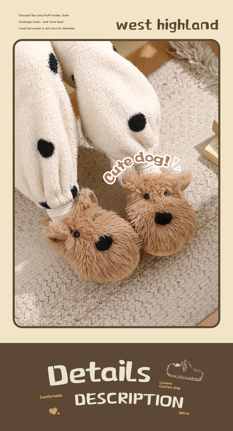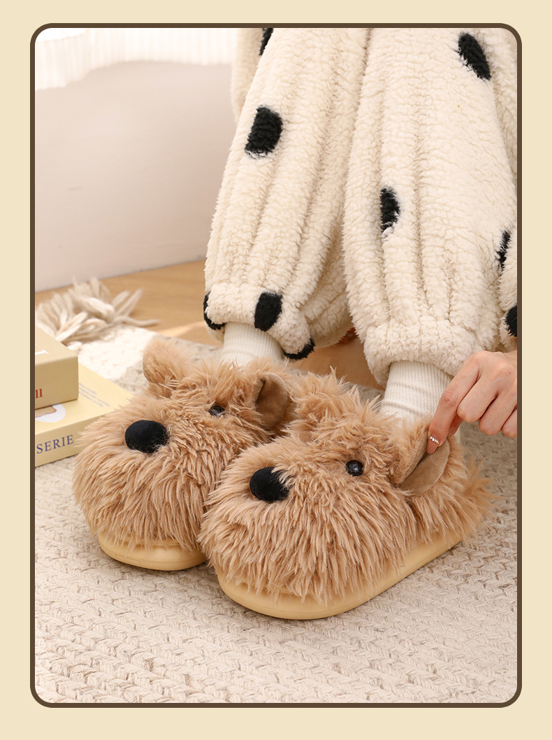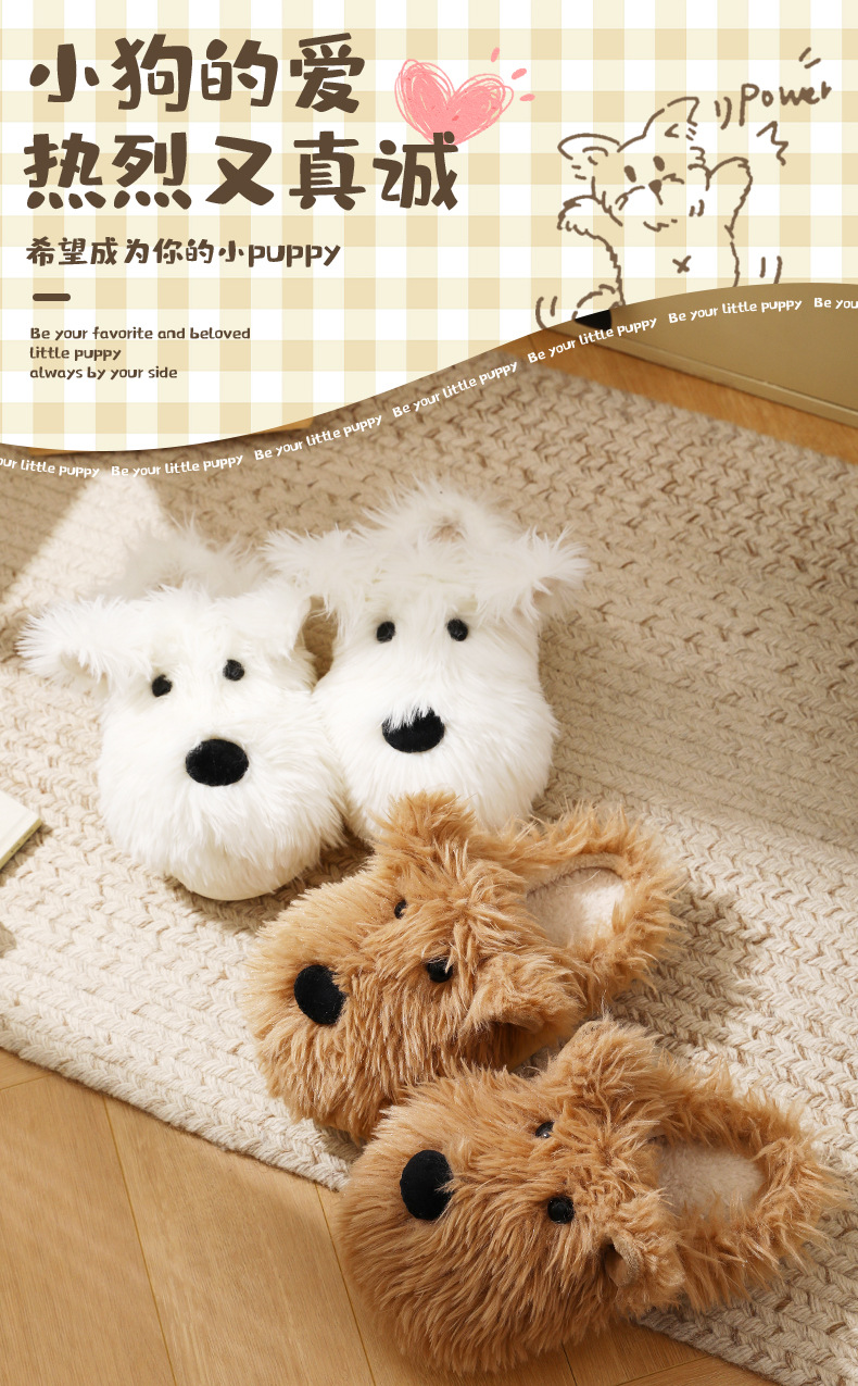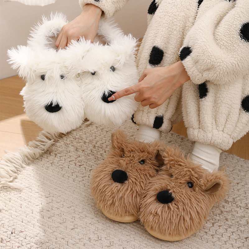 Нанбуан милый мультфильм нацарапанный щенок хлопчатобумажные тапочки женский осенний и зимний крытый дом студенческое общежитие шерстяные тапочки