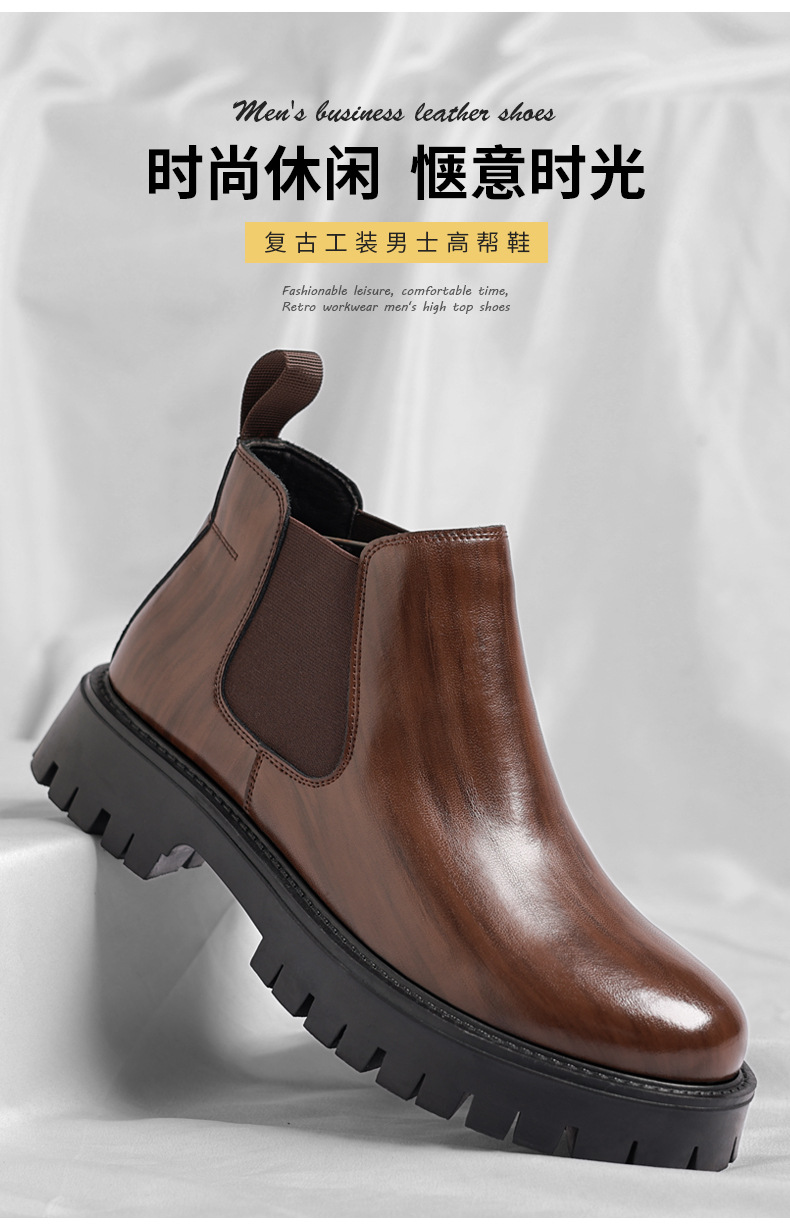 Осенние и зимние новые ботинки Martin сапоги мужской высокий бритвенные коричневый дымовой трубочки челси сапоги мужской повседневные короткие сапоги для молодежи
