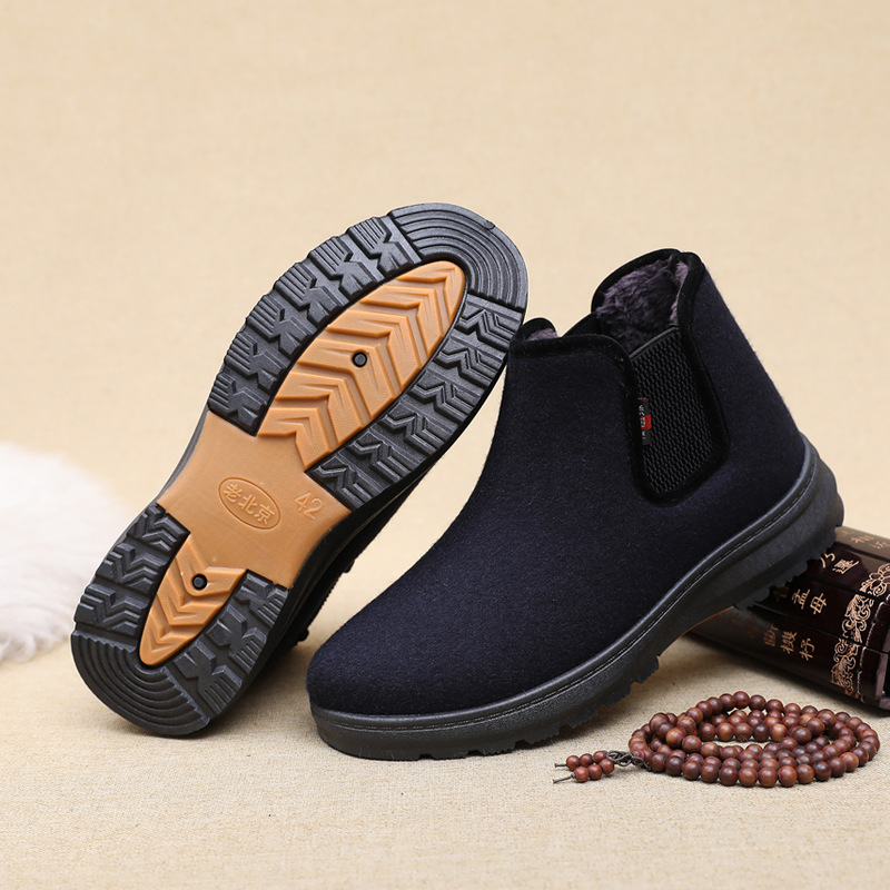 Зимние старые пекинские хлопчатобумажные туфли мужские бархатные теплые нескользкие хлопковые сапоги