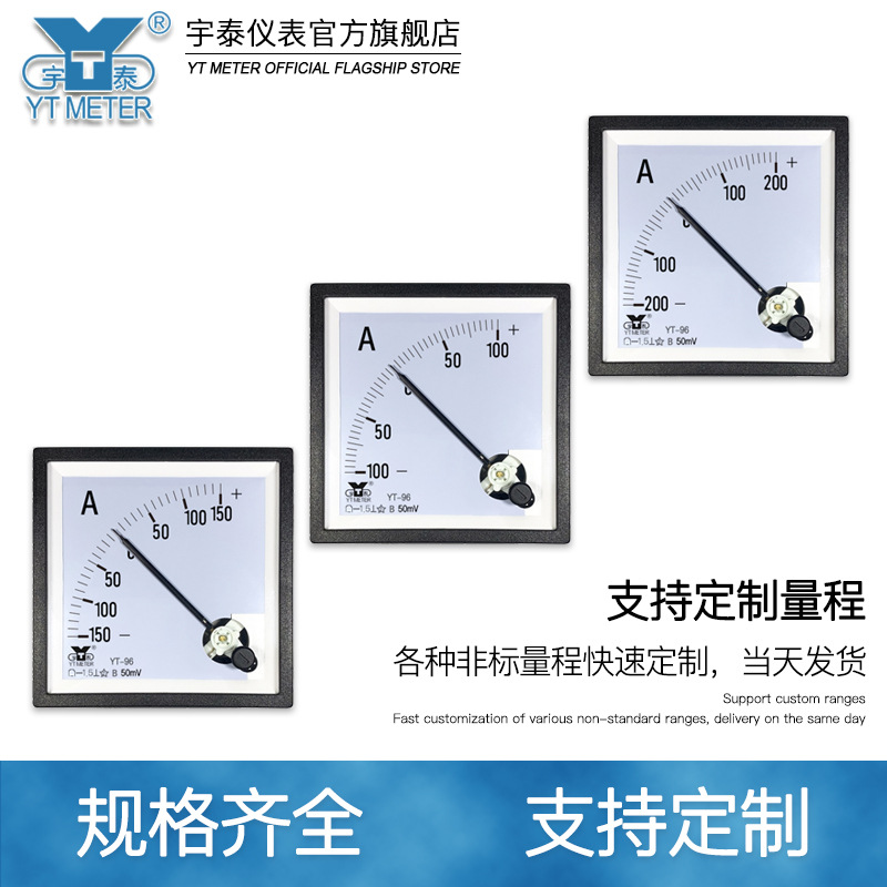 Размер инструмента 96х96мм, размер отверстия 92х92мм.; Плюс или минус 50 А 50 мВ; Плюс или минус 100 А 50 мВ; Плюс или минус 150 А 50 мВ; Плюс или минус 200 А 50 мВ