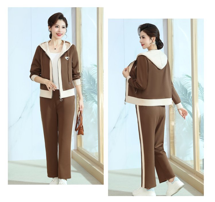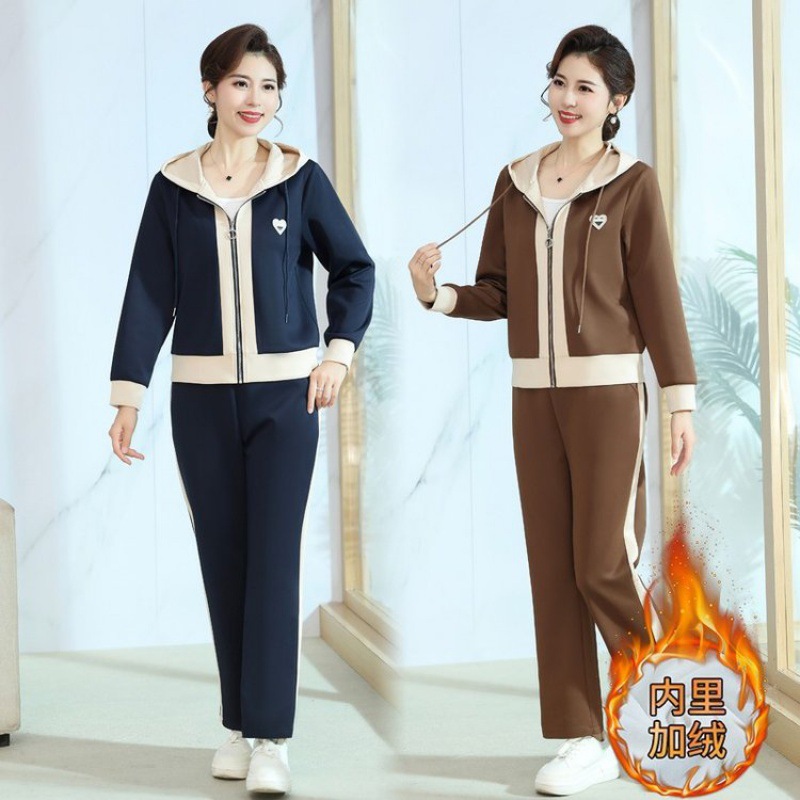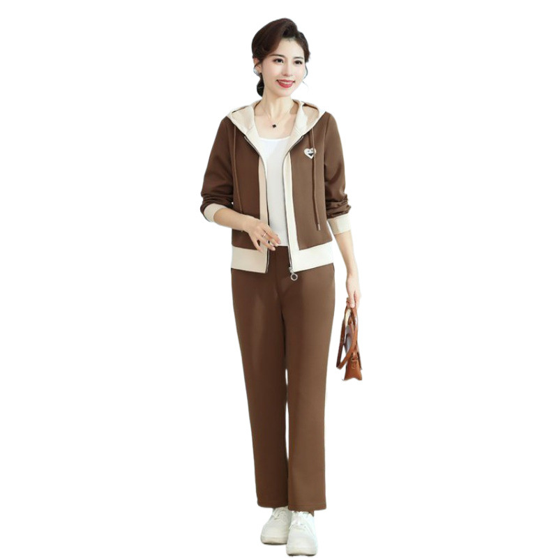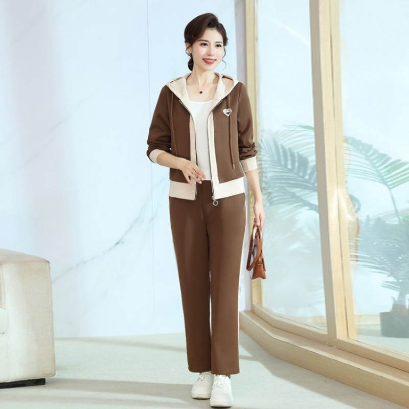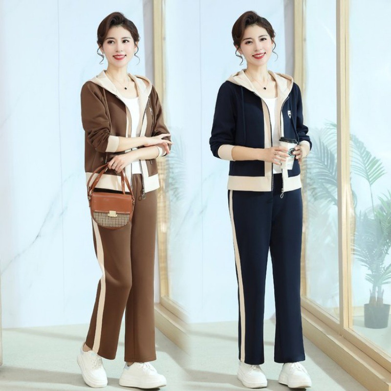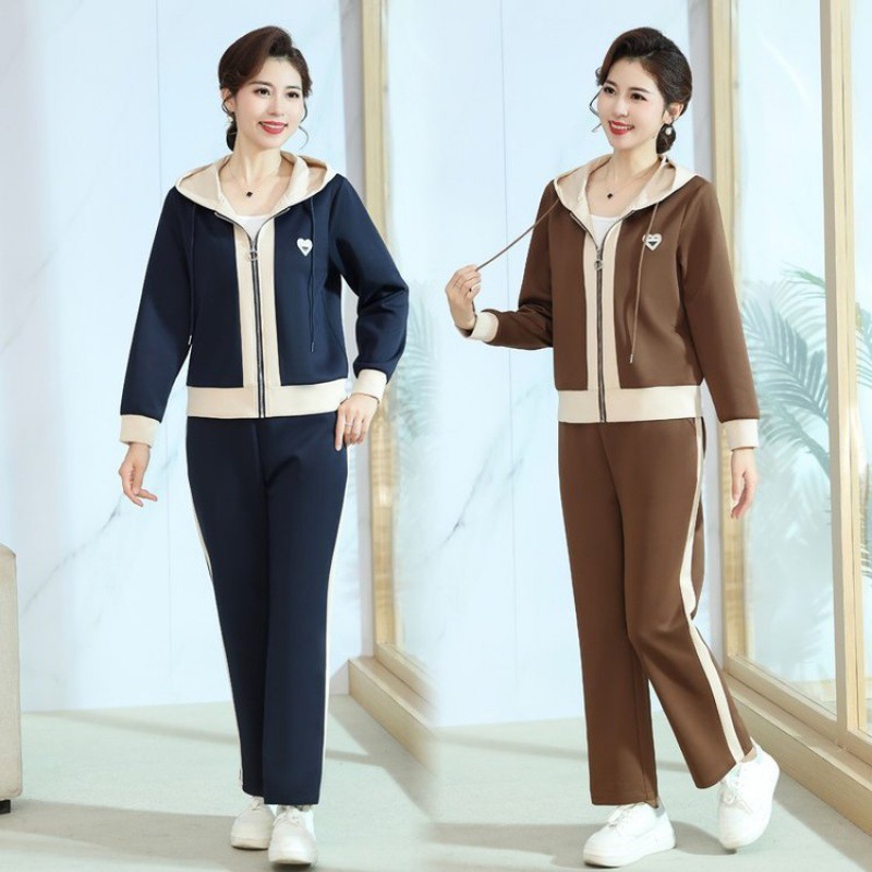 Мама спортивная одежда куртка 2024 иностранный дух весна и осень новый набор из двух частей среднего и пожилого возраста большой размер женский чехол для живота