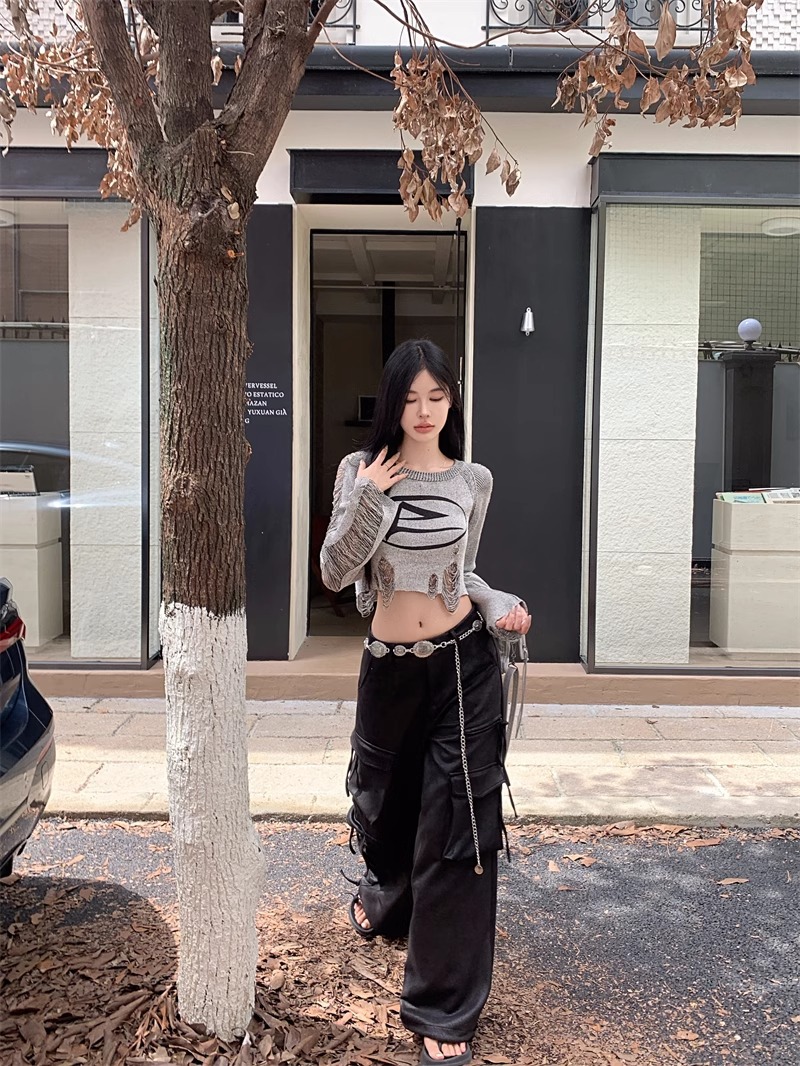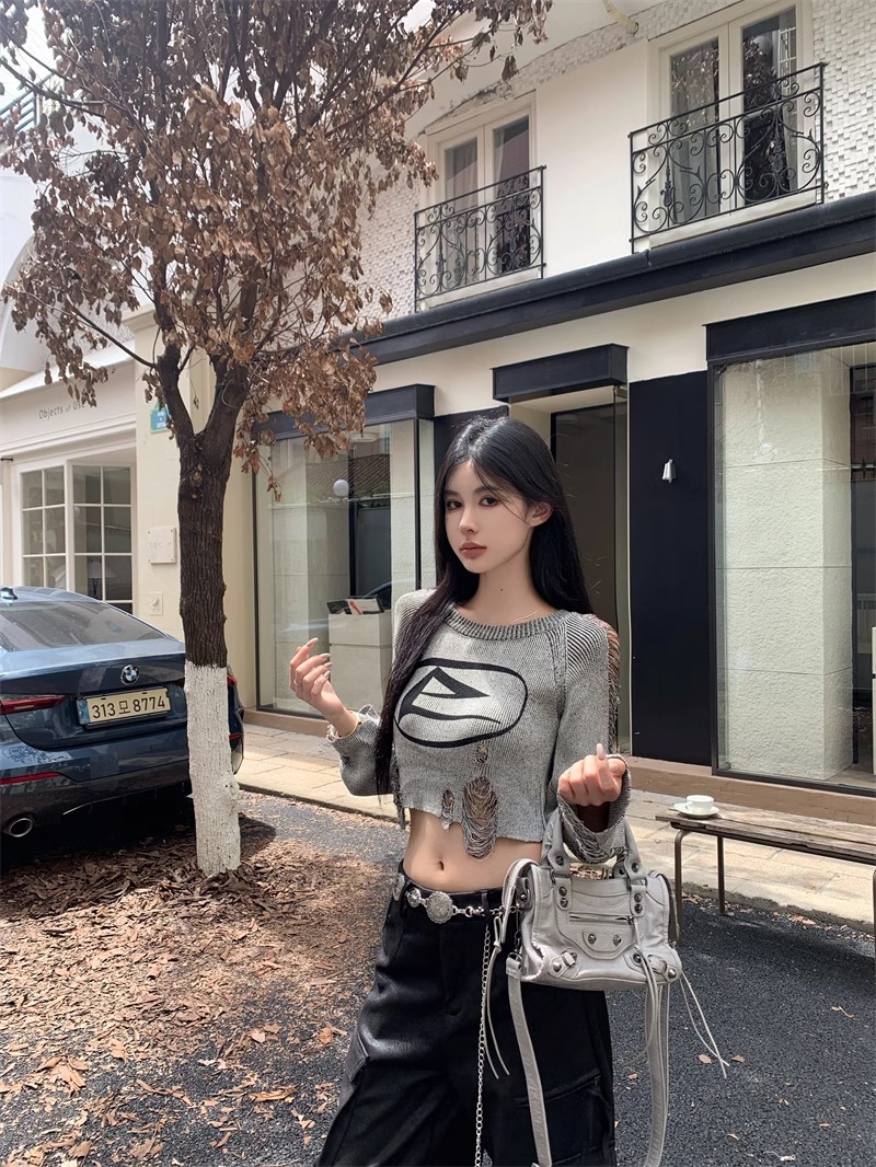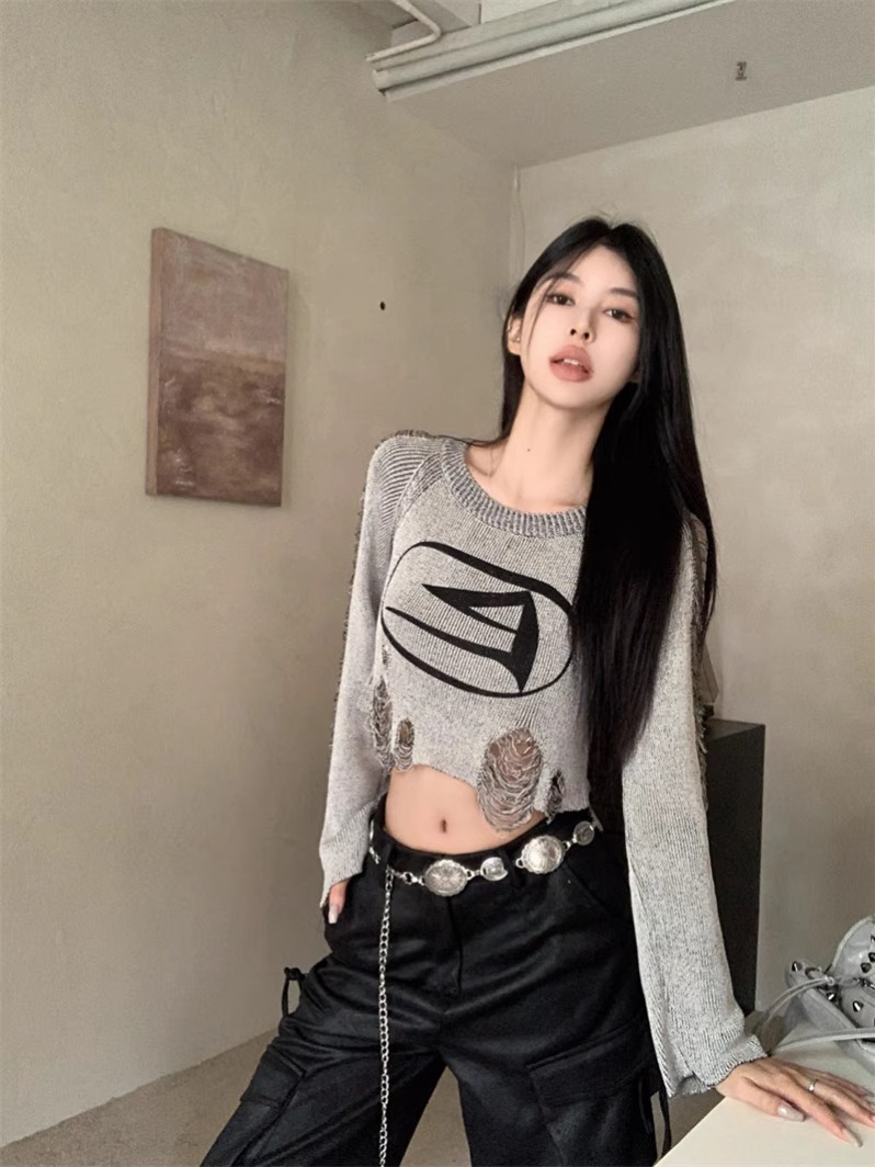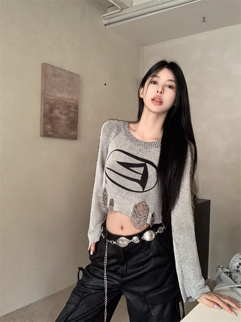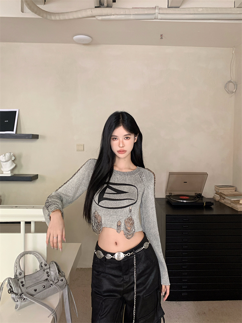 Американский ретро-дырчатый трикотаж женский осенний дизайн
