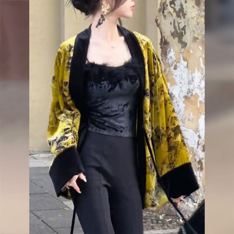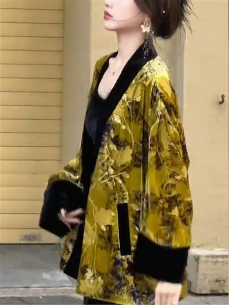 2744 Новый китайский стиль бархатный пиджак женского нового взрывного осеннего стиля