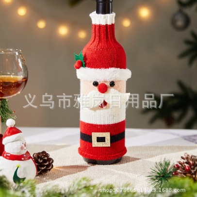 Трансграничные новые рождественские декоративные предметы трикотажные винные бутылки креативные Санта-Клаус обеденный стол украшения костюмы