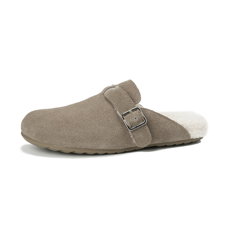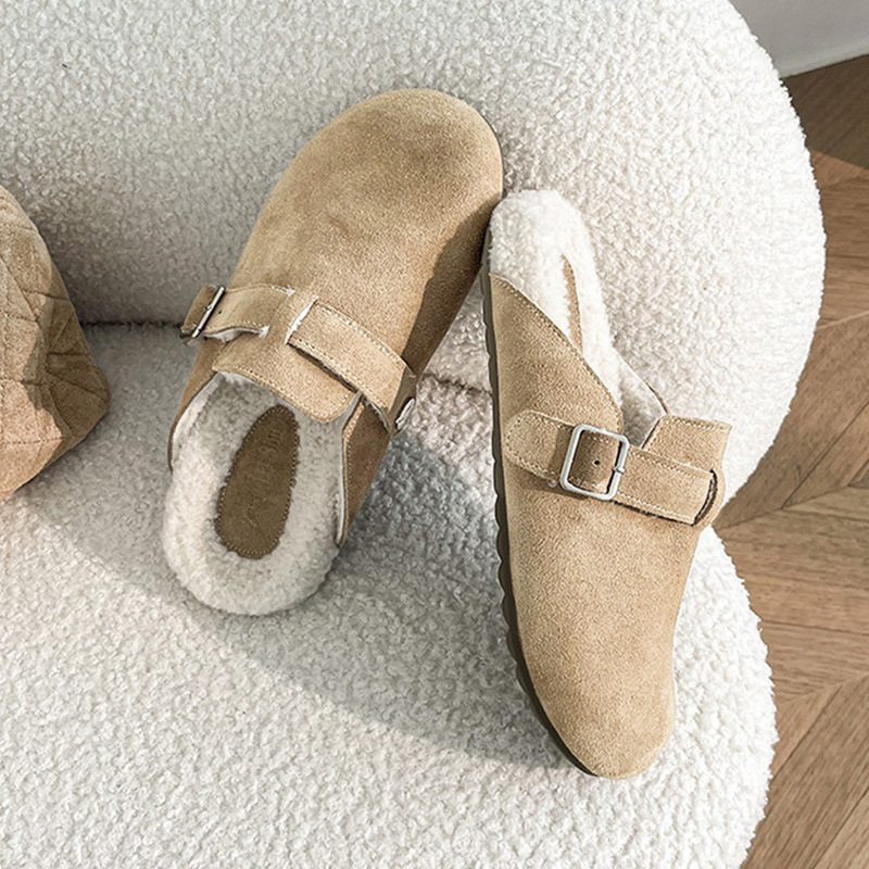 Женские полуслипоны Birkenstock из натуральной кожи для верхней одежды 2025, уродливые и милые хлопковые тапочки на флисовой подкладке, большой размер 41-43