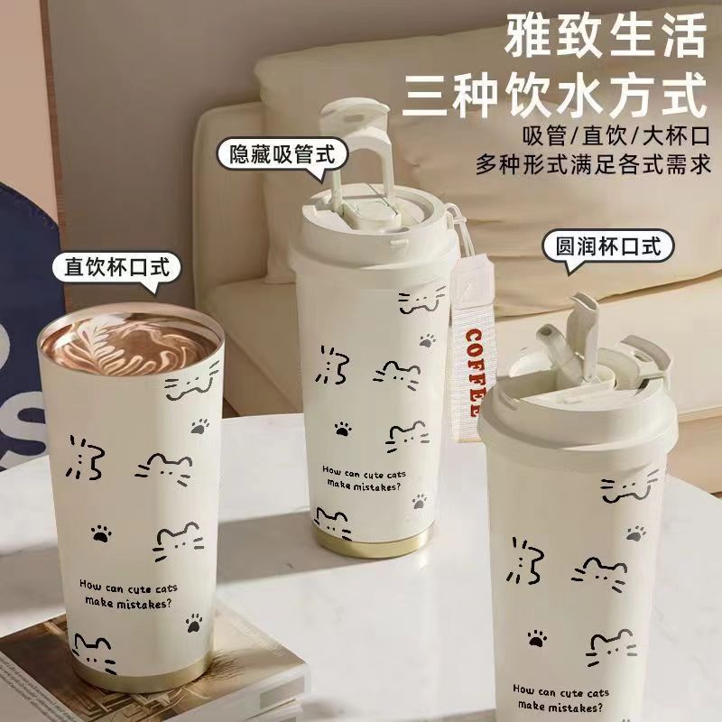 Линия Cat Water Cup Большая емкость термальная чашка соломка питьевая вода спортивная машина портативная школьная чашка для студентов мужского и женского пола