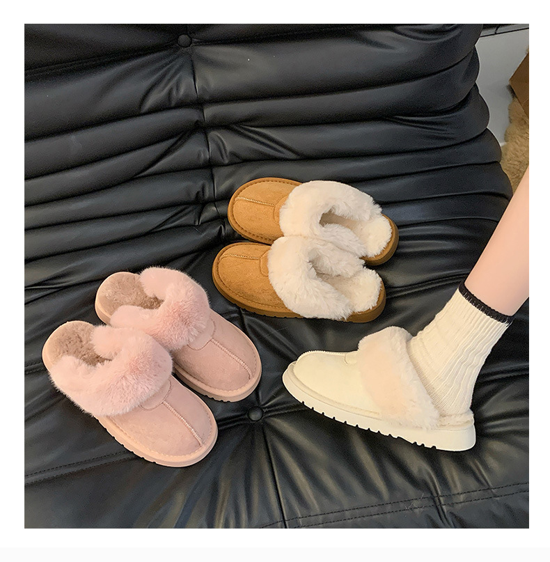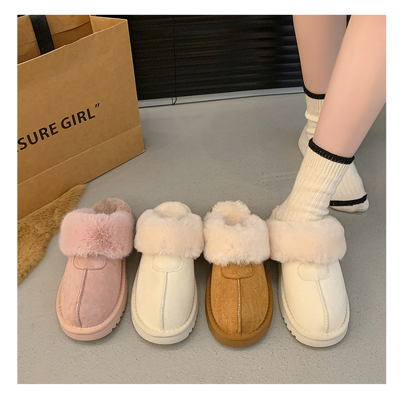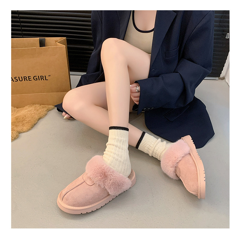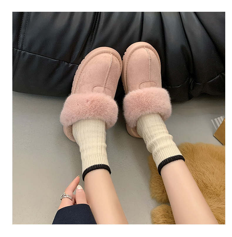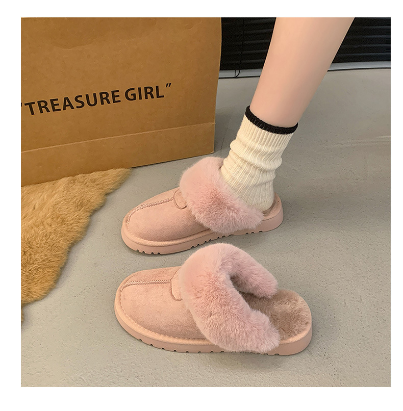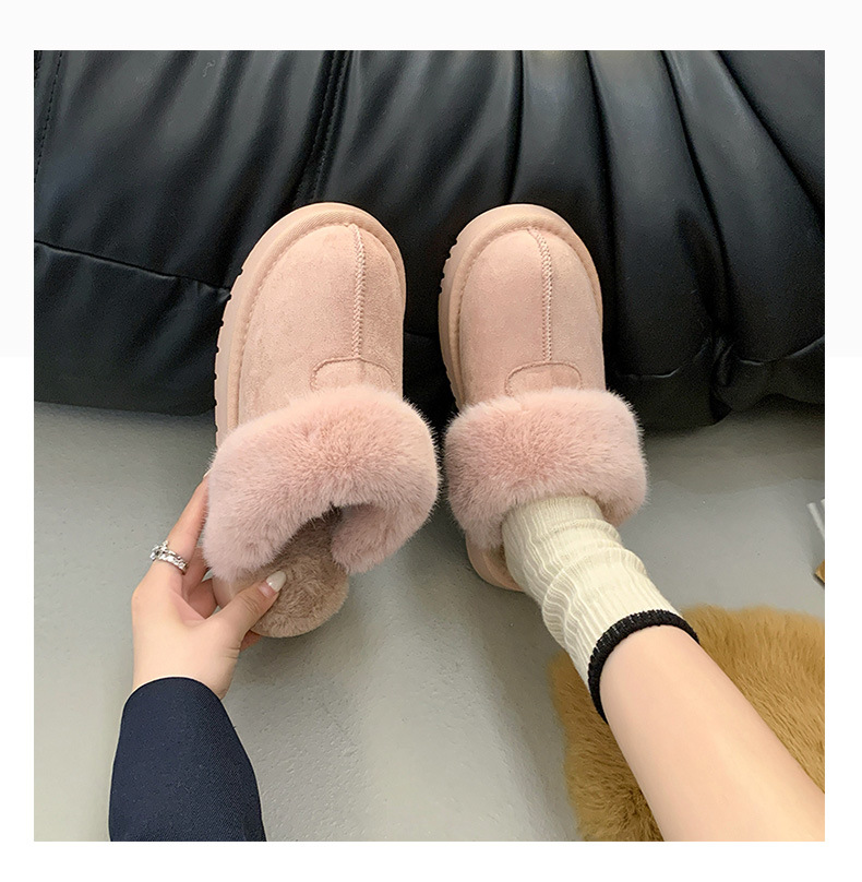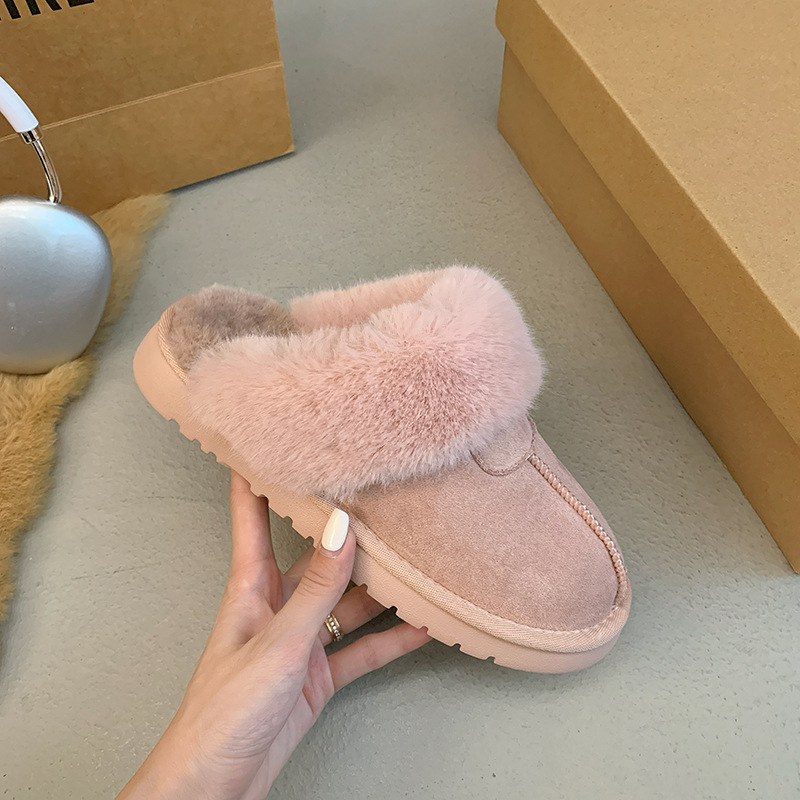 Розовые булочки шерстяные тапочки женские наружные 2024 новые снежные сапоги противоскользящие кексы