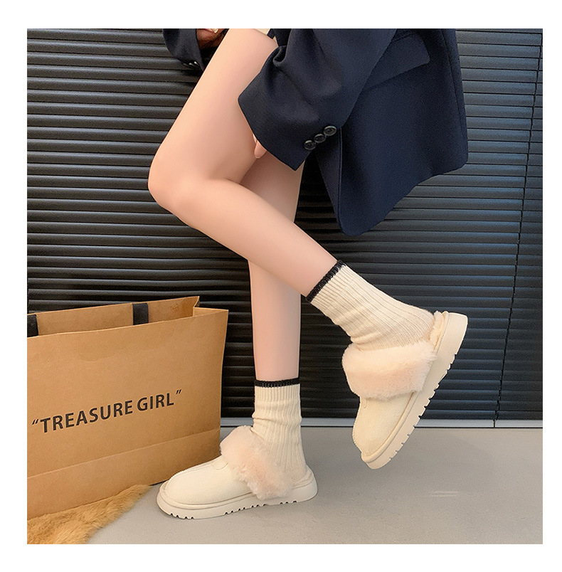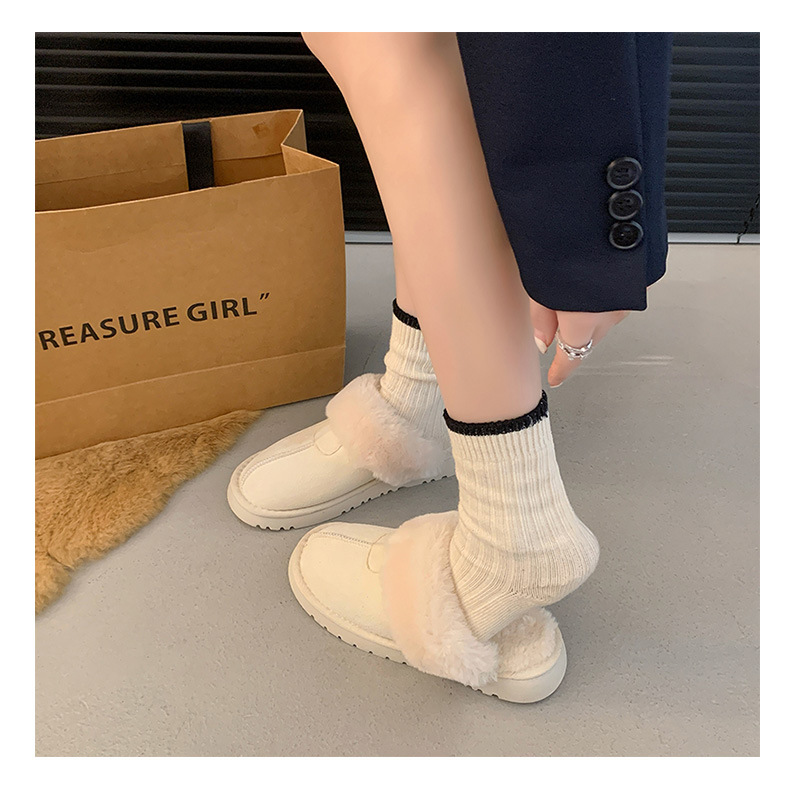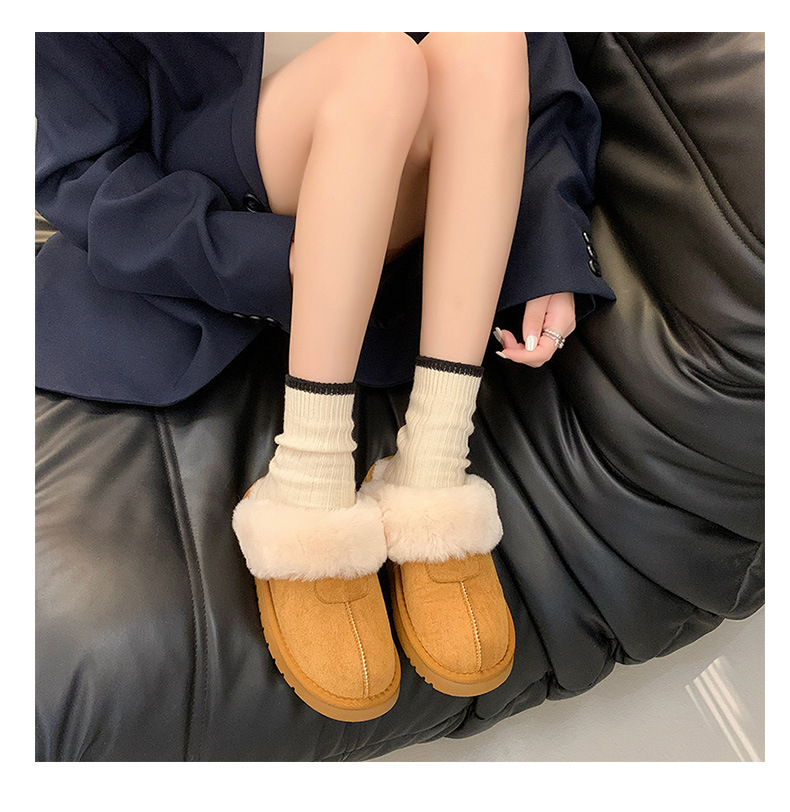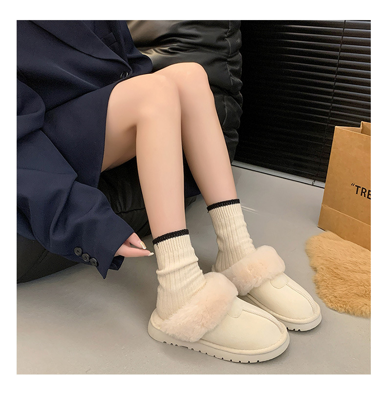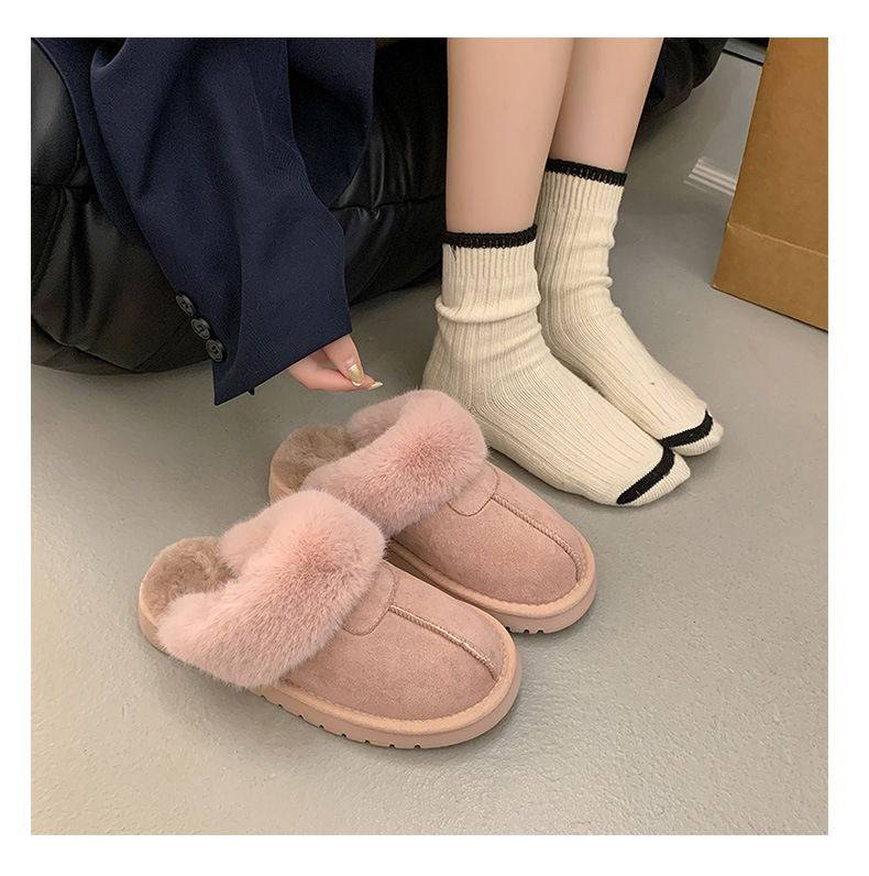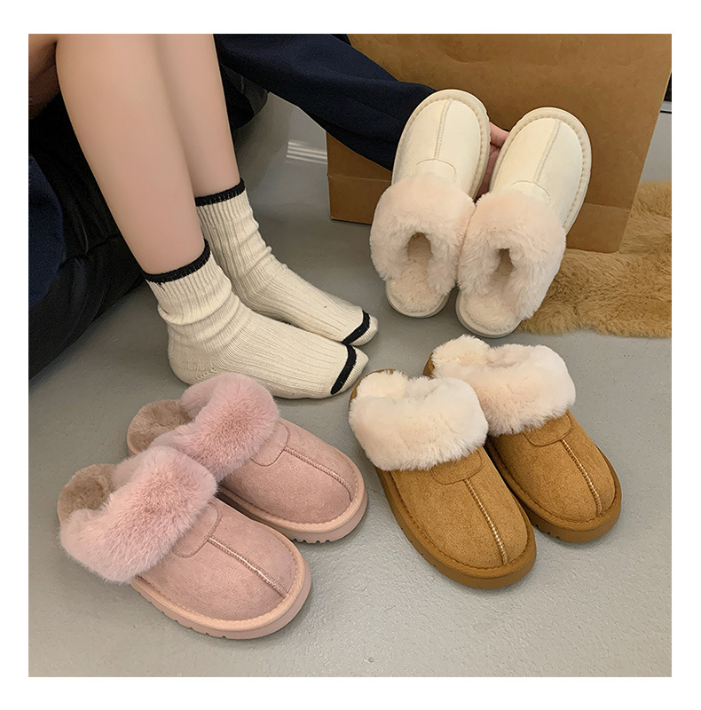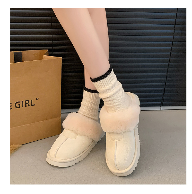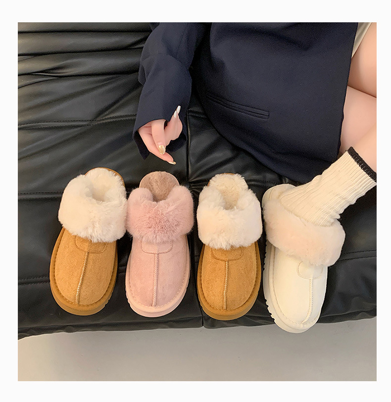 Розовые булочки шерстяные тапочки женские наружные 2024 новые снежные сапоги противоскользящие кексы