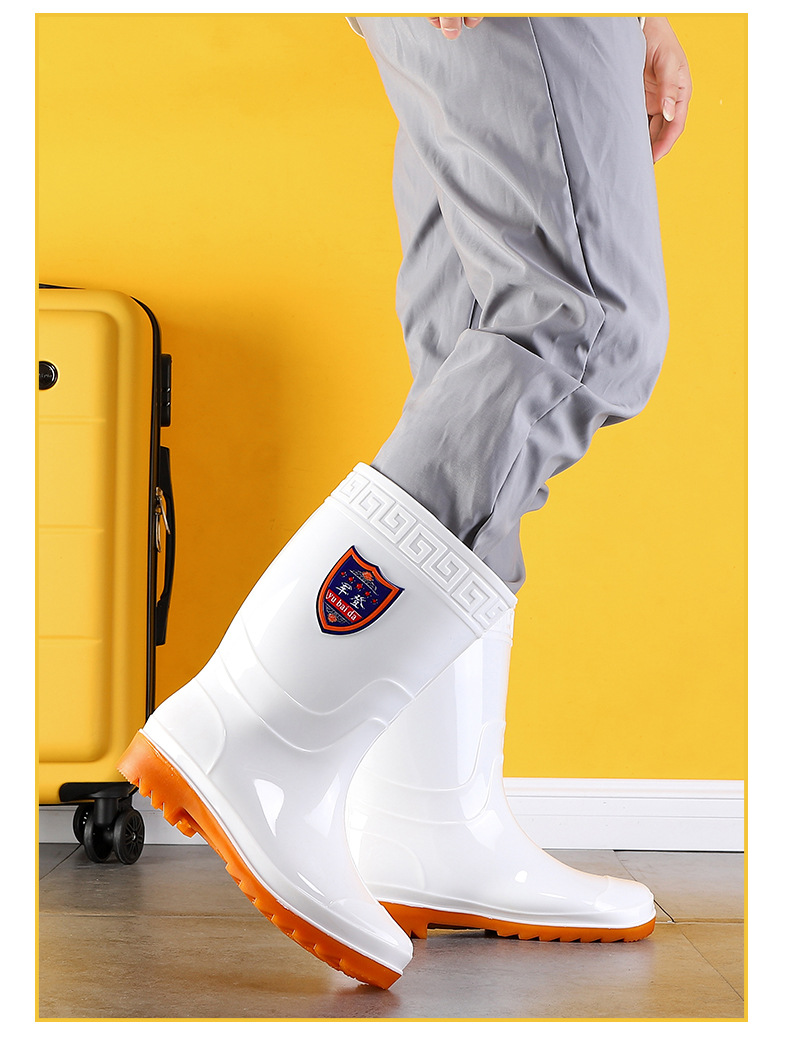 Jun Deng белая маслостойкая дождевая обувь пищевая фабрика гигиеническая обувь столовая рабочая обувь говяжья сухожилие дождевые сапоги рабочая резиновая обувь оптом