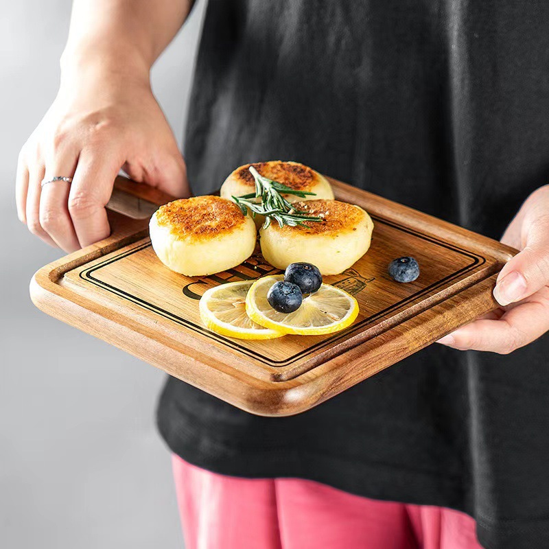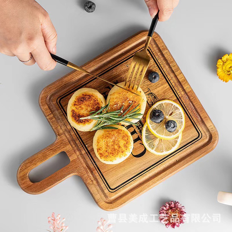 Новая акация деревянный поднос для стейк тарелка двухсторонняя разделочная доска с ручкой для домашнего торта тарелка для пикника