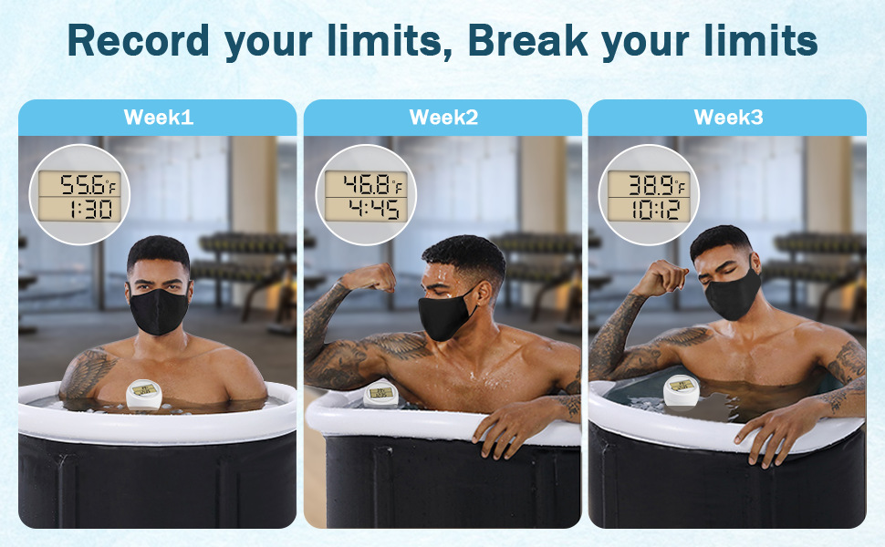 *大液晶显示屏:我们的数字冷暖温度计专为户外设计,温度过低时闪烁绿灯,温度过高时闪烁红灯。 即使在游泳池或黑暗的环境中,明亮的 LED 显示屏也能清晰地看到。 大型数字显示屏让您一目了然地看到冷水浴温度和冰浴时间。