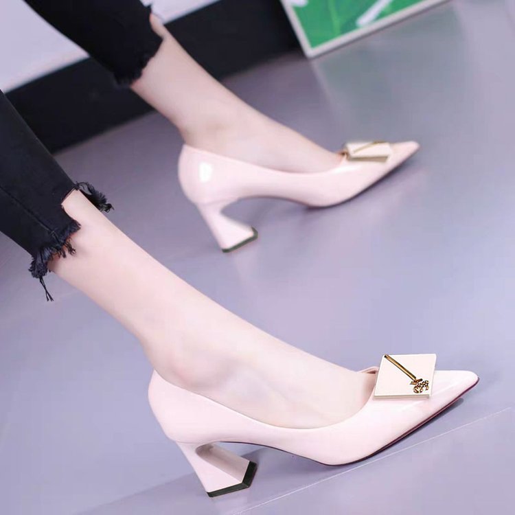 Одиночная обувь женский 2024 весна и осень новые остроконечные средние туфли на каблуках