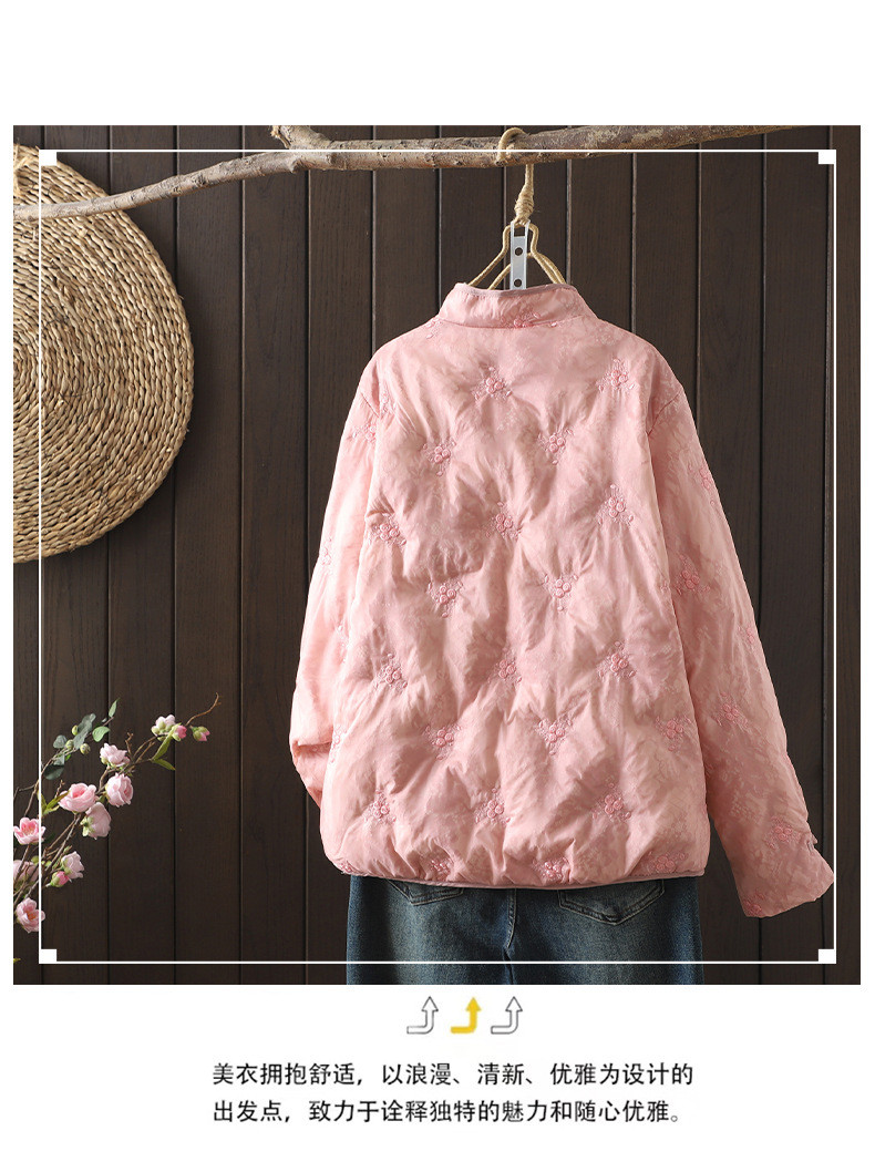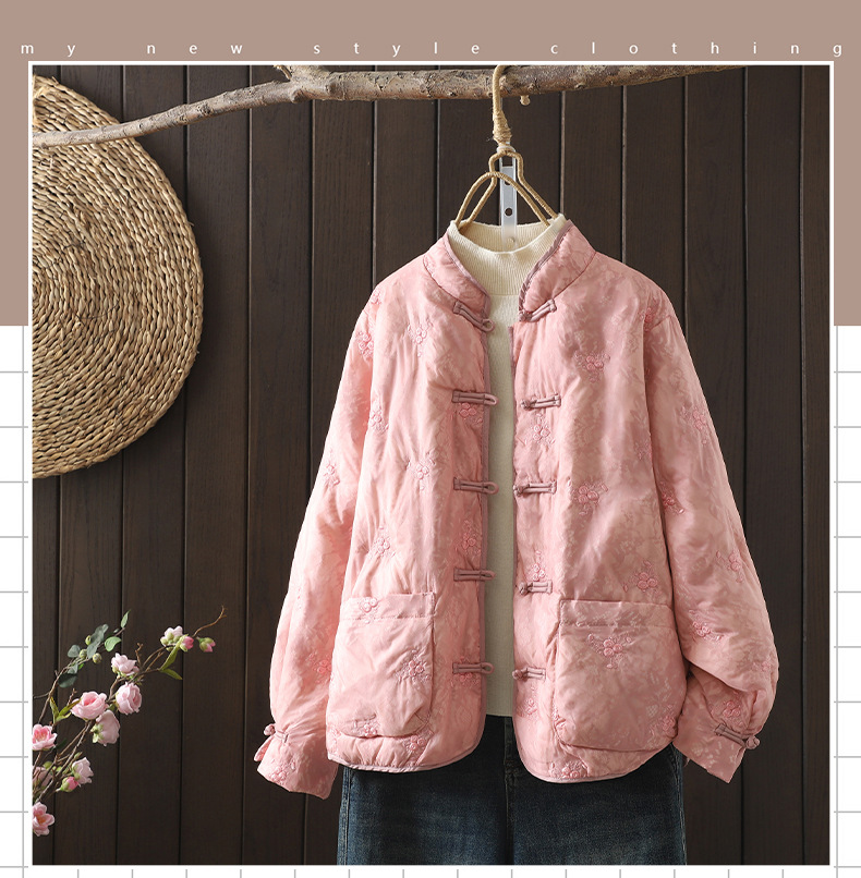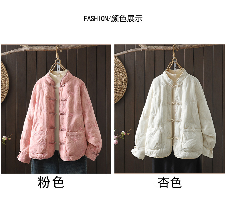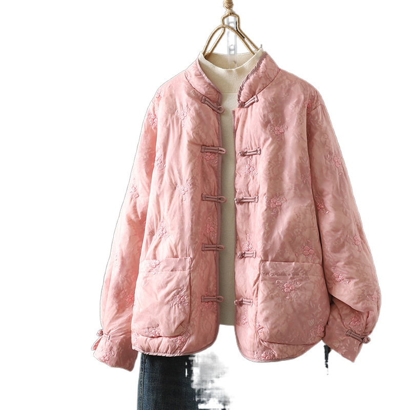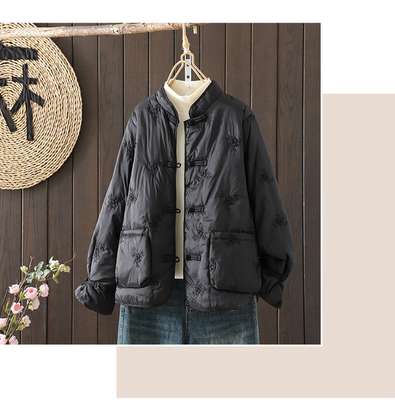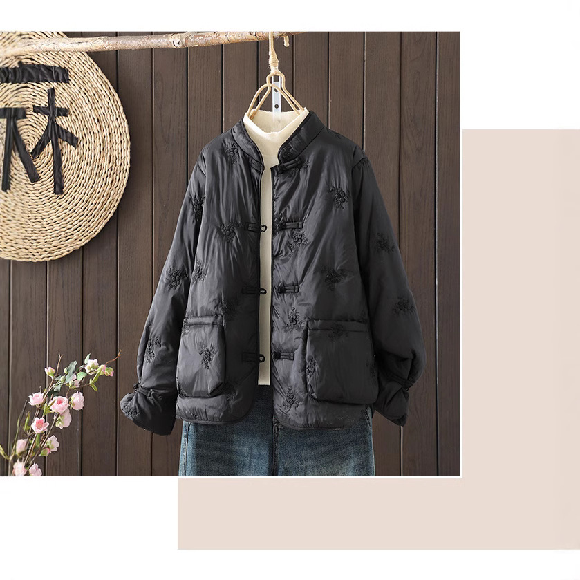2024 осень и зима ретро новый китайский стиль улучшенный свободный повседневный воротник с вышивкой пуговицы хлопчатобумажный топ куртка женский