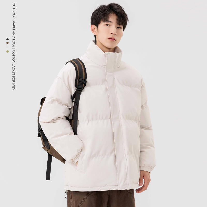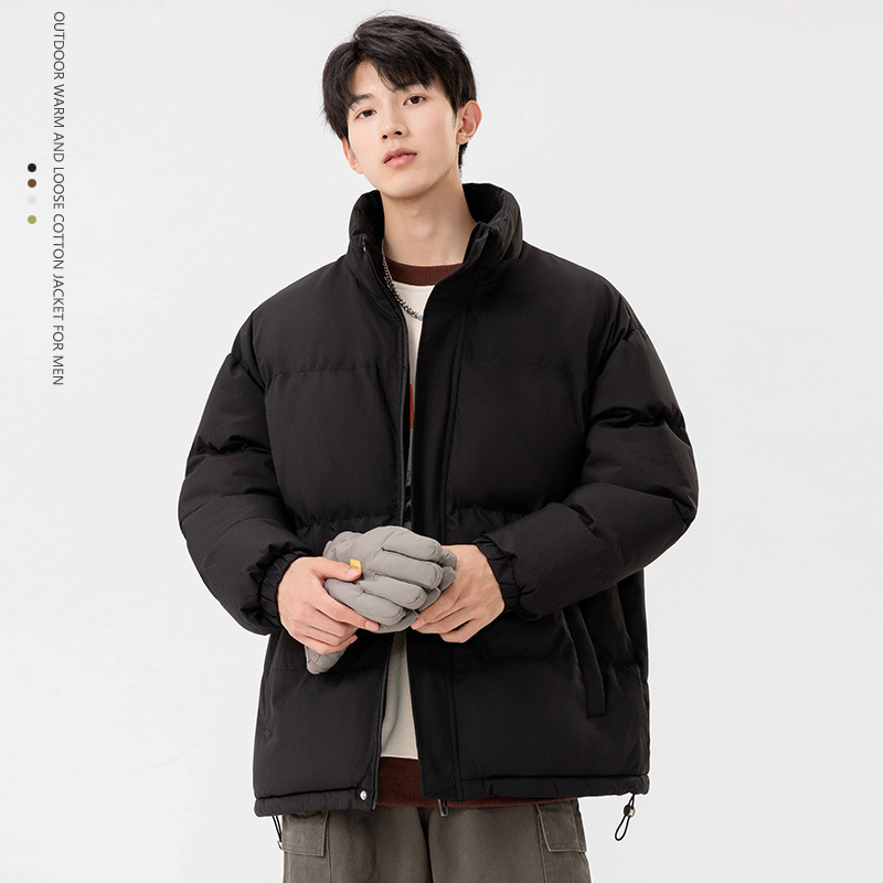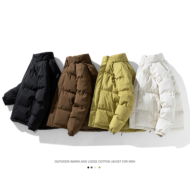 Зимняя новинка 2025: Утепленная хлопковая куртка с воротником-стойкой для пар, утолщенная хлопковая одежда, мужская уличная модная свободная теплая куртка-пуховик