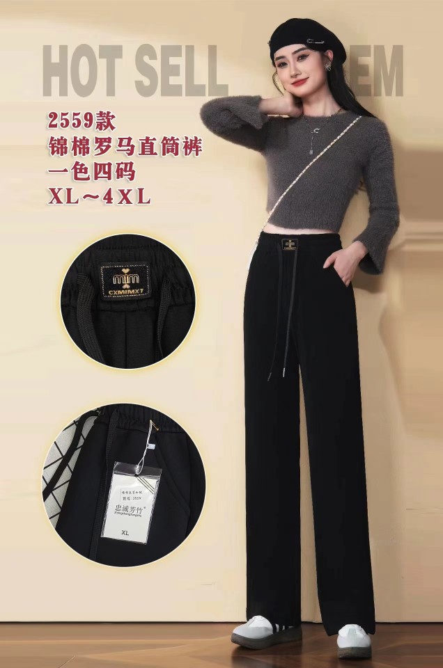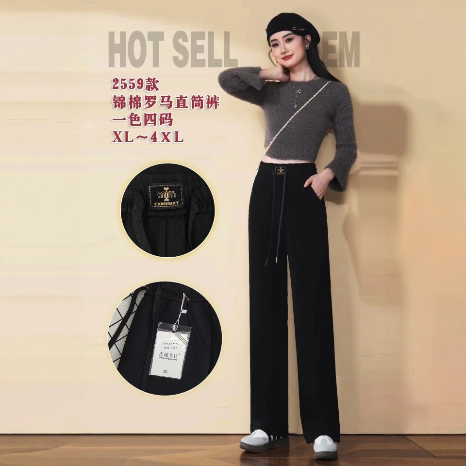 2024 Осень и зима плюс бархатные утолщенные парчовые хлопковые римские брюки с высокой талией, модные и самые последние для матчей, повседневные брюки с прямыми штанинами, брюки с большой ногой
