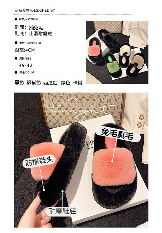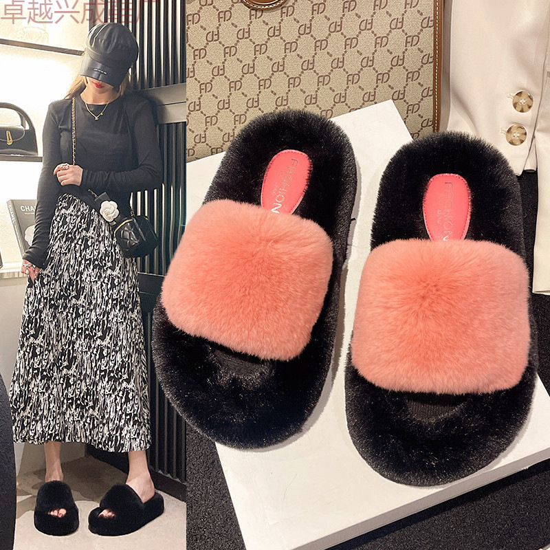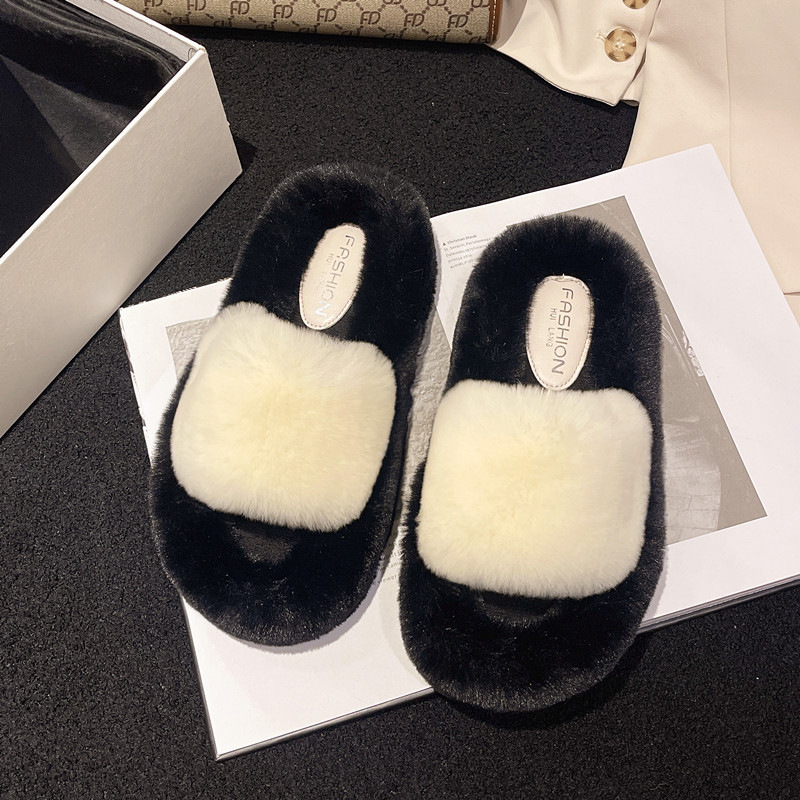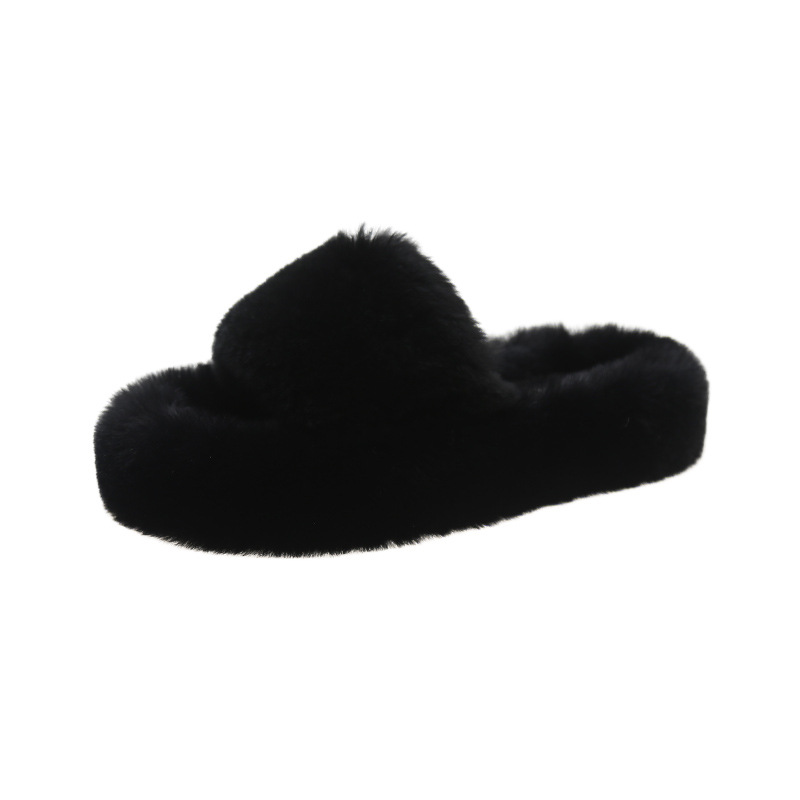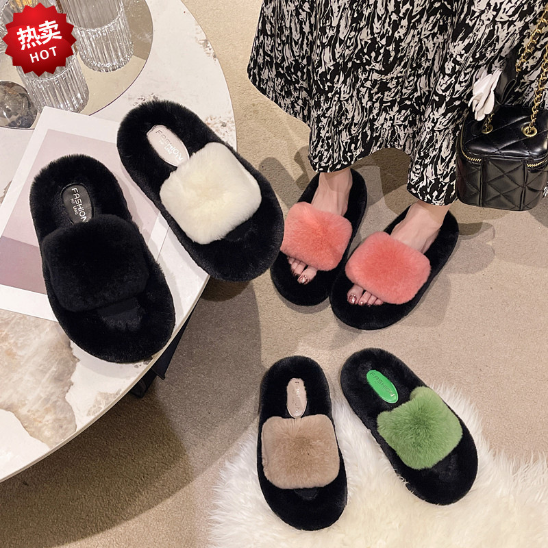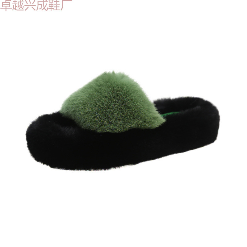 Женские тапочки из натурального меха на толстой подошве, лето и осень 2024, новый стиль, домашние хлопковые тапочки с кондиционером для дома, ленивые однолинейные хлопковые тапочки