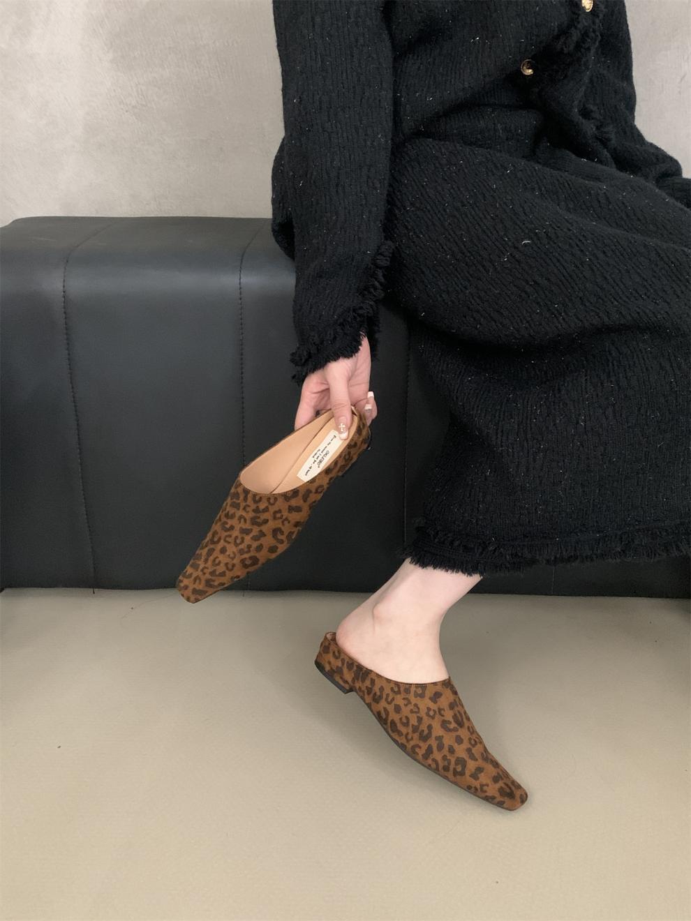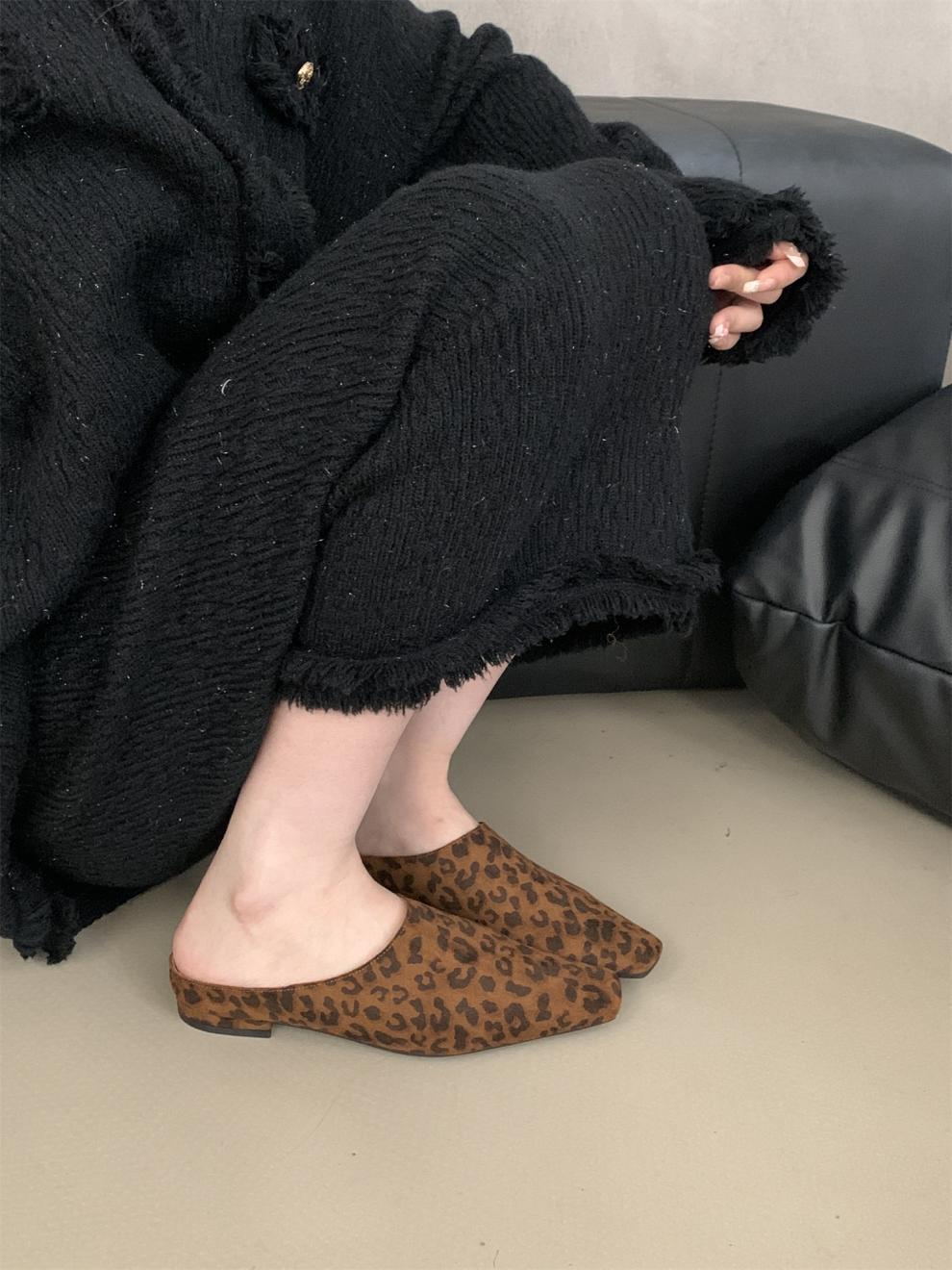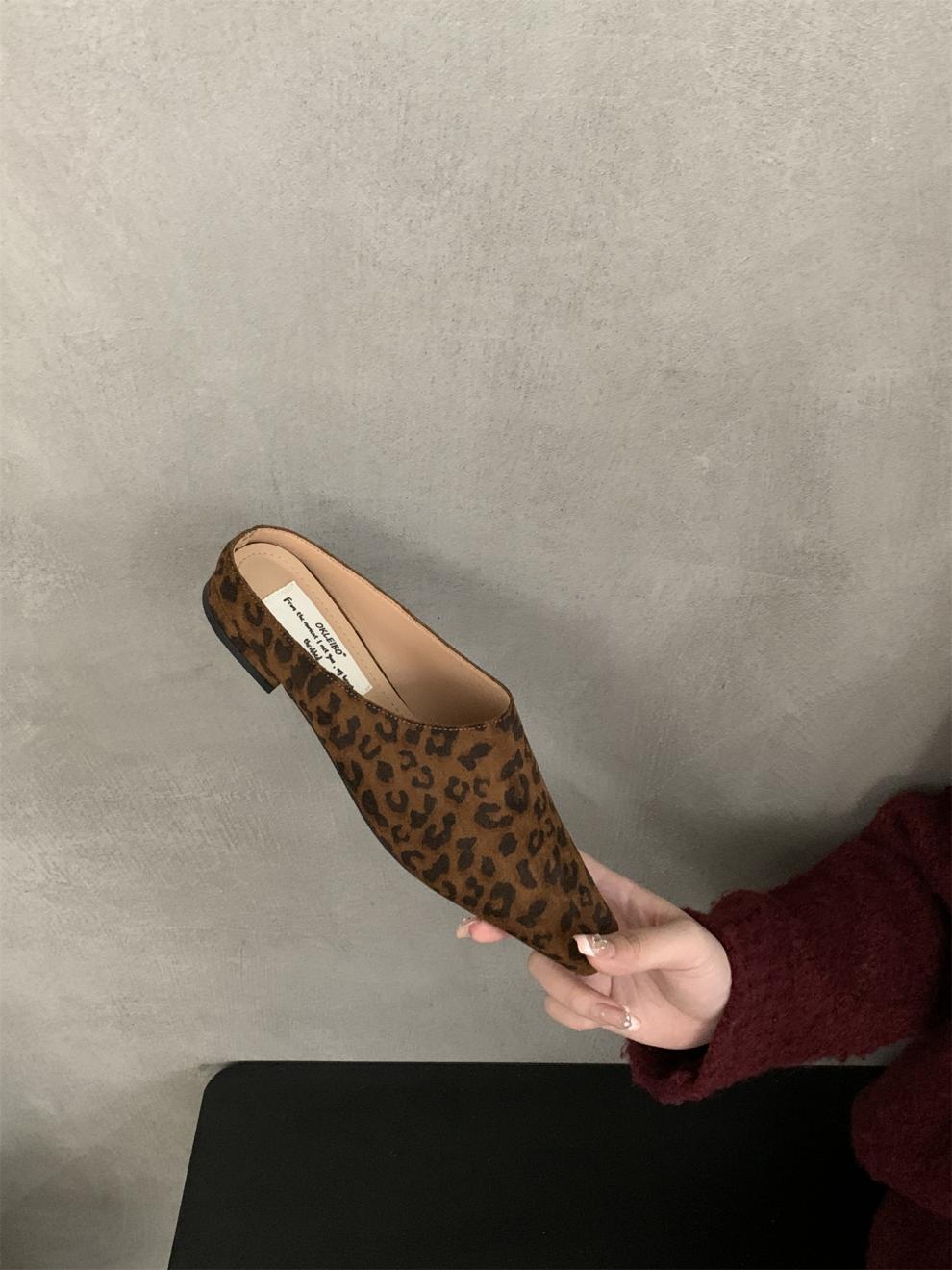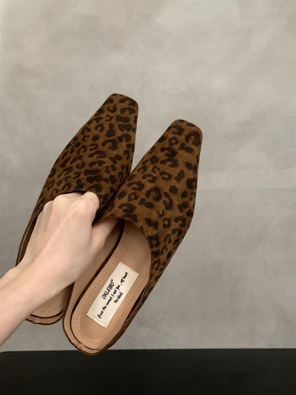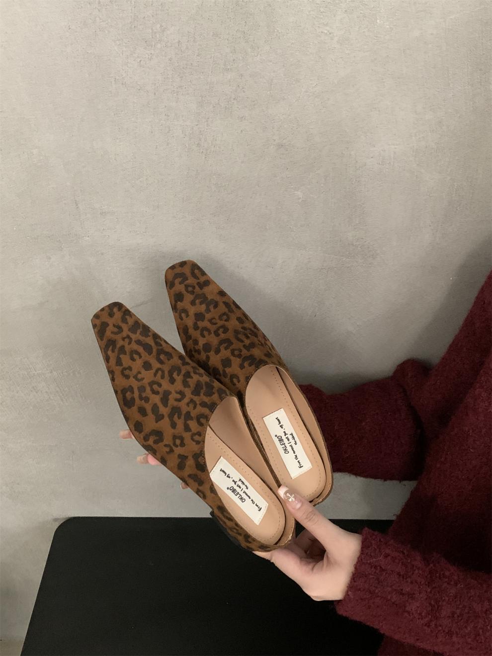 Ницца Баотоу Половина тапочки женская внешняя одежда осень и зима новый ленивый повседневный ретро леопардовый принт один педаль Мюллер тапочки