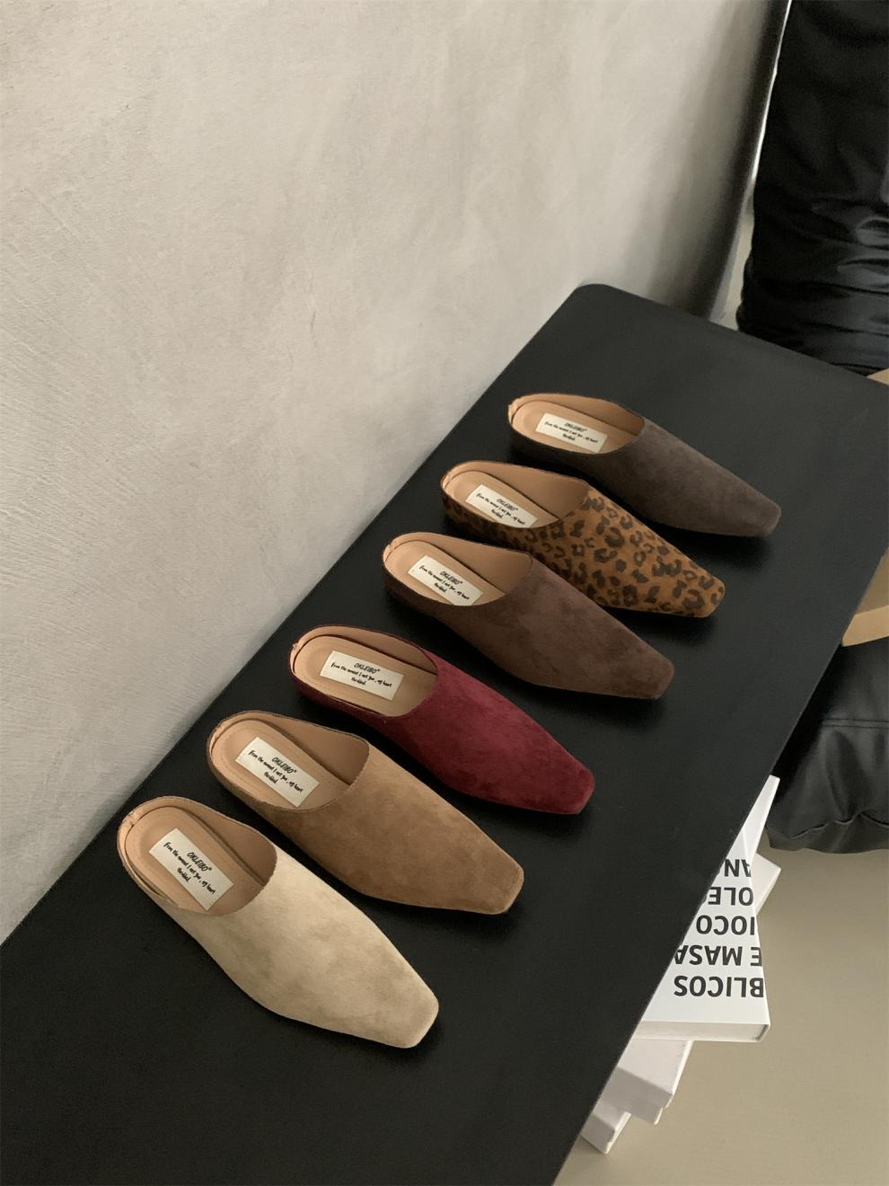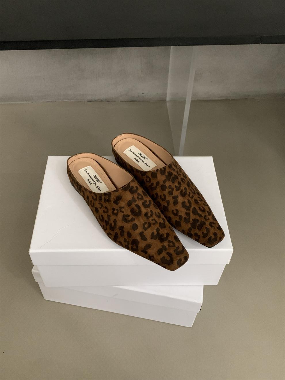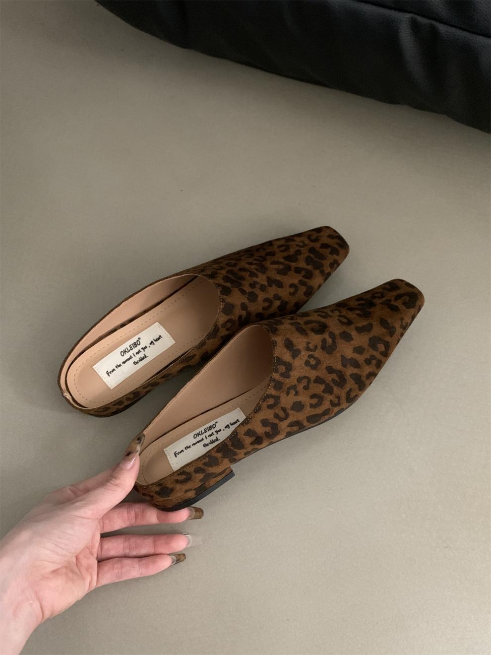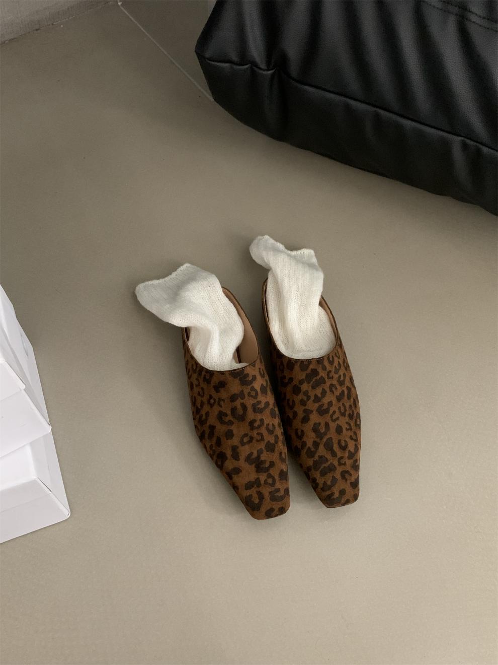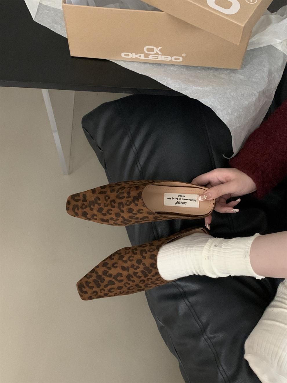 Ницца Баотоу Половина тапочки женская внешняя одежда осень и зима новый ленивый повседневный ретро леопардовый принт один педаль Мюллер тапочки