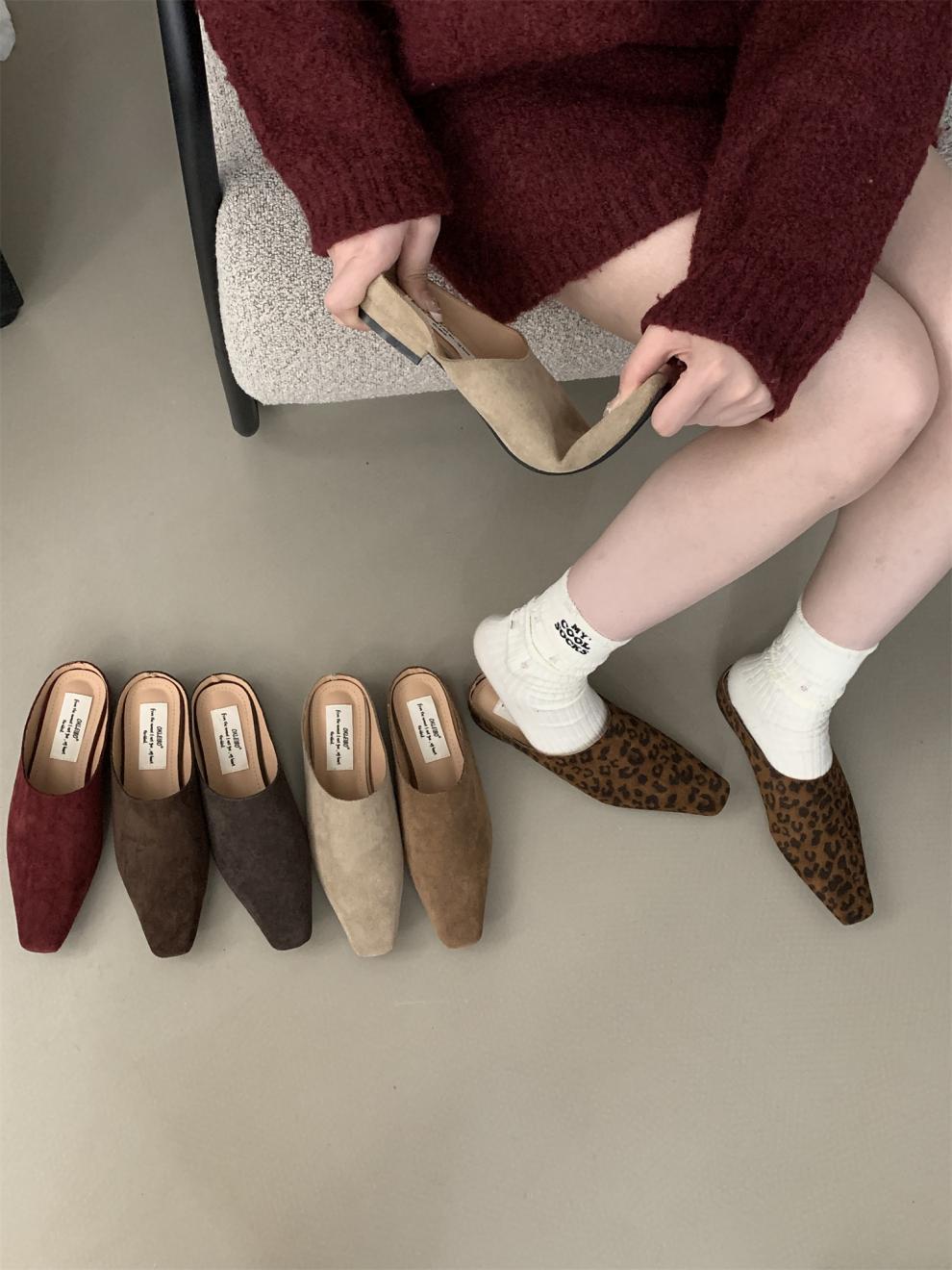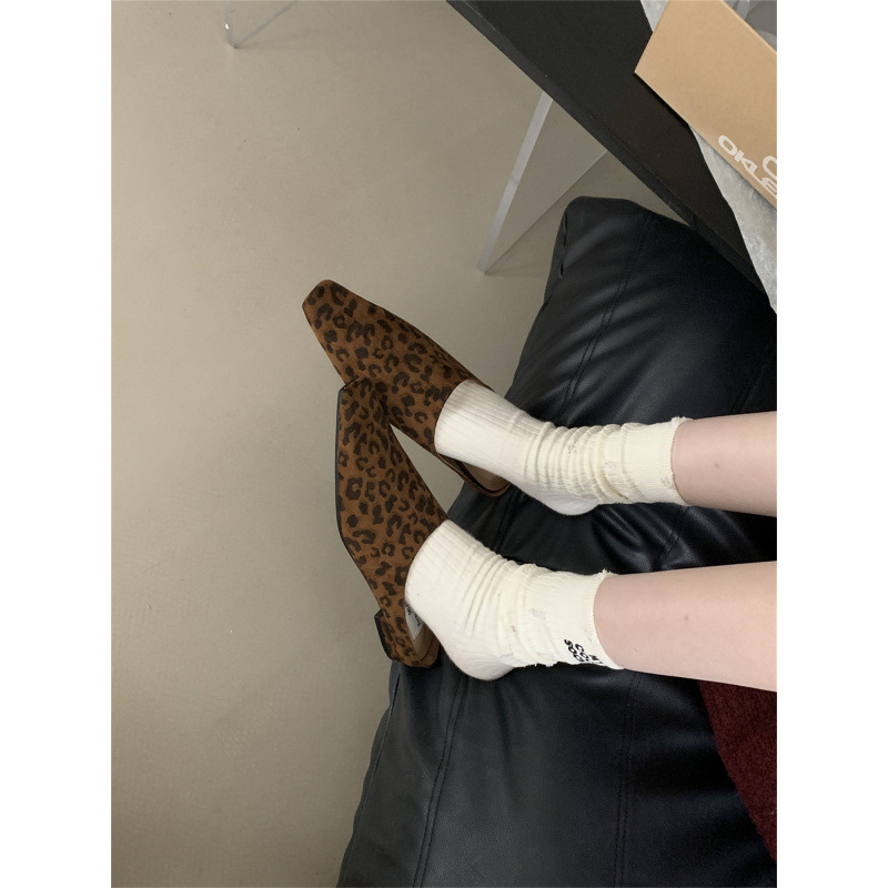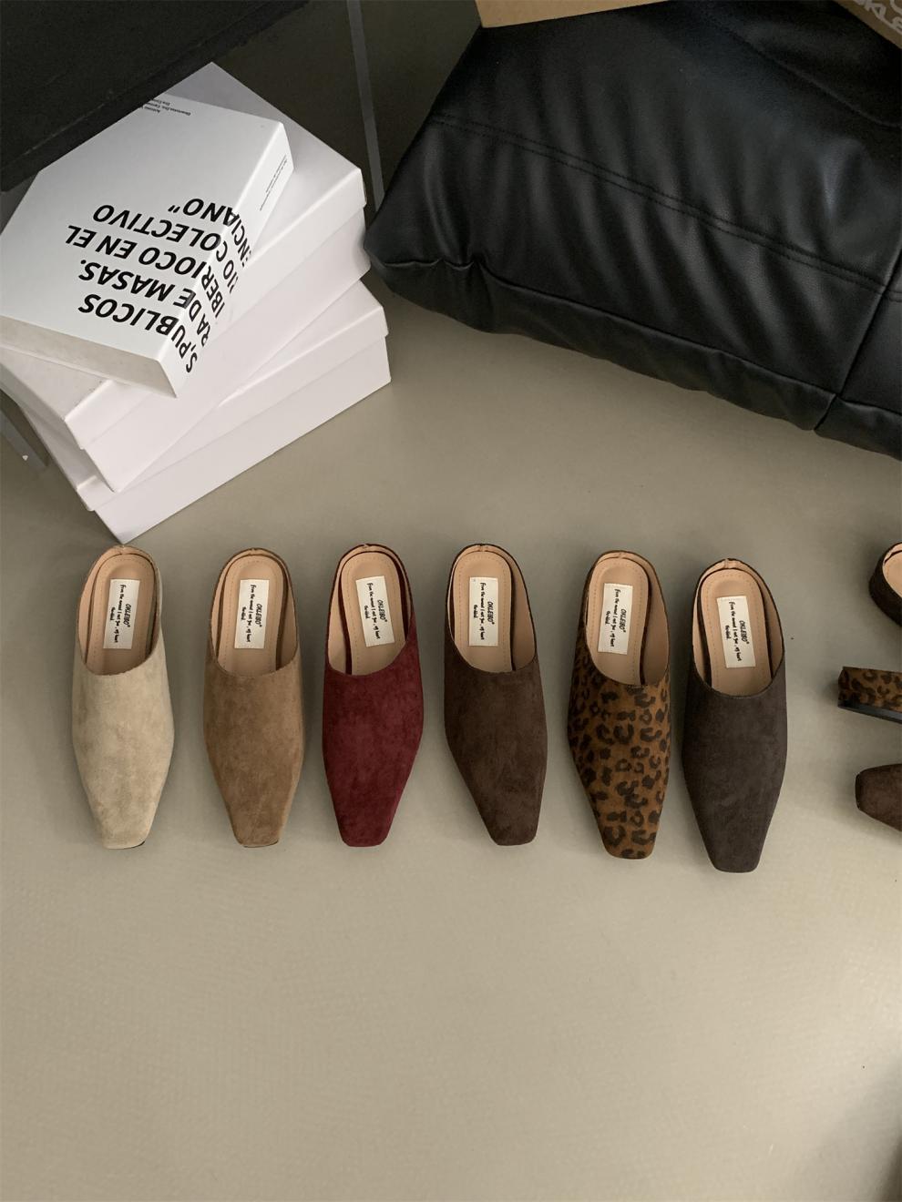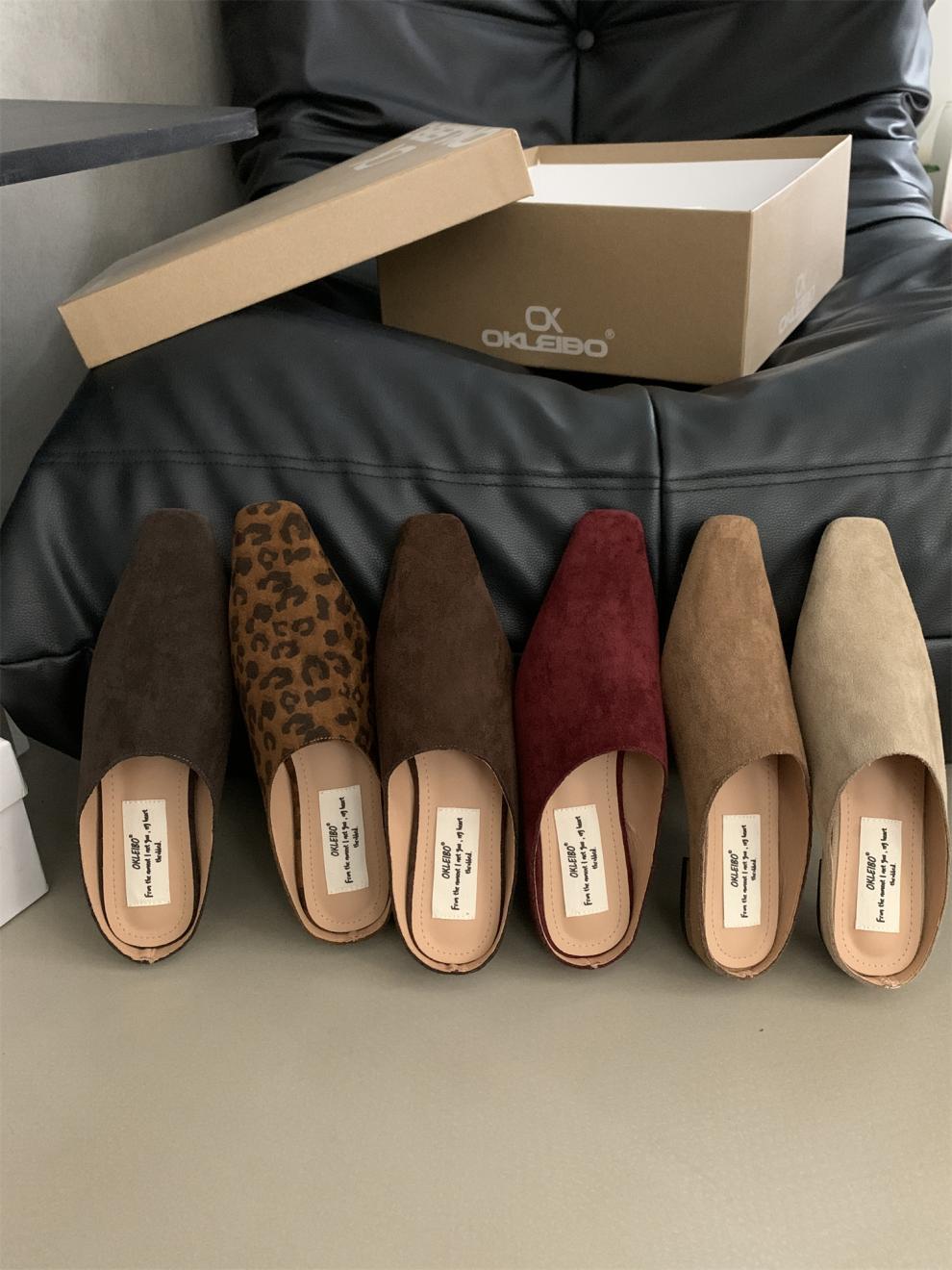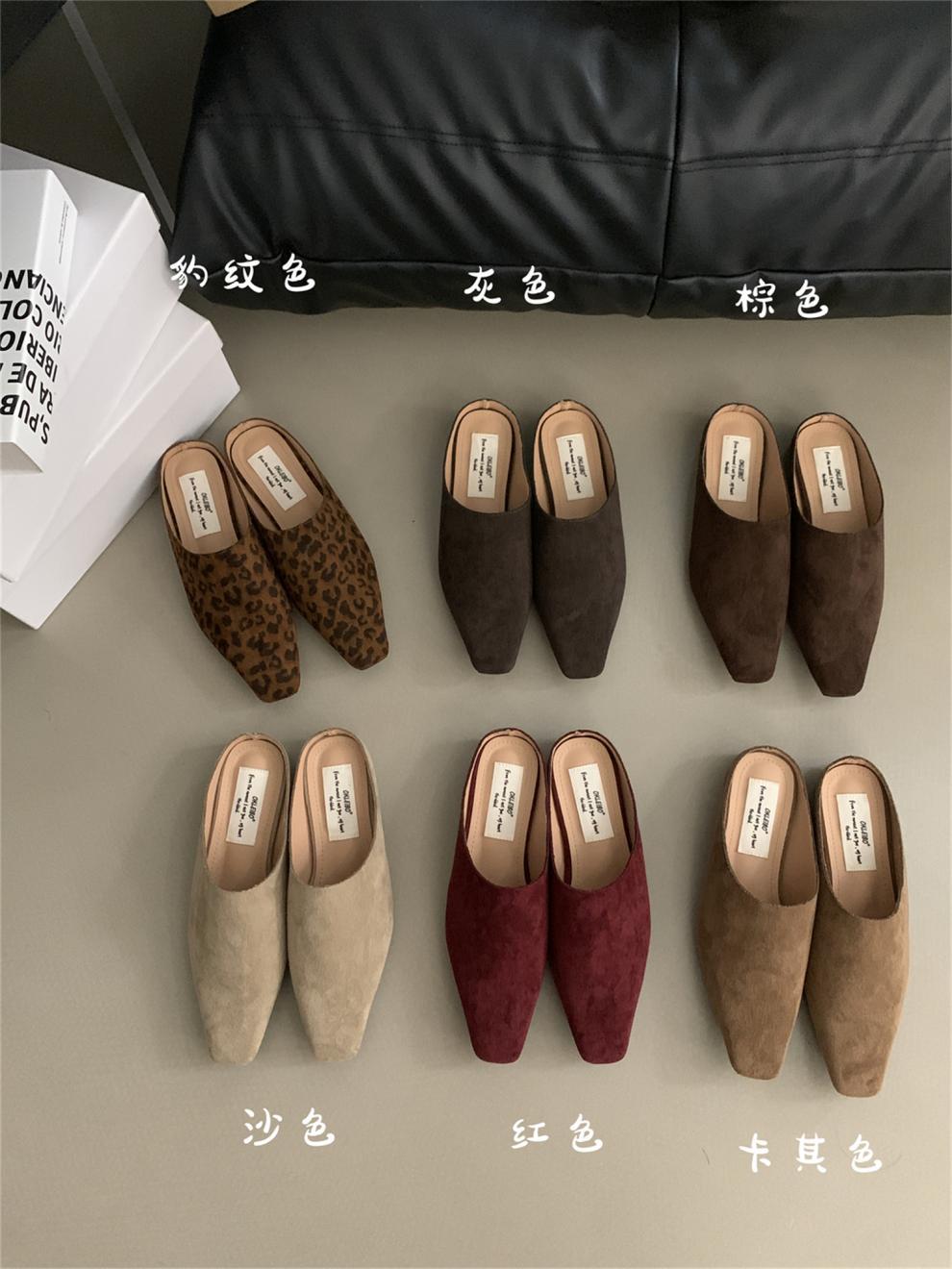 Ницца Баотоу Половина тапочки женская внешняя одежда осень и зима новый ленивый повседневный ретро леопардовый принт один педаль Мюллер тапочки