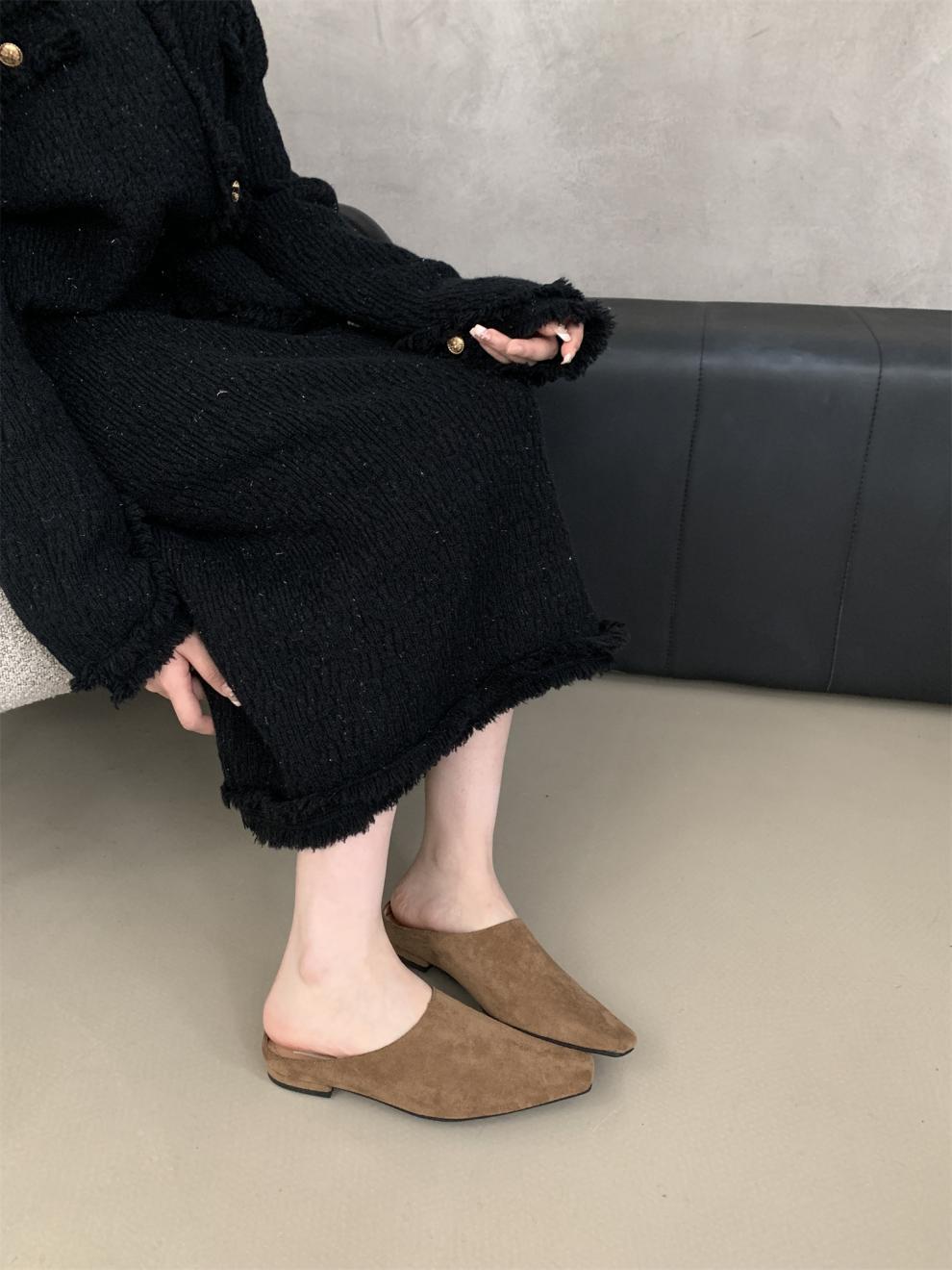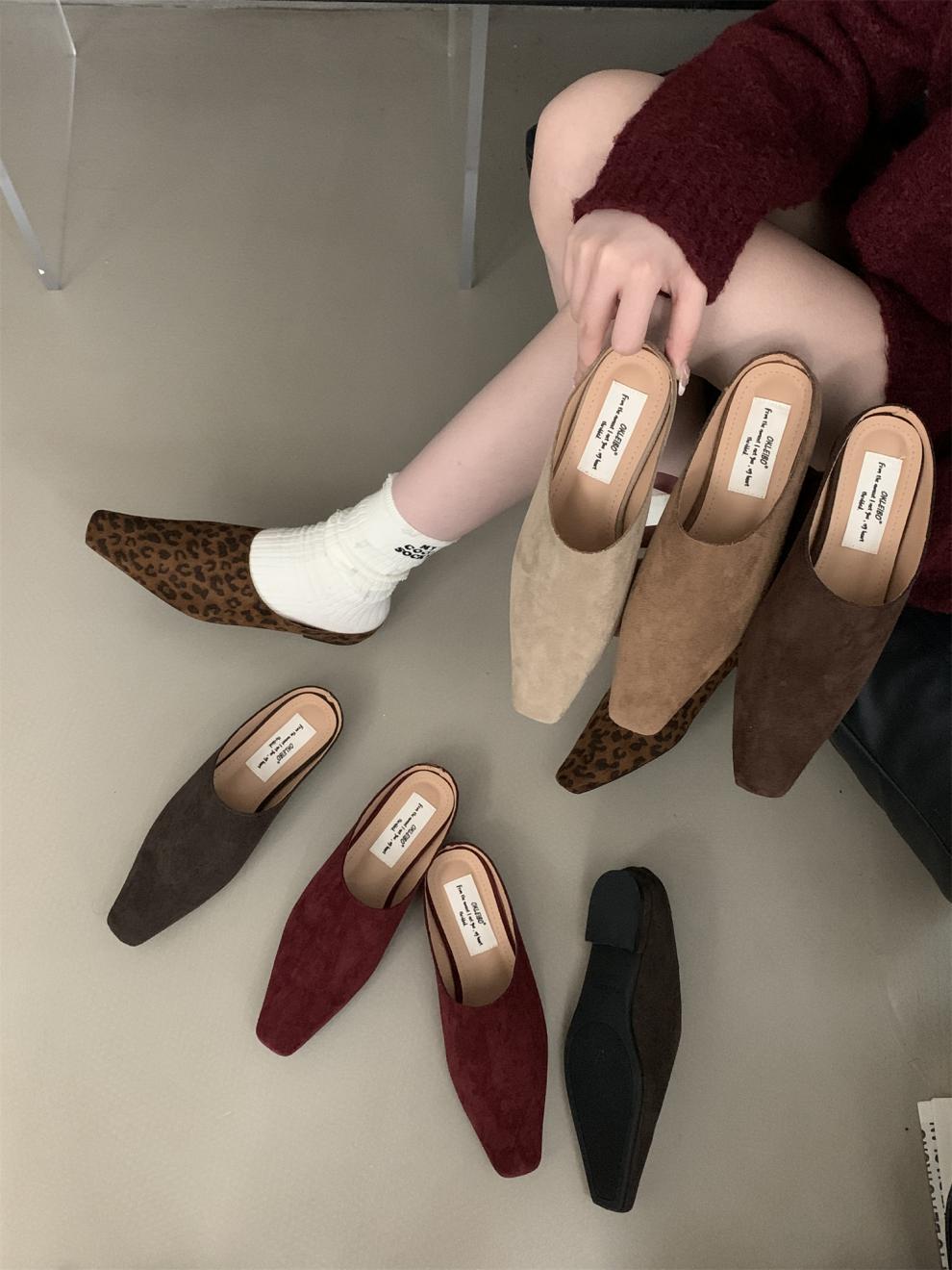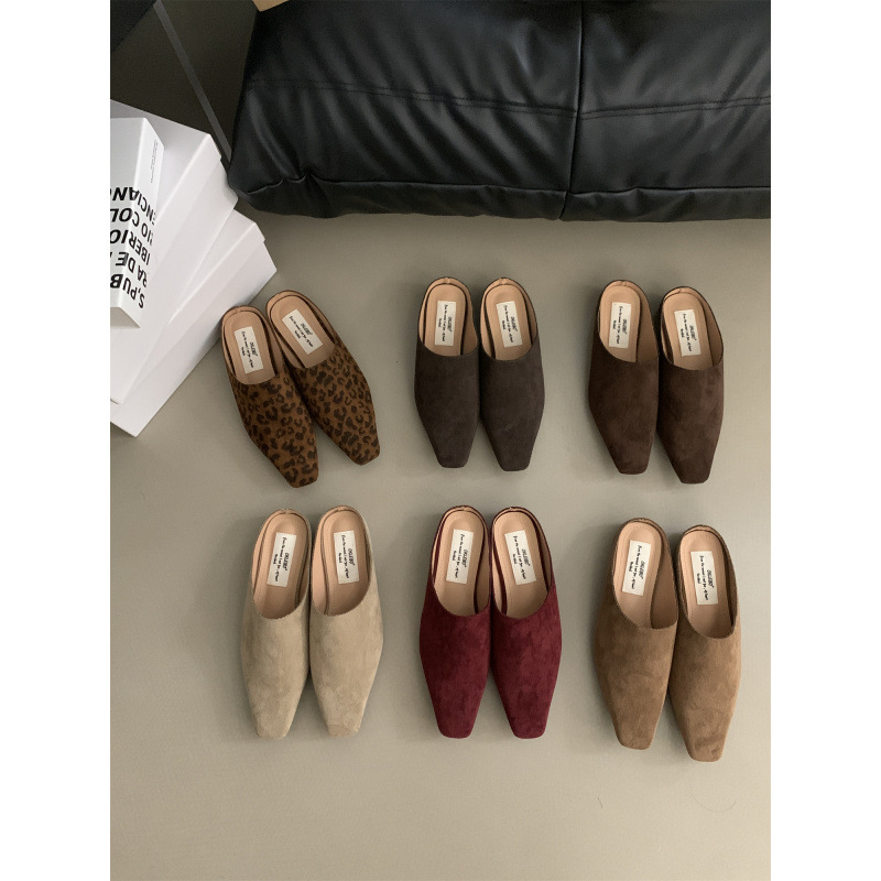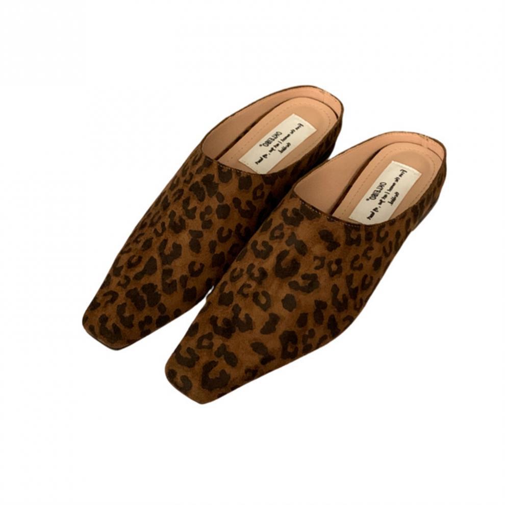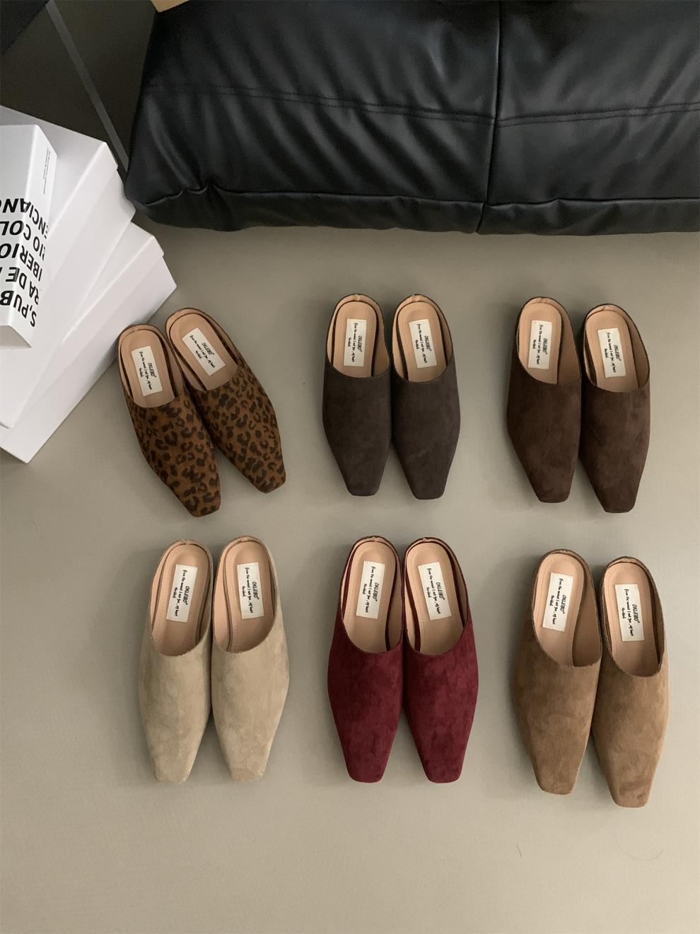 Ницца Баотоу Половина тапочки женская внешняя одежда осень и зима новый ленивый повседневный ретро леопардовый принт один педаль Мюллер тапочки