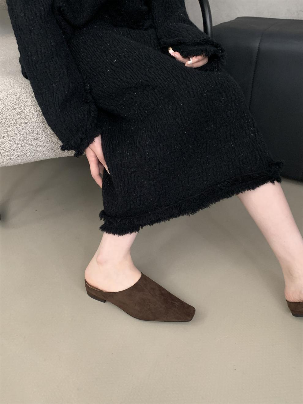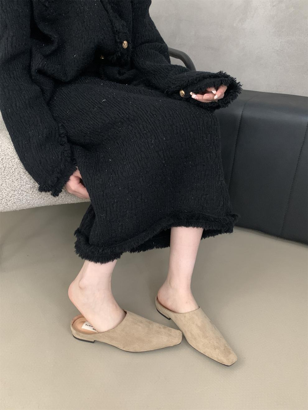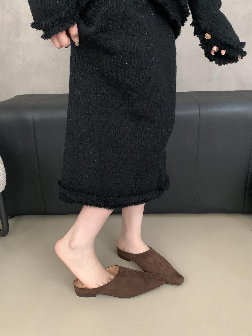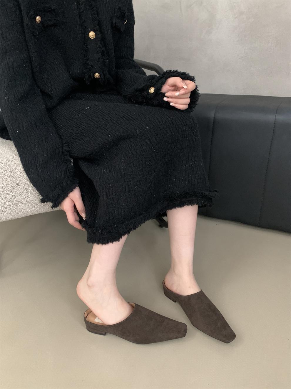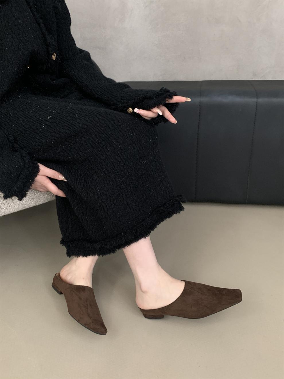 Ницца Баотоу Половина тапочки женская внешняя одежда осень и зима новый ленивый повседневный ретро леопардовый принт один педаль Мюллер тапочки