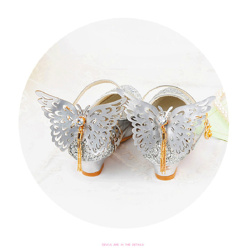 Маленькая девочка обувь принцессы иностранные новые сети красные туфли для девочек кожаные туфли 2024 весенние и осенние детские хрустальные туфли на высоком каблуке