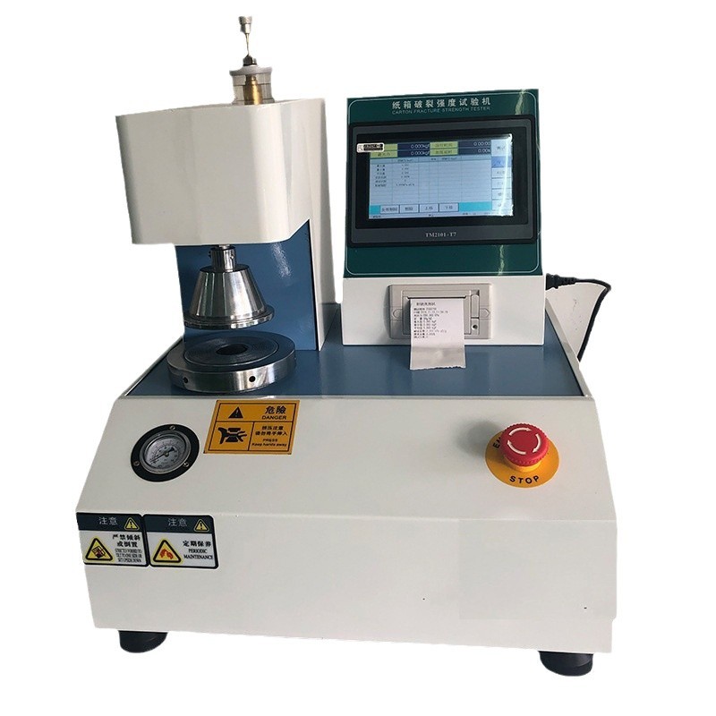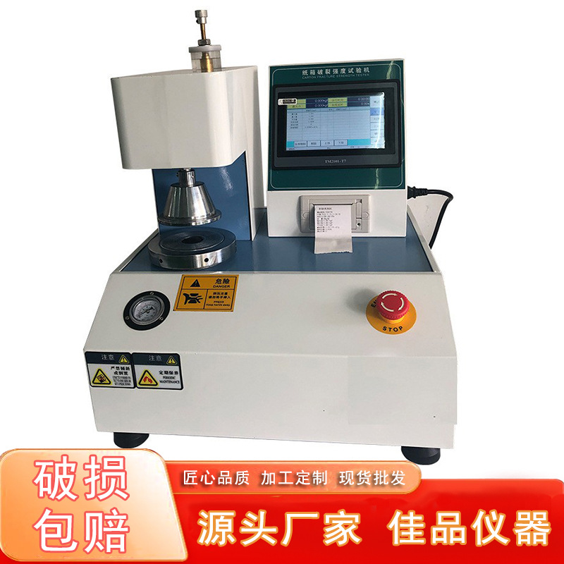 全自动耐破度仪是测试纸箱纸板的破裂强度值,采用数字显示压力,在试料破裂时,自动保留最大破裂强度值,同时可趋势打印检测结果。破裂强度试验机的指示方式为数位式,容量为0-100kg/cm2。破裂强度试验机广泛的适用于包装材料,包括一般纸张、瓦楞纸、卫生纸、包装、 纸等等, 及皮革、布类、包装薄膜之上, 可有效的对产品质量进行监测。