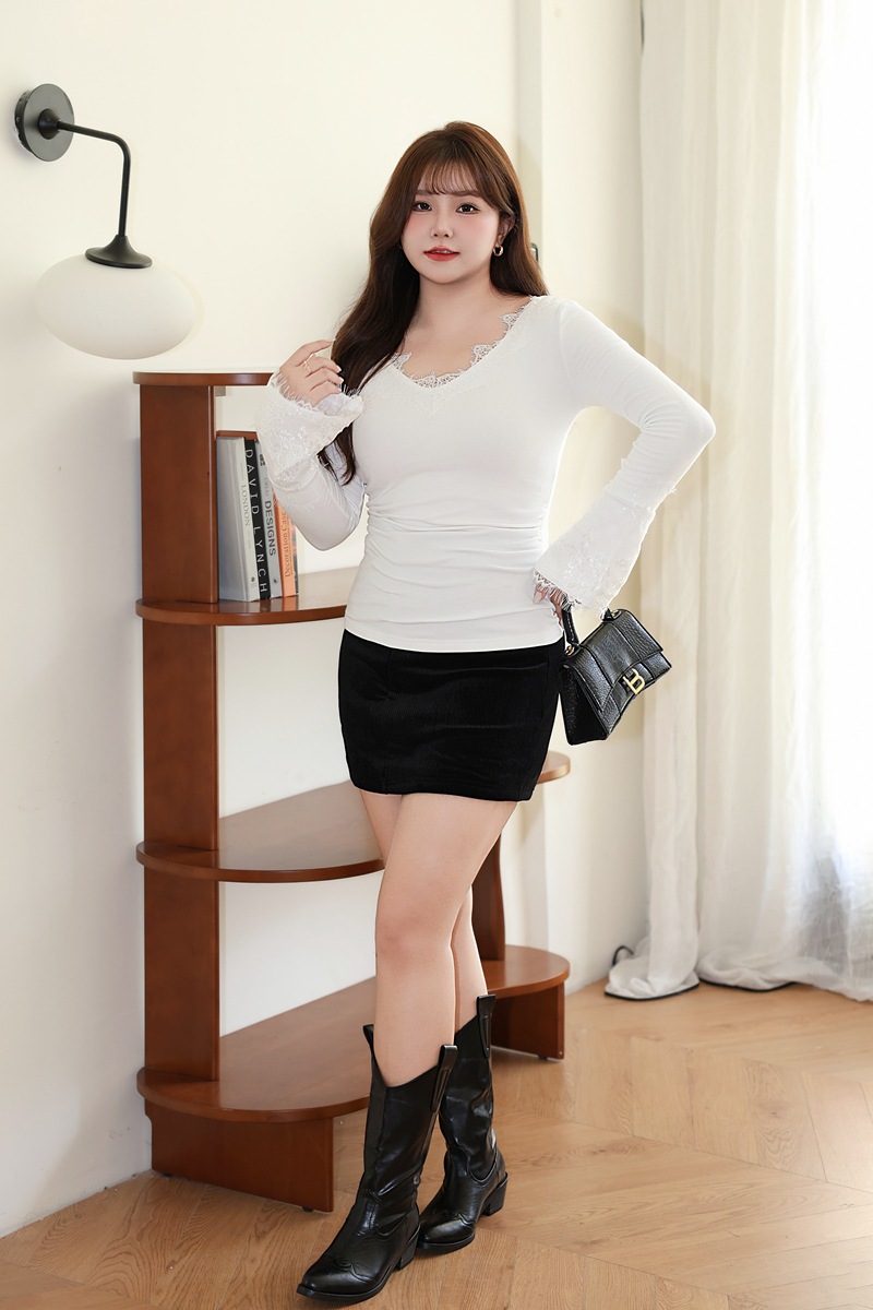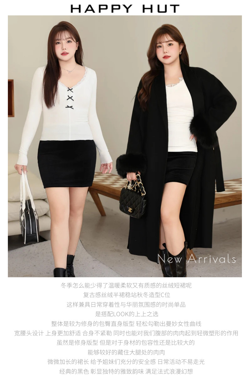 Черная бархатная осенняя и зимняя юбка с высокой талией и бедрами