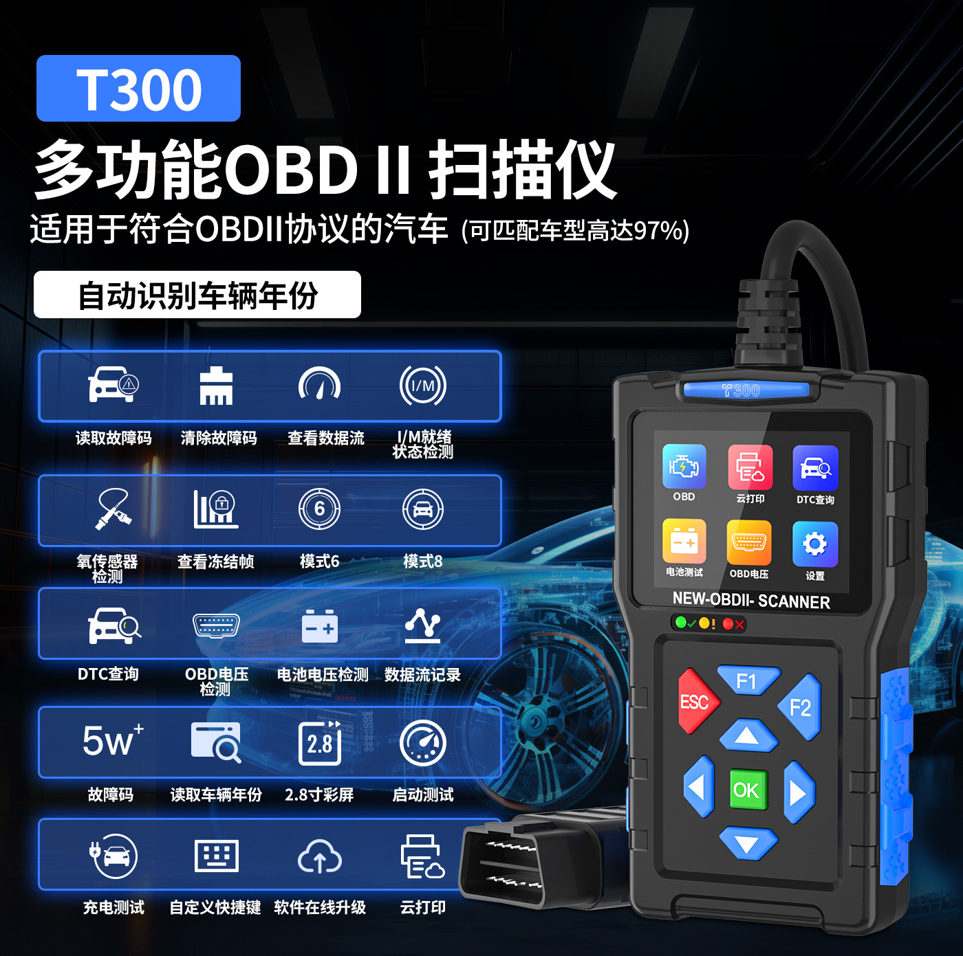 Трансграничный новый T300 Автомобильный неисправность Диагностика obd2 Автомобильный детектор Аккумулятор Сканер неисправности аккумулятора