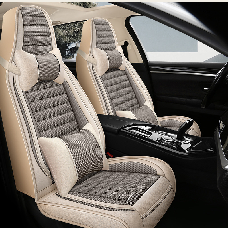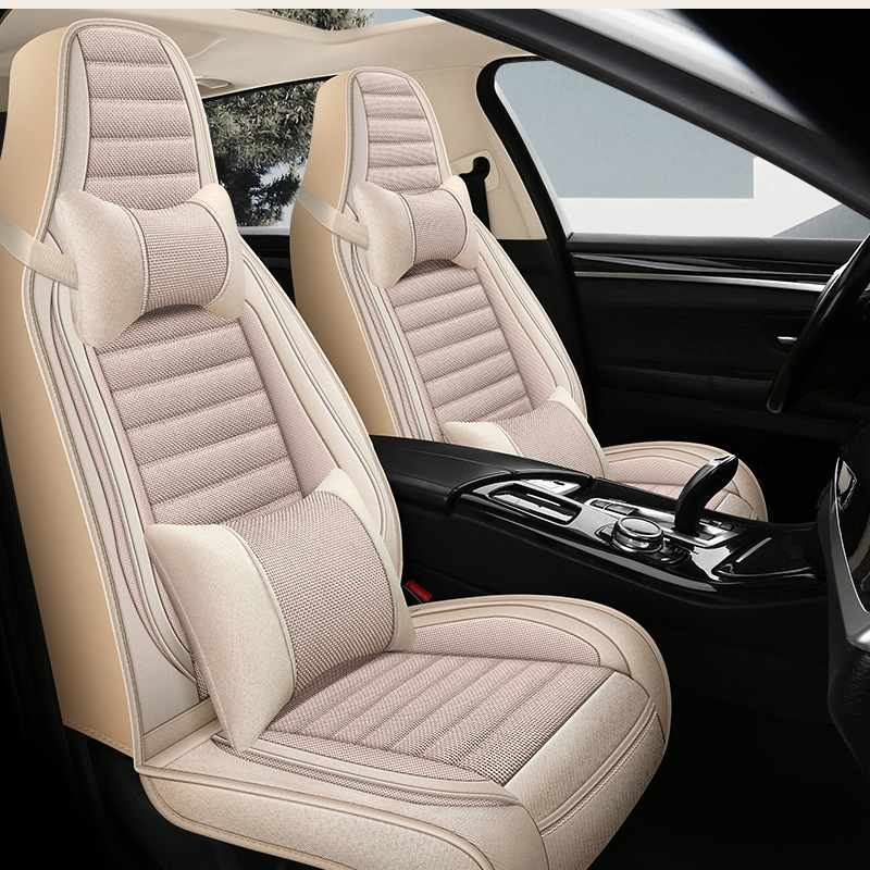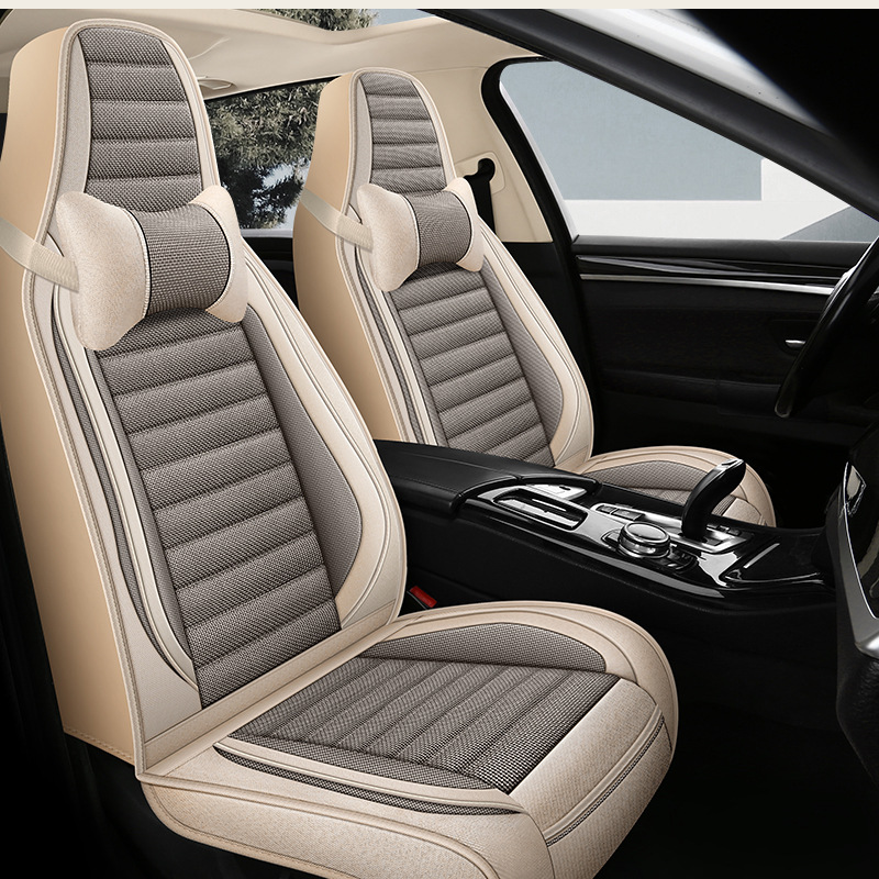 Накидка на переднее сиденье автомобиля, универсальная, всесезонная, спортивный чехол на сиденье, кожаный и хлопково-льняной чехол в стиле Chanel для электромобилей, для интерьера автомобиля.