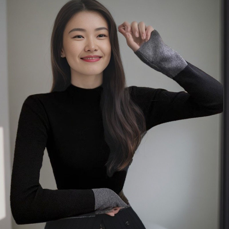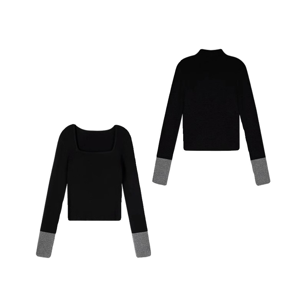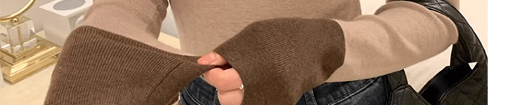 Полувысокий воротник с контрастным цветом трикотажный свитер женский 2024 осень и зима новый кожаный свитер высокого уровня среднего воротника
