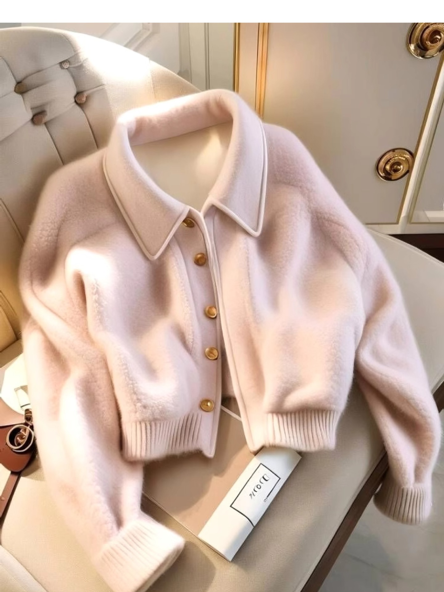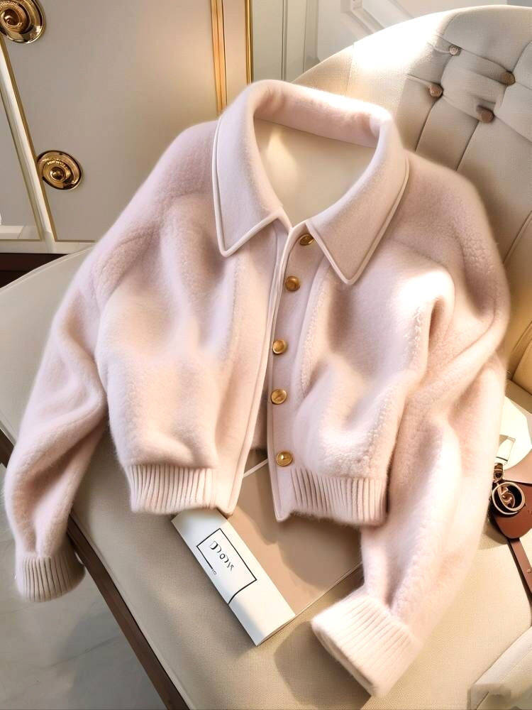Розовое плюшевое короткое женское пальто в стиле Chanel, зима 2025, для невысоких женщин, стильное, утепленное, теплая хлопковая куртка, уменьшающая возраст.